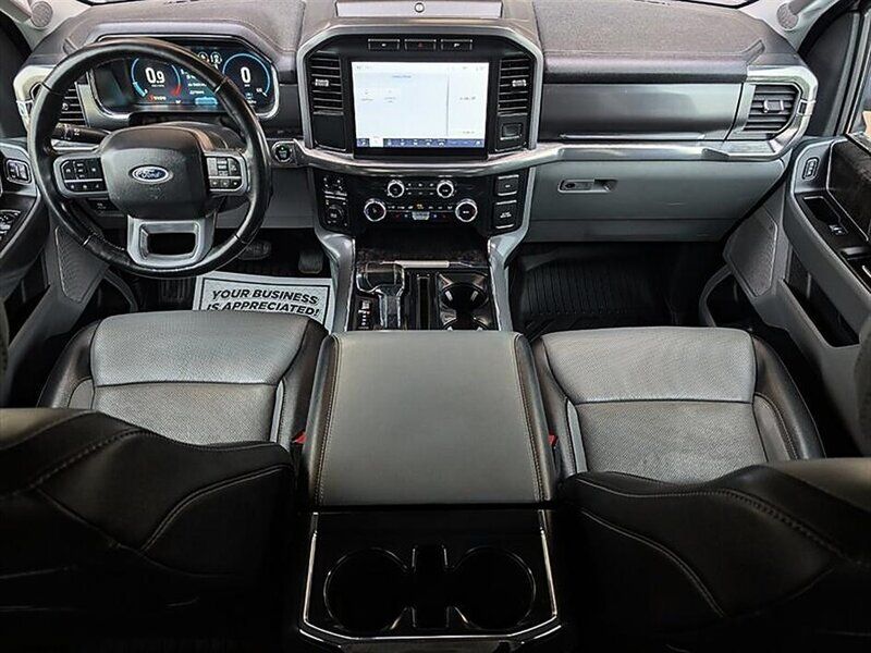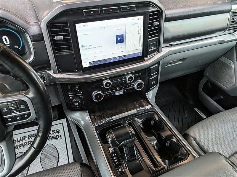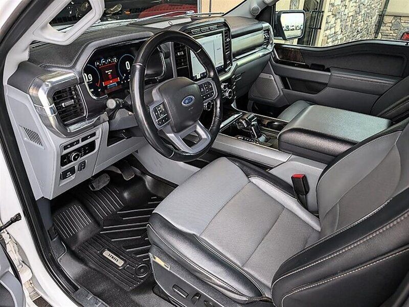 INSTALLED FEATURES: Air filtration, Front air conditioning: automatic climate control, Front air conditioning zones: dual, Airbag deactivation: occupant sensing passenger, Front airbags: dual, Side airbags: front, Side curtain airbags: front / rear, Antenna type: diversity / mast, Auxiliary audio input: Bluetooth / iPod/iPhone / jack / USB, Digital sound processing, Premium brand: Bang & Olufsen, Radio: AM/FM / HD radio / touch screen display / voice operated, Radio data system, Satellite radio: SiriusXM, Speed sensitive volume control, Subwoofer: 1, Total speakers: 7, Watts: 640, ABS: 4-wheel, Braking assist, Cornering brake control, Electronic brakeforce distribution, Electronic parking brake: auto off, Emergency braking preparation, Front brake type: ventilated disc, Power brakes, Rear brake type: ventilated disc, Armrests: rear center folding with storage / rear center with cupholders, Door sill trim: scuff plate, Floor mat material: carpet, Floor material: carpet, Floor mats: front / rear, Heated steering wheel, Steering wheel trim: leather, Adjustable pedals: power, Ambient lighting: color, Assist handle: front / rear, Capless fuel filler system, Center console: front console with armrest and storage, Cruise control, Cupholders: front / rear, Easy entry: power driver seat, Keypad entry, Memorized settings: 3 driver / adjustable pedals / driver seat / side mirrors, Multi-function remote: panic alarm / proximity entry system, One-touch windows: 2, Power outlet(s): 115V cargo area / 115V front / 115V rear / 12V front / 12V rear / USB front / USB rear / USB-C front / USB-C rear, Power steering, Power windows: lockout button, Push-button start, Reading lights: front / rear, Rearview mirror: auto-dimming, Remote engine start, Steering wheel: tilt and telescopic, Steering wheel mounted controls: audio / cruise control / multi-function / phone / voice control, Storage: accessory hook / door pockets / front seatback / under rear seats, Universal remote transmitter: garage door opener, Vanity mirrors: dual illuminating, Active grille shutters, Door handle color: chrome, Exhaust tip color: chrome, Front bumper color: chrome, Grille color: chrome / chrome surround, Mirror color: chrome, Pickup bed light: LED / tailgate illumination, Rear bumper color: chrome, Running board color: chrome, Running boards, Tailgate: lift assist / power locking / power open / removable, Window trim: black, Connected in-car apps: app marketplace integration / Google POIs / Google search, Infotainment: SYNC, Infotainment screen size: 12 in., Smartphone integration: wireless Android Auto / wireless Apple CarPlay, Clock, Compass, Customizable instrument cluster, Digital odometer, External temperature display, Fuel economy display: MPG / range, Gauge: oil pressure / tachometer / transmission temperature, Instrument cluster screen size: 12 in., Multi-function display, Powertrain hour meter, Trip odometer, Warnings and reminders: low fuel level / low oil level / maintenance due, Daytime running lights: LED, Exterior entry lights: approach lamps / puddle lamps, Front fog lights: cornering / LED, Headlights: auto delay off / auto high beam dimmer / auto on/off / LED / wiper activated, Taillights: LED, Side mirror adjustments: power / power folding, Side mirrors: driver side auto-dimming / heated / integrated turn signals, 4WD selector: electronic hi-lo, 4WD type: part time w/ on demand setting, Alternator: 200 amps, Auto start/stop, Battery: maintenance-free, Battery saver, Drive mode selector, Automatic emergency braking: front / front pedestrian / rear, Automatic hazard warning lights, Blind spot safety: sensor/alert / trailer coverage, Camera system: rearview, Child safety door locks, Child seat anchors: LATCH system, Cross traffic alert: rear, Crumple zones: front, Driver attention alert system, Impact sensor: alert system / door unlock / post-collision safety system, Lane deviation sensors, Lane keeping assist, Parking sensors: rear, Pre-collision warning system: audible warning / pedestrian detection / visual warning, Programmable safety key, Rearview monitor: in dash, Emergency locking retractors: front, Front seatbelts: 3-point, Rear seatbelts: 3-point, Seatbelt force limiters: front, Seatbelt pretensioners: front, Seatbelt warning sensor: front, Driver seat: heated / ventilated, Driver seat power adjustments: 10 / height / lumbar / reclining, Front headrests: 2 / adjustable, Front seat type: bucket, Passenger seat: heated / ventilated, Passenger seat power adjustments: 10 / height / lumbar / reclining, Rear headrests: 3 / adjustable, Rear seat folding: folds up / split, Rear seat type: 60-40 split bench, Upholstery: leather-trimmed, Anti-theft system: alarm / anti-tow sensor / interior motion sensor / perimeter alarm / vehicle immobilizer, Power door locks: anti-lockout / auto-locking, Hill holder control, Roll stability control, Stability control, Traction control, Trailer stability control, Front shock type: gas, Front spring type: coil, Front stabilizer bar, Front struts, Front suspension classification: independent, Front suspension type: double wishbone, Rear shock type: gas, Rear spring type: leaf, Rear suspension classification: solid live axle, Rear suspension type: multi-leaf, Electronic messaging assistance: voice operated / with read function, Hands-free phone call integration: voice operated, Navigation data: real time traffic, Navigation system: touch screen display / voice operated, Smart device app compatibility: FordPass Connect, Smart device app function: engine start / horn/light operation / lock operation / maintenance status / vehicle location, Wi-Fi: hotspot, Wireless data link: Bluetooth, Pickup bed cargo management: tie-down anchors, Tow hooks: front, Tow/Haul mode, Trailer hitch: Class IV, Trailer wiring: 4-pin / 7-pin, Spare tire mount location: underbody, Spare tire size: full-size, Spare wheel type: steel, Tire Pressure Monitoring System, Wheel locks: spare only, Wheels: chrome, Front wi