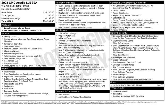 Turn every drive into something special with this GMC Acadia from Salt Lake Valley Chevrolet! Designed for comfort, performance, and style, this vehicle comes fully equipped with modern technology and convenience features you'll love. Plus, enjoy a $1,000 finance savings, already included in the sale price, when you finance through one of our trusted lending partners. If you're shopping for used cars in Salt Lake City, or searching for the perfect SUV, truck, or sedan, this GMC Acadia delivers the dependability and value you're looking for. It's the ideal match for your lifestyle - ready for everything from mountain adventures to city commutes. Visit Salt Lake Valley Chevrolet today and see why so many Utah drivers trust us for great deals on quality pre-owned vehicles. Explore our inventory online at www.slvchevy.com or call 801-969-8221 to schedule your test drive today! This impressive vehicle includes Preferred Equipment Group 3SA, 3.47 Final Drive Axle Ratio, 3rd row seats: split-bench, 4-Way Manual Driver Seat Adjuster, 4-Way Manual Passenger Seat Adjuster, 4-Wheel Disc Brakes, 6 Speakers, 6-Passenger (2-2-2 Seating Configuration), 6-Speaker Audio System Feature, 7-Passenger (2-3-2 Seating Configuration), ABS brakes, Air Conditioning, Alloy wheels, AM/FM radio: SiriusXM, Apple CarPlay/Android Auto, Auto High-beam Headlights, Automatic temperature control, Brake assist, Bumpers: body-color, Compass, Delay-off headlights, Driver door bin, Driver vanity mirror, Dual front impact airbags, Dual front side impact airbags, Electronic Stability Control, Emergency communication system: OnStar and GMC connected services capable, Four wheel independent suspension, Front anti-roll bar, Front Bucket Seats, Front Center Armrest, Front dual zone A/C, Front License Plate Bracket, Front reading lights, Fully automatic headlights, Heated door mirrors, Illuminated entry, Knee airbag, Low tire pressure warning, Occupant sensing airbag, Outside temperature display, Overhead airbag, Overhead console, Panic alarm, Passenger door bin, Passenger vanity mirror, Power door mirrors, Power steering, Power windows, Premium audio system: GMC Infotainment System, Premium Cloth Seat Trim, Radio data system, Radio: AM/FM w/8'' Diagonal Multi-Touch Display, Rear air conditioning, Rear anti-roll bar, Rear reading lights, Rear window defroster, Rear window wiper, Remote keyless entry, Security system, SiriusXM Radio, Speed control, Speed-sensing steering, Spoiler, Steering wheel mounted audio controls, Tachometer, Telescoping steering wheel, Tilt steering wheel, Traction control, Trip computer, Turn signal indicator mirrors, Variably intermittent wipers, Voltmeter, Wheels: 18'' Machined Aluminum w/Dark Accents, and Wireless Apple CarPlay/Wireless Android Auto, offering everything you need for your next adventure.