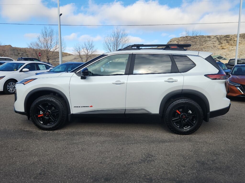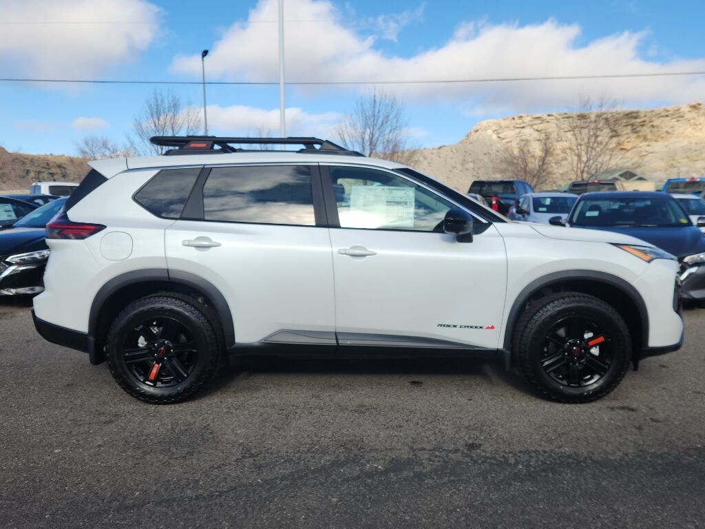 Rock Creek Premium Package: Wireless Charging Pad; Motion-Activated Power Liftgate; Memory Driver Seat and Outside Mirrors; Interior LED Accent Lighting; 4-Way Power Passenger Seat; Auto-Dimming Inside Mirror; Reverse Tilt-Down Outside Mirrors; Heated Steering Wheel,Rock Creek All-Season Cargo Area Protector: First Aid Kit,Premium Paint,Frameless Rearview Mirror with Universal Remote,Black Splash Guards (set of 4),Apple CarPlay/Android Auto smart device mirroring,ProPILOT Assist hands-on cruise control,Automatic Emergency Braking with Pedestrian Detection (P-AEB),ProPILOT Emergency Stop with e-call unresponsive driver assist,NissanConnect with Wi-Fi Hotspot mobile hotspot internet access,RearView Monitor rear mounted camera,Intelligent Lane Intervention (I-LI),Blind Spot Intervention (BSI) / Blind Spot Warning (BSW),Rear Automatic Braking (RAB) collision mitigation,Intelligent Cruise Control (ICC) w/Full Speed Range and Hold,Predictive brake assist system,Cruise control with steering wheel mounted controls,Power liftgate rear cargo door,Keyfob remote start,Heated steering wheel,Heated driver and front passenger seats,Primary monitor touchscreen,Driver seat power reclining, lumbar support, cushion tilt, fore/aft control and height adjustable control,Intelligent All-Wheel Drive automatic full-time AWD,VC-Turbo 1.5L I-3 gasoline direct injection, DOHC, CVTCS variable valve control, intercooled turbo, regular unleaded, engine with 201HP,VC-Turbo 1.5L I-3 DOHC,Front wireless smart device charging,Automatic Emergency Braking with Intersection Assist forward collision mitigation with left turn assist,Driver Attention Alert (DAA),Rear pedestrian detection prevention,Intelligent Key with hands-free access and push button start,Intelligent Around View Monitor (I-AVM) aerial view camera,Intelligent Around View Monitor with Off-Road Mode ground view camera,Push-button,Automatic brake hold,Bluetooth wireless audio streaming,Proximity cargo area access release,Front mounted camera,Right side camera,Left side camera,Dual-zone front climate control,High Beam Assist (HBA) auto high-beam headlights,Nissan Vehicle Immobilizer System immobilizer,NissanConnect Services vehicle tracker,Selectable Terrain Modes,NissanConnect Services vehicle integrated emergency SOS system,Bluetooth handsfree wireless device connectivity,External memory control,Vehicle Dynamic Control (VDC) electronic stability control system,Hill descent control,Hill Start Assist (HSA),Heated rear wiper park,Automatic climate control,Rear Door Alert rear seat check warning,Rear Sonar System rear parking sensors