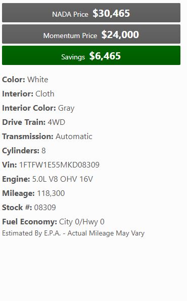 2021 Ford F150 STX with 118k miles! 4WD, 5.0L, FX4 package, backup camera, and more! At Momentum Motors we SELL cars at trade-in prices. We know you work hard for your money, and we want to help you save it. Our company specializes in branded title vehicles which allows our customers to get a quality vehicle for the lowest prices in Utah. Our team hand picks our inventory from insurance auctions all over the country. Each vehicle is repaired in a professional facility with all the proper safety equipment. Unlike the big branded dealerships, we oversee and manage the entire repair process to make sure every vehicle is built to the Momentum Motors standard.. Stop by and see if we can help you find your next car !We are located at 616 S Main St Spanish Fork, Utah. Or call/text 801-804-5364. We buy late model Branded Title Vehicles and accept them on Trade. Call us or bring your Branded Title vehicle by our lot for an instant cash offer. We also pay top dollar for lightly damaged vehicles.