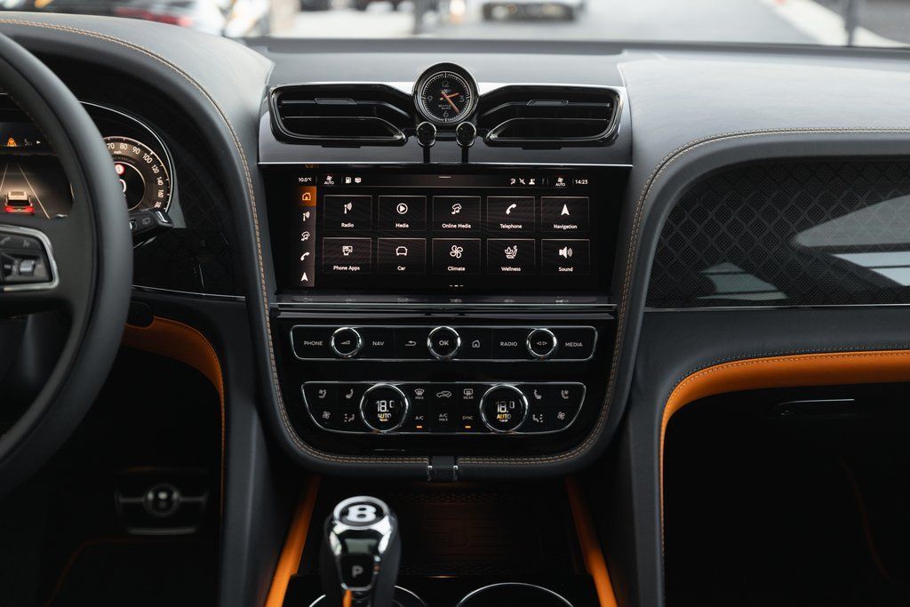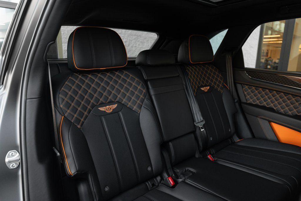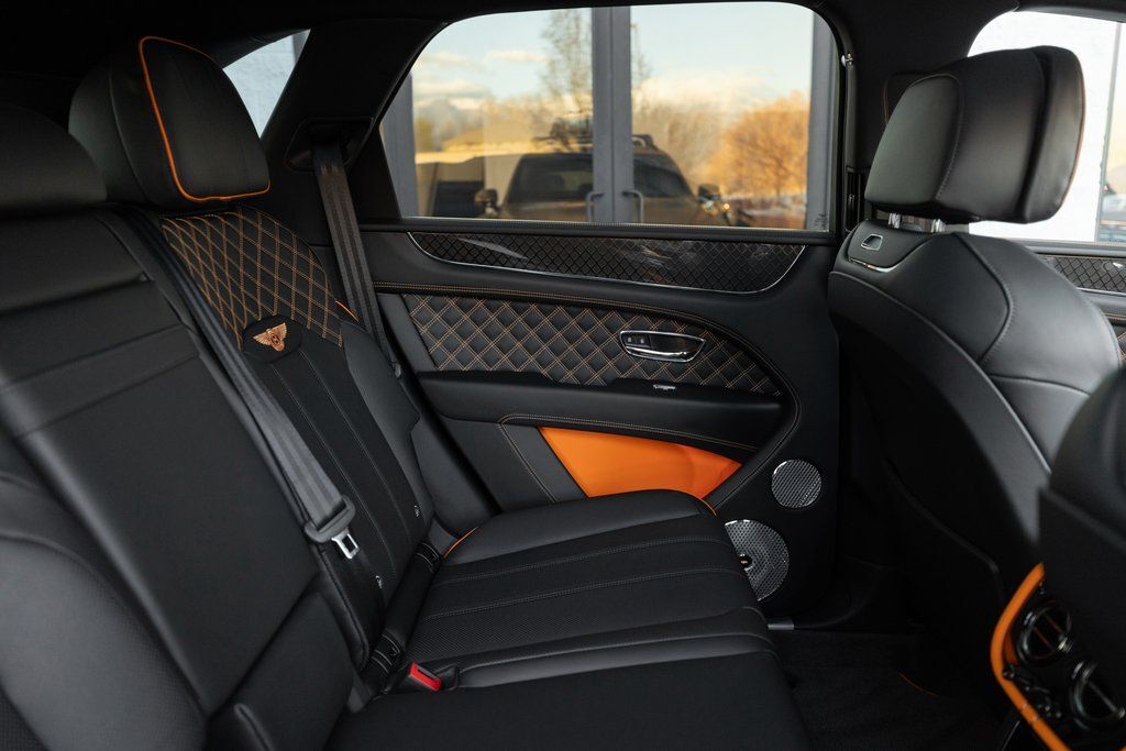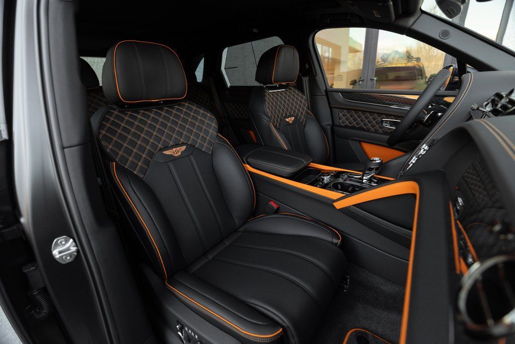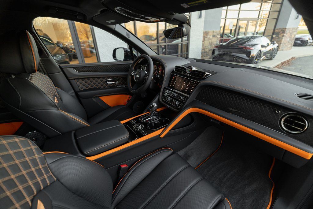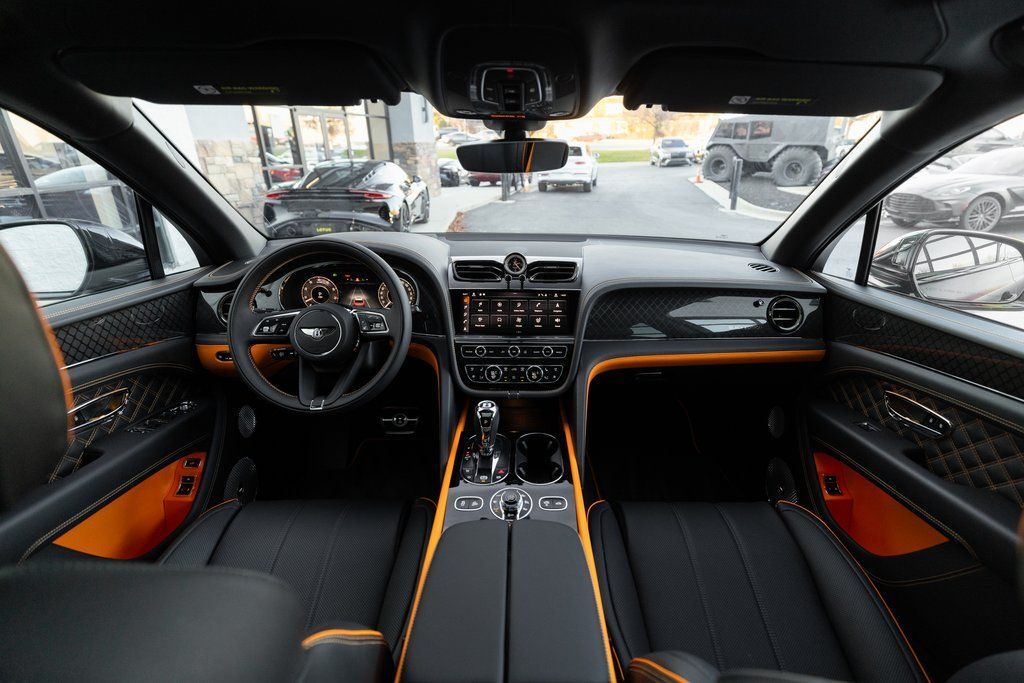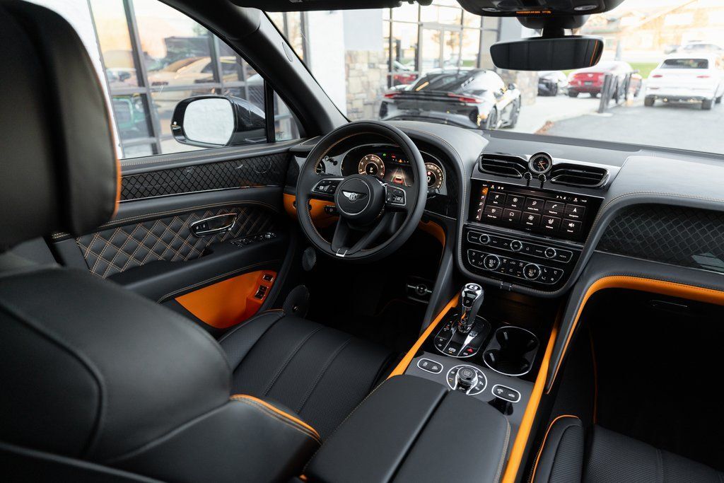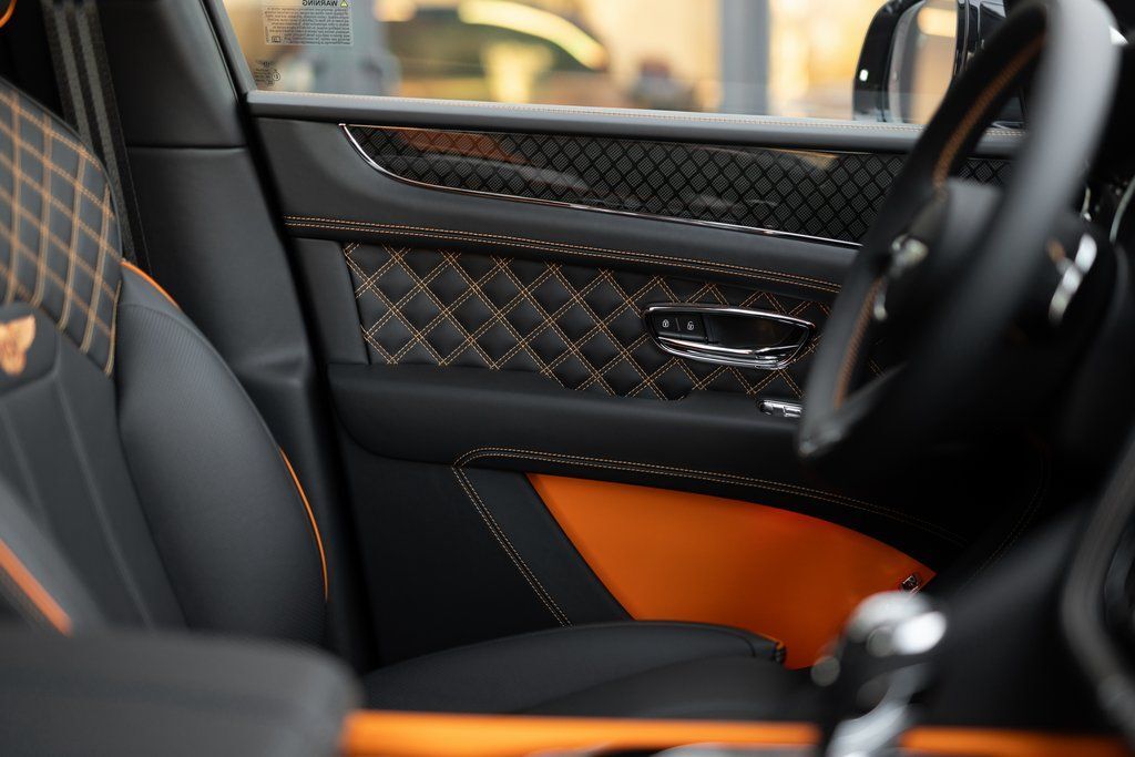 This Bentayga S Black Edition delivers a performance-focused V8 configuration supported by permanent all-wheel drive, Bentley Dynamic Ride, and the S chassis calibration. The Black Edition design theme introduces darkened exterior elements, carbon fiber accents, and exclusive color specifications. The interior highlights bold contrast through the Mandarin hide and refined Mulliner enhancements.