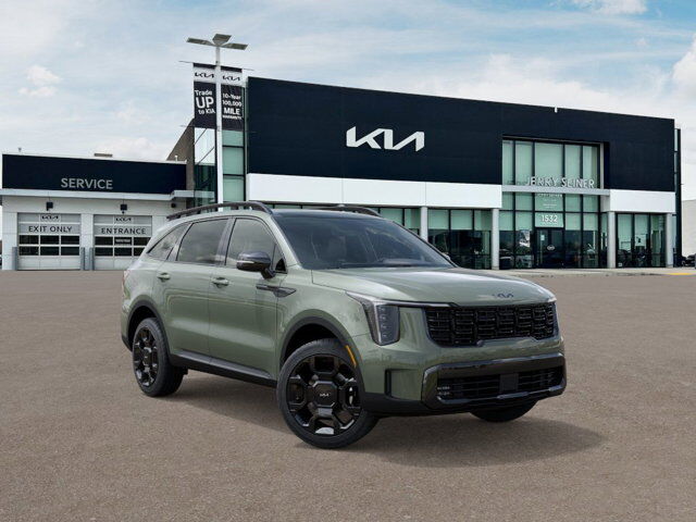 Se habla espanol ~ All new Kia's come with 1 year pre-paid Maintenance with Purchase. See dealer for details.Jungle Green 2026 Kia Sorento 4D Sport Utility X-Line EX AWD 8 Speed Dual Clutch 2.5L I4 DGI Turbocharged DOHC 16V LEV3-SULEV30 281hp AWD.20/27 City/Highway MPGAWD, 3rd row seats: split-bench, 4-Wheel Disc Brakes, ABS brakes, Air Conditioning, Alloy wheels, AM/FM radio: SiriusXM, Apple CarPlay & Android Auto, Auto High-beam Headlights, Auto-dimming Rear-View mirror, Automatic temperature control, Brake assist, Bumpers: body-color, Carpeted Floor Mats, Delay-off headlights, Driver door bin, Driver vanity mirror, Dual front impact airbags, Dual front side impact airbags, Electronic Stability Control, Emergency communication system: 911 Connect, Exterior Parking Camera Rear, Four wheel independent suspension, Front anti-roll bar, Front Bucket Seats, Front Center Armrest, Front dual zone A/C, Front fog lights, Front reading lights, Fully automatic headlights, Heated door mirrors, Heated Front Bucket Seats, Heated front seats, Illuminated entry, Knee airbag, Leather Shift Knob, Leather steering wheel, Low tire pressure warning, Navigation System, Occupant sensing airbag, Outside temperature display, Overhead airbag, Overhead console, Panic alarm, Passenger door bin, Passenger vanity mirror, Power door mirrors, Power driver seat, Power Liftgate, Power passenger seat, Power steering, Power windows, Radio data system, Radio: AM/FM Standard Sound System, Rear anti-roll bar, Rear reading lights, Rear side impact airbag, Rear window defroster, Rear window wiper, Remote keyless entry, Security system, Speed control, Speed-sensing steering, Split folding rear seat, Spoiler, Steering wheel mounted audio controls, SynTex Artificial Leather Seat Trim, Tachometer, Telescoping steering wheel, Tilt steering wheel, Traction control, Trip computer, Turn signal indicator mirrors, and Variably intermittent wipers.