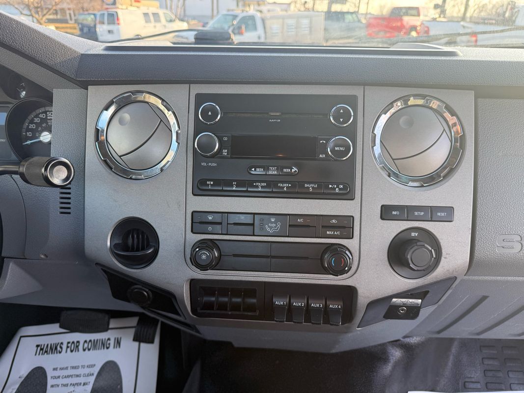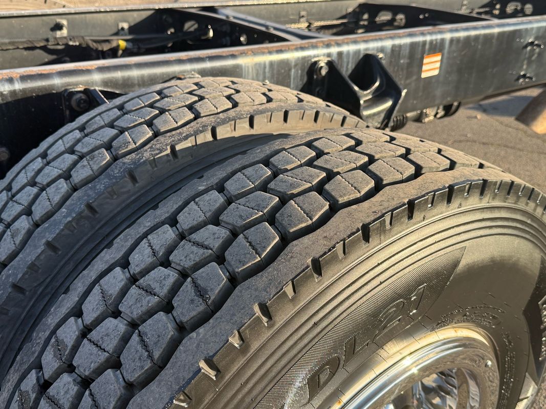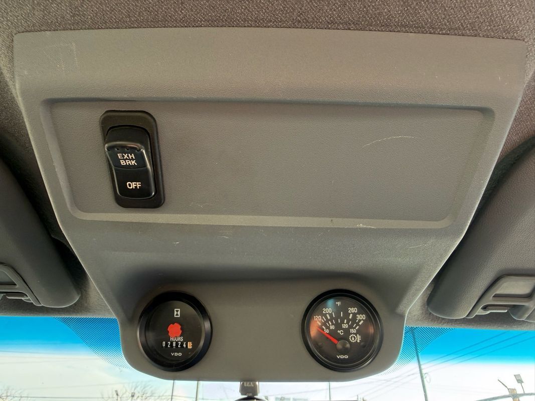 The truck sits on like-new Hankook MAX DL21 rears and AH37 fronts, paired with 22.5' steel rear wheels and Alcoa aluminum fronts for a professional, work-ready look. The 25,999 GVWR makes it ideal for towing, hauling, or upfitting while keeping your licensing simple. Inside, it’s clean and comfortable with gray cloth seating, an adjustable driver seat, bench middle seat, power windows, power locks, cruise control, and a working AM/FM CD stereo. It also includes auxiliary switches, can lights, heat/AC, and an exhaust brake — everything you want in a well-equipped medium-duty truck.