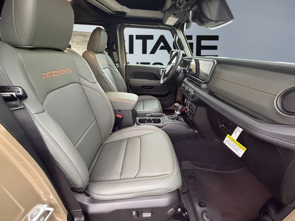 Quick Order Package 24A Mojave X: Steel Front Bumper; Alpine Premium Audio System; Integrated Off-Road Camera; USB Host Flip; Blind Spot & Cross Path Detection; Rear View Auto Dim Mirror; Body Color 3-Piece Hard Top; Heated Front Seats; Bluetooth Wireless Speaker; Integrated Voice Command W/Bluetooth; Mojave Top Hood Decal; Uconnect 5 Nav W/12.3" Display; Rock Protection Sill Rails; Auto High Beam Headlamp Control; Universal Garage Door Opener; Heated Steering Wheel; ParkSense Rear Park Assist System; Body Color Rubicon Highline Flare; Leather Trimmed Bucket Seats; MOPAR Hardtop Headliner; Steel Rear Bumper,41,MOPAR Spray In Bedliner,Integrated navigation system with voice activation,Blind Spot Detection,Heated steering wheel,Uconnect w/Bluetooth handsfree wireless device connectivity,Apple CarPlay/Android Auto smart device wireless mirroring,Heated driver and front passenger seats,7 USB ports,First-row targa composite sunroof with manual activation,Leather front seat upholstery,Driver seat with 8-way directional controls,Front passenger seat with 8-way directional controls,12.3 inch primary display,Forward Collision Warning-Plus,4G LTE Wi-Fi Hot Spot mobile hotspot internet access,ParkView w/Trailer Hitch Zoom rear mounted camera,Adaptive Cruise Control w/Stop & Go,Advanced Brake Assist predictive brake assist system,Cruise control with steering wheel mounted controls,Manual convertible roof,Primary monitor touchscreen,Cross Path Detection collision warning,Driver seat power reclining, lumbar support, cushion tilt, fore/aft control and height adjustable control,Command-Trac part-time 4WD,Pentastar 3.6L V-6 DOHC, variable valve control, regular unleaded, engine with 285HP,Pentastar 3.6L V-6 DOHC,Alexa Built-In built-in virtual assistant,Smart key with hands-free access and push button start,Push-button,Bluetooth wireless audio streaming,Front mounted camera with washer,Dual-zone front climate control,Voice-activated climate control,Selec-Speed Control off-road speed control,Fox remote reservoir shock absorbers,Auto high-beam headlights,Sentry Key immobilizer,Jeep Connect vehicle tracker,Alpine speakers,Jeep Connect vehicle integrated emergency SOS system,Trailer sway control,Uconnect external memory control,Internet radio capability,Configurable instrumentation gauges,Electronic stability control system with anti-roll,Hill descent control,Hill start assist,Removable sunroof,Leather rear seat upholstery,Sliding rear windshield,1 wireless speaker