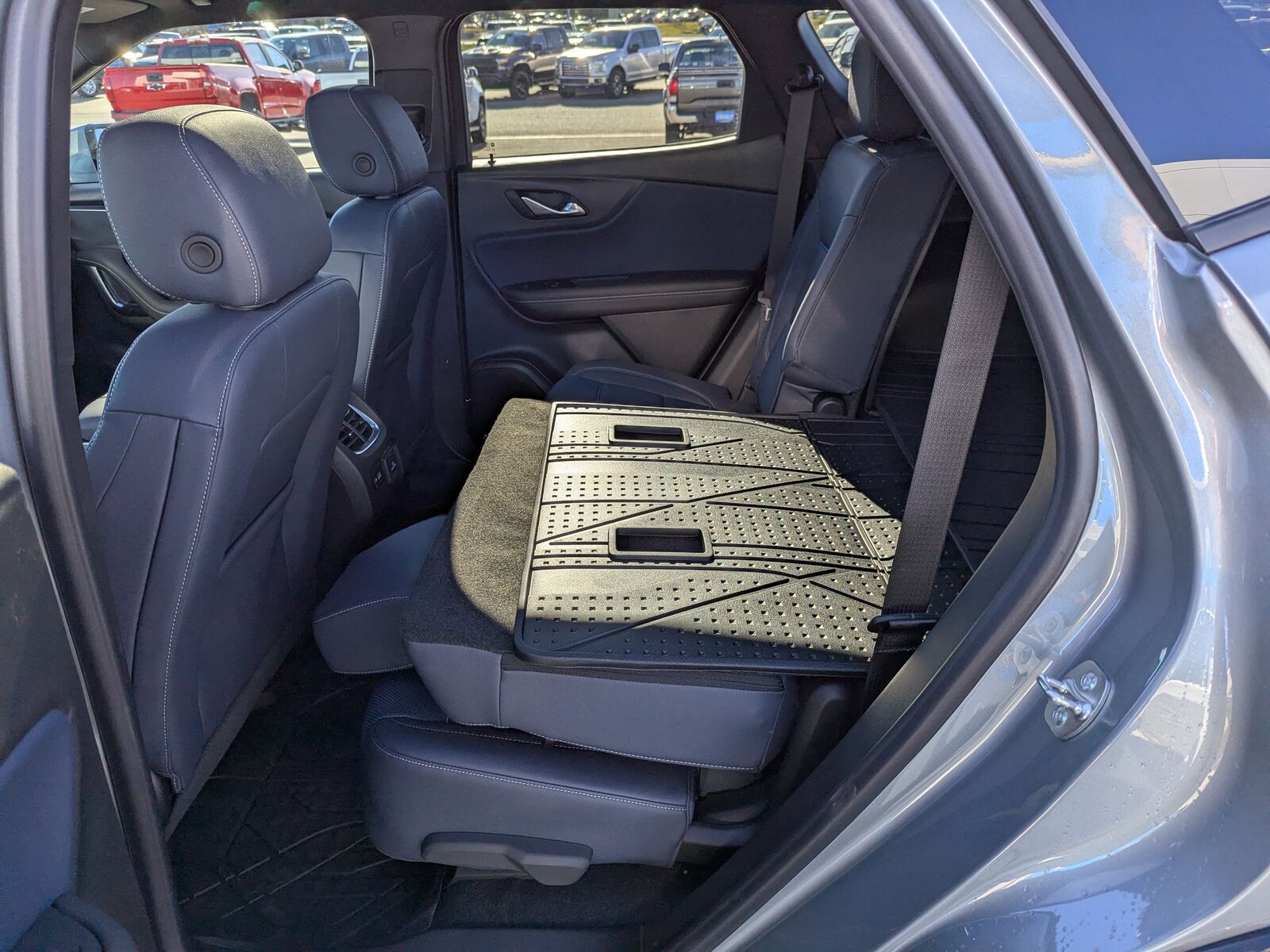 ADAPTIVE CRUISE CONTROL,LPO ALL-WEATHER FLOOR LINERS front and second row,SUNROOF POWER PANORAMIC TILT-SLIDING WITH POWER SUNSHADE,AXLE 3.49 FINAL DRIVE RATIO,RS PREFERRED EQUIPMENT GROUP Includes Standard Equipment,DRIVER CONFIDENCE II PACKAGE includes (UV2) HD Surround Vision (DRZ) Rear Camera Mirror (KSG) Adaptive Cruise Control (UGN) Enhanced Automatic Emergency Braking [replaces (UHY) Automatic Emergency Braking] and (HS1) Safety Alert Seat,SEATS HEATED REAR OUTBOARD SEATING POSITIONS,REAR CAMERA MIRROR includes (CWA) Rear Camera Mirror Washer,SAFETY ALERT SEAT,ENHANCED AUTOMATIC EMERGENCY BRAKING,REAR CAMERA MIRROR WASHER,LICENSE PLATE FRONT MOUNTING PACKAGE (will be forced on orders with ship-to states that require a front license plate),STEERING COLUMN POWER TILT AND TELESCOPING,TRANSMISSION 9-SPEED AUTOMATIC ELECTRONICALLY-CONTROLLED with overdrive includes Driver Shift Control,AUDIO SYSTEM CHEVROLET INFOTAINMENT 3 PREMIUM SYSTEM with connected Navigation 10.2 diagonal HD color touchscreen AM/FM stereo Bluetooth audio streaming for 2 active devices Apple CarPlay and Android Auto capable enhanced voice recognition additional memory for in-vehicle apps cloud connected personalization for select infotainment and vehicle settings. Subscription required for enhanced and connected services after trial period. (STD),ENHANCED CONVENIENCE PACKAGE includes (AAB) memory settings (KA6) rear outboard heated seats (KU9) driver and front passenger ventilated seats and (N38) power tilt and telescoping steering column,ENGINE 3.6L V6 SIDI DOHC WITH VARIABLE VALVE TIMING (VVT) and Active Fuel Management with Stop/Start (308 hp [229 kW] @ 6700 rpm 270 lb-ft of torque [366 N-m] @ 5000 rpm),WHEELS 21 (53.3 CM) HIGH GLOSS BLACK WITH MACHINED FACE,SEATS FRONT BUCKET (STD),HD SURROUND VISION,MEMORY SETTINGS recalls 2 driver presets for 8-way power seat outside mirrors and power tilt and telescopic steering column,SEATS VENTILATED DRIVER AND FRONT PASSENGER,STERLING GRAY METALLIC,LPO INTEGRATED CARGO LINER,LPO FLOOR LINER PACKAGE includes (RIA) front and second row all-weather floor liners LPO and (CAV) integrated cargo liner LPO,JET BLACK/NIGHTSHIFT BLUE PERFORATED LEATHER-APPOINTED SEAT TRIM,TIRES P265/45R21 ALL-SEASON BLACKWALL,Lane Departure Warning,Lane Keeping Assist,Front Collision Mitigation,Front Collision Warning,Automatic Highbeams,Turbocharged,All Wheel Drive,All Wheel Drive,ABS,4-Wheel Disc Brakes,Aluminum Wheels,Tires - Front Performance,Tires - Rear Performance,Conventional Spare Tire,Temporary Spare Tire,Automatic Highbeams,Automatic Headlights,Heated Mirrors,Power Mirror(s),Integrated Turn Signal Mirrors,Privacy Glass,Intermittent Wipers,Variable Speed Intermittent Wipers,Intermittent Wipers,Remote Trunk Release,Power Liftgate,Hands-Free Liftgate,AM/FM Stereo,Navigation System,Bluetooth Connection,Smart Device Integration,Premium Sound System,Satellite Radio,Requires Subscription,Bluetooth Connection,WiFi Hotspot,Bluetooth Connection,Smart Device Integration,Bucket Seats,Leather Seats,Heated Front Seat(s),Power Driver Seat,Power Passenger Seat,Driver Adjustable Lumbar,MP3 Capability,Auxiliary Audio Input,MP3 Capability,Auxiliary Audio Input,Floor Mats,Heated Steering Wheel,Adjustable Steering Wheel,Power Windows,Power Door Locks,Keyless Entry,Power Door Locks,Keyless Start,Remote Engine Start,Universal Garage Door Opener,Cruise Control,Security System,Climate Control,Multi-Zone A/C,A/C,Rear Defrost,Auto-Dimming Rearview Mirror,Driver Vanity Mirror,Passenger Vanity Mirror,Driver Illuminated Vanity Mirror,Passenger Illuminated Visor Mirror,Front Collision Mitigation,Front Collision Warning,Traction Control,Stability Control,Daytime Running Lights,Driver Air Bag,Passenger Air Bag,Front Head Air Bag,Rear Head Air Bag,Knee Air Bag,Passenger Air Bag Sensor,Telematics,Requires Subscription,Telematics,Navigation from Telematics,Requires Subscription,Back-Up Camera,Rear Parking Aid,Cross-Traffic Alert,Blind Spot Monitor,Lane Departure Warning,Lane Keeping Assist,Front Collision Mitigation,Front Collision Warning,Front Collision Warning,Child Safety Locks,Driver Restriction Features,Tire Pressure Monitor,Tire Pressure Monitor