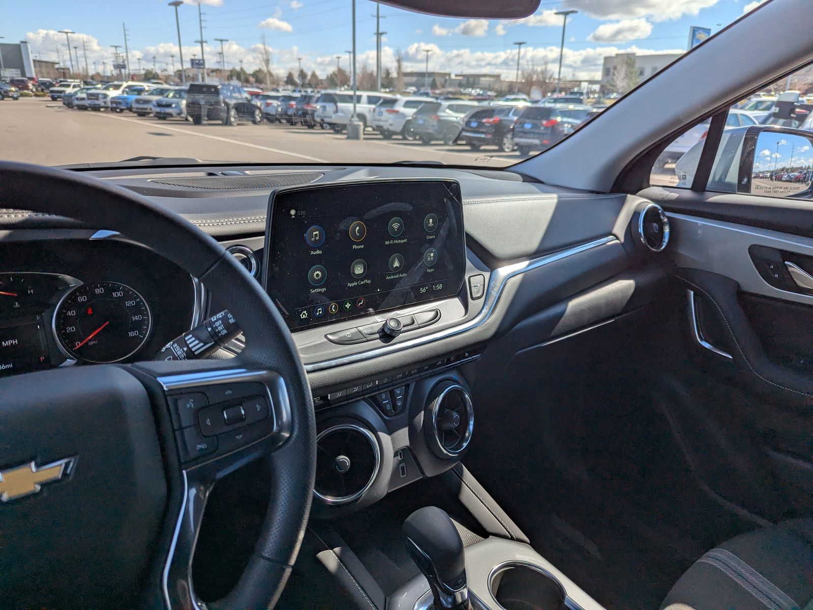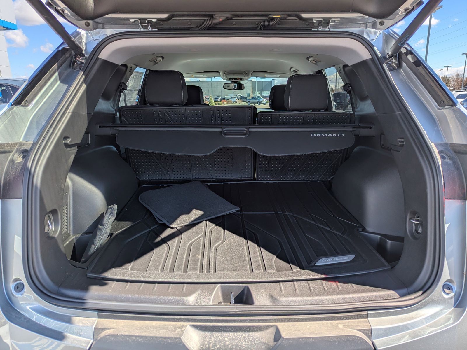 170 Amp Alternator, 3.47 Final Drive Axle Ratio, 4-Way Manual Front Passenger Seat Adjuster, 4-Wheel Disc Brakes, 6 Speakers, 6-Speaker Audio System Feature, 8-Way Power Driver Seat Adjuster, ABS brakes, Adaptive Cruise Control, Air Conditioning, Alloy wheels, AM/FM radio: SiriusXM with 360L, Apple CarPlay/Android Auto, Auto High-beam Headlights, Automatic temperature control, Black Roof-Mounted Side Rails, Brake assist, Bumpers: body-color, Cargo Package, Child-Seat-Sensing Airbag, Compass, Convenience Package, Delay-off headlights, Deleted Mobile Service Plus, Driver door bin, Driver vanity mirror, Dual front impact airbags, Dual front side impact airbags, Electronic Stability Control, Emergency communication system: OnStar and Chevrolet connected services capable, Enhanced Automatic Emergency Braking, Four wheel independent suspension, Front anti-roll bar, Front Bucket Seats, Front Center Armrest, Front dual zone A/C, Front reading lights, Fully automatic headlights, Heated door mirrors, Heated Driver and Front Passenger Seats, Heated front seats, Illuminated entry, Inside Rear-View Auto-Dimming Mirror, Knee airbag, Leather Shift Knob, Low tire pressure warning, Occupant sensing airbag, Outside temperature display, Overhead airbag, Overhead console, Panic alarm, Passenger door bin, Passenger vanity mirror, Power door mirrors, Power Driver Lumbar Control, Power driver seat, Power steering, Power windows, Preferred Equipment Group 2LT, Premium audio system: Chevrolet Infotainment 3 Plus, Premium Cloth Seat Trim, Radio data system, Radio: Chevrolet Infotainment 3 Plus System, Rear anti-roll bar, Rear Power Programmable Liftgate, Rear reading lights, Rear seat center armrest, Rear window defroster, Rear window wiper, Remote keyless entry, Retractable Cargo Shade, Ride and Handling Suspension, Security system, SiriusXM with 360L, Speed control, Speed-sensing steering, Split folding rear seat, Spoiler, Steering wheel mounted audio controls, Stop-Start Engine Control System, Tachometer, Telescoping steering wheel, Tilt steering wheel, Traction control, Trip computer, Universal Home Remote, Variably intermittent wipers, Vertical Cargo Net, Voltmeter, Wheels: : 18 Grazen Metallic Aluminum, Wireless Charging.