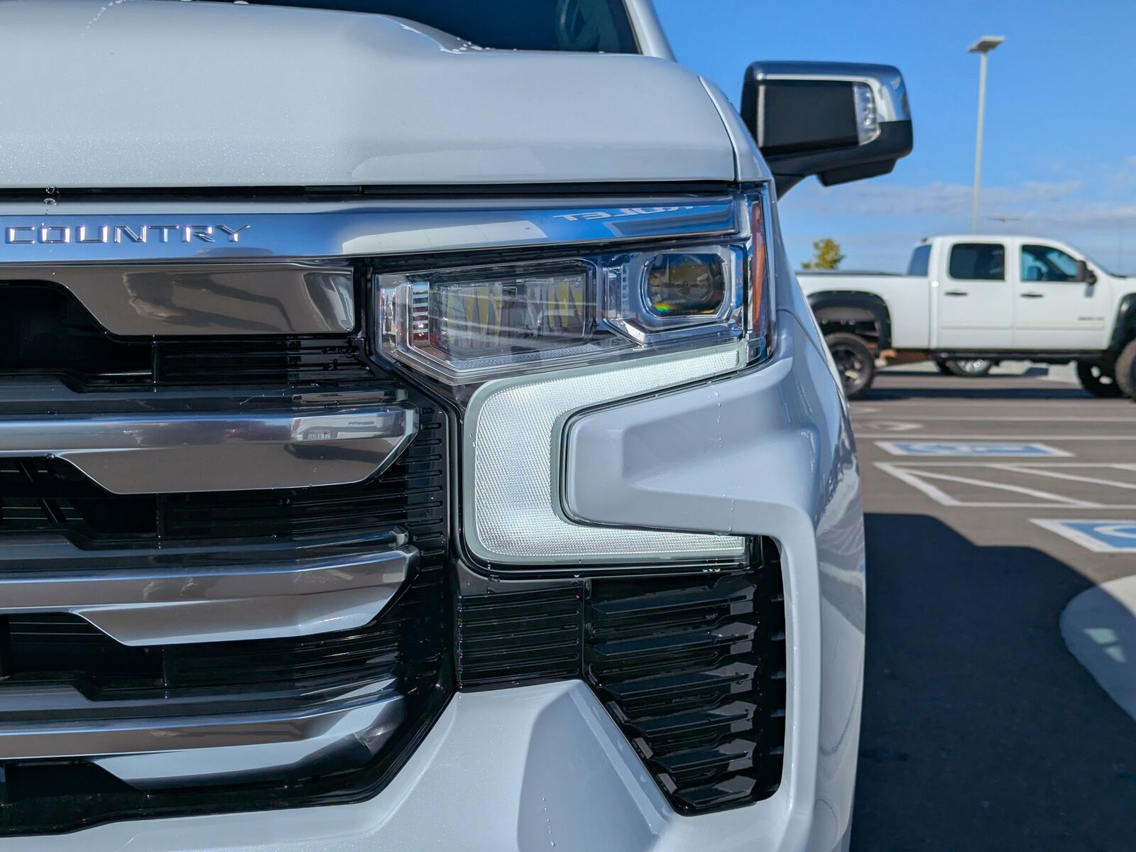 REAR CAMERA MIRROR INSIDE REARVIEW AUTO-DIMMING with full camera display,TAILGATE GATE FUNCTION MANUAL WITH EZ LIFT includes power lock and release,REAR AXLE 3.23 RATIO,SEATS FRONT BUCKET with center console (STD) (Includes (EPH) Electronic Transmission Range Selector (console mounted).),ENGINE 6.2L ECOTEC3 V8 (420 hp [313 kW] @ 5600 rpm 460 lb-ft of torque [624 Nm] @ 4100 rpm); featuring Dynamic Fuel Management that enables the engine to operate in 17 different patterns between 2 and 8 cylinders depending on demand to optimize power delivery and efficiency,LICENSE PLATE KIT FRONT,TAILGATE MULTI-FLEX with six functional load/access features NOTE: Auto release can be disabled if ball hitch is installed. See Owner's manual for details,JET BLACK PERFORATED LEATHER SEATING SURFACES,POLAR WHITE TRICOAT,TECHNOLOGY PACKAGE includes (DRZ) Rear Camera Mirror and (UV6) 15 Diagonal Head-Up Display,LPO ALL-WEATHER FLOOR LINERS 1st and 2nd rows on Crew Cab and Double Cab (includes Chevrolet Bowtie logo),HIGH COUNTRY PREFERRED EQUIPMENT GROUP includes standard equipment,WHEELS 22 X 9 (55.9 CM X 22.9 CM) PAINTED ALUMINUM with Chrome inserts,TRANSMISSION 10-SPEED AUTOMATIC with Electronic Transmission Range Selector (ETRS) electronically controlled with overdrive tow/haul mode and steering column paddle shifters. Includes Cruise Grade Braking and Powertrain Grade Braking (STD),SUSPENSION PACKAGE ADAPTIVE RIDE CONTROL,GVWR 7100 LBS. (3221 KG) (STD),SUNROOF POWER on Crew Cab models,AUDIO SYSTEM CHEVROLET INFOTAINMENT 3 PREMIUM SYSTEM with Google built-in compatibility (select service plan required terms and limitations apply) including navigation capability 13.4 diagonal HD color touchscreen includes multi-touch display AM/FM stereo Bluetooth streaming audio for music and most phones; featuring Wireless Apple CarPlay and Wireless Android Auto capability for compatible phones advanced voice recognition in-vehicle apps personalized profiles for infotainment and vehicle settings (STD),HIGH COUNTRY PREMIUM PACKAGE includes (CF5) power sunroof (RPT) 22 painted aluminum wheels with Chrome inserts (XCE) 275/50R22SL all-season blackwall tires and (RIA) floor liner LPO,LPO WHEEL LOCKS SET OF 4 (dealer-installed),MULTICOLOR 15 DIAGONAL HEAD-UP DISPLAY,TIRES 275/50R22SL ALL-SEASON BLACKWALL,ACTIVE EXHAUST DUAL SPORT-MODE ENABLED,Tow Hitch,Lane Departure Warning,Lane Keeping Assist,Front Collision Mitigation,Front Collision Warning,Automatic Highbeams,Keyless Start,Locking/Limited Slip Differential,Four Wheel Drive,Tow Hooks,Power Steering,ABS,4-Wheel Disc Brakes,Aluminum Wheels,Tires - Front All-Terrain,Tires - Rear All-Terrain,Tires - Front All-Season,Tires - Rear All-Season,Running Boards/Side Steps,Bed Liner,Daytime Running Lights,HID headlights,LED Headlights,Automatic Highbeams,Fog Lamps,Heated Mirrors,Power Mirror(s),Mirror Memory,Power Folding Mirrors,Privacy Glass,Intermittent Wipers,Variable Speed Intermittent Wipers,Rain Sensing Wipers,AM/FM Stereo,Navigation System,MP3 Capability,Bluetooth Connection,Auxiliary Audio Input,Smart Device Integration,Requires Subscription,Satellite Radio,Requires Subscription,Premium Sound System,Bluetooth Connection,Smart Device Integration,Bluetooth Connection,WiFi Hotspot,Bucket Seats,Leather Seats,Power Driver Seat,Driver Adjustable Lumbar,Power Passenger Seat,Passenger Adjustable Lumbar,Heated Front Seat(s),Heated Front Seat(s),Cooled Front Seat(s),Mirror Memory,Seat Memory,Heated Rear Seat(s),Pass-Through Rear Seat,Leather Seats,Rear Bench Seat,Floor Mats,Floor Mats,Heated Steering Wheel,Steering Wheel Audio Controls,Adjustable Steering Wheel,Power Windows,Power Windows,Rear Defrost,Sliding Rear Window,Power Door Locks,Remote Engine Start,Keyless Entry,Power Door Locks,Keyless Start,Universal Garage Door Opener,Cruise Control,Adaptive Cruise Control,Security System,MP3 Capability,Auxiliary Audio Input,MP3 Capability,Auxiliary Audio Input,Climate Control,Multi-Zone A/C,A/C,A/C,Rear A/C,Rear Defrost,Auto-Dimming Rearview Mirror,Brake Assist,Front Collision Mitigation,Front Collision Warning,Cross-Traffic Alert,Front Collision Mitigation,Traction Control,Stability Control,Daytime Running Lights,Driver Air Bag,Passenger Air Bag,Front Side Air Bag,Front Head Air Bag,Rear Head Air Bag,Passenger Air Bag Sensor,Telematics,Requires Subscription,Telematics,Navigation from Telematics,Requires Subscription,Rear Parking Aid,Back-Up Camera,Aerial View Display System,Back-Up Camera,Blind Spot Monitor,Lane Departure Warning,Lane Keeping Assist,Front Collision Warning,Driver Restriction Features,Tire Pressure Monitor