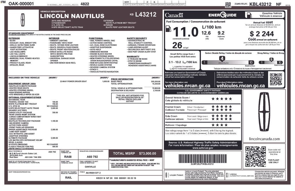 White 2019 Lincoln Nautilus Reserve AWD 8-Speed Automatic V6