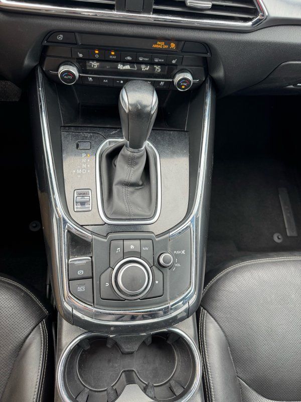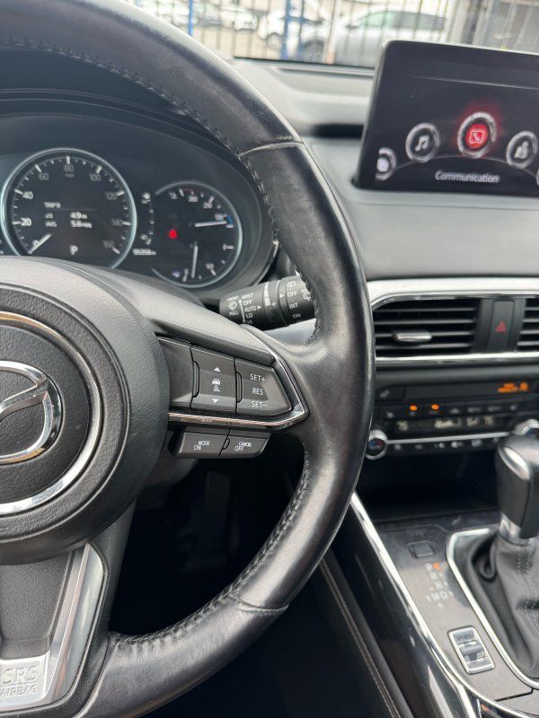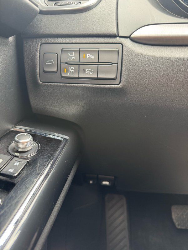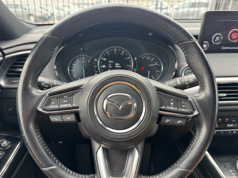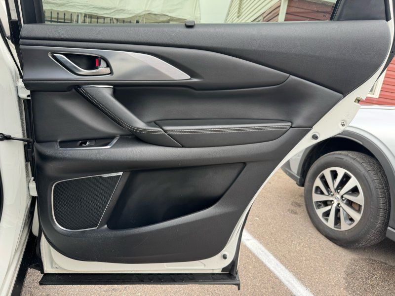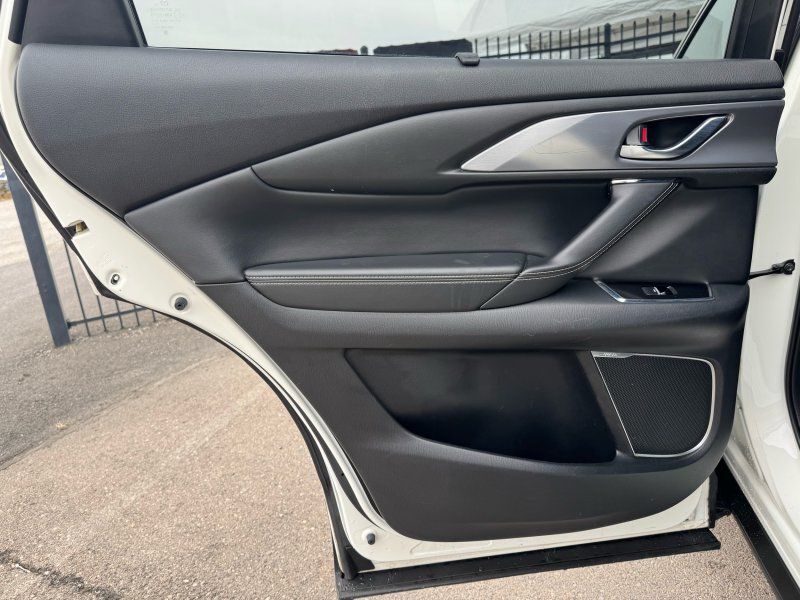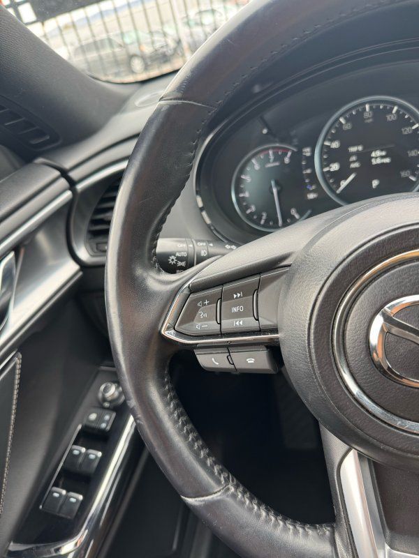 Sunroof/Moonroof,Leather Seats,Seating capacity: 7,Front passenger lumbar: Front passenger seat with 2-way power lumbar,Front head restraints: Height adjustable front seat head restraints,Front head restraint control: Manual front seat head restraint control,Second-row seats fixed or removable: Fixed second-row seats,Folding second-row seats: 60-40 folding second-row seats,Reclining second-row seats: Manual reclining second-row seats,Second-row seats: Split-bench second-row seat,Heated rear seats: Heated rear seats,Second-row seat folding position: Fold forward second-row seatback,Fore and aft second-row seat: Second-row seats with manual fore and aft,Rear head restraints: Height adjustable rear seat head restraints,Rear head restraint control: Manual rear seat head restraint control,Rear head restraint control: 3 rear seat head restraints,Third-row seat fixed or removable: Fixed third-row seats,Third-row seats folding: 50-50 folding third-row passenger seat,Third-row seat facing: Front facing third-row seat,Third-row head restraints: Fixed third-row head restraints,Front seatback upholstery: Leatherette front seatback upholstery,Door trim insert: Leatherette door trim insert,Headliner material: Cloth headliner material,Headliner coverage: Full headliner coverage,Floor covering: Full carpet floor covering,Floor mats: Carpet front and rear floor mats,Panel insert: Aluminum instrument panel insert,Gearshifter material: Leather and metal-look gear shifter material,Door panel insert: Piano black and aluminum door panel insert,Console insert material: Piano black console insert,Interior accents: Chrome and metal-look interior accents,Rear seatback upholstery: Carpet rear seatback upholstery,Third-row seat upholstery: Vinyl rear seat upholstery,Third-row seatback upholstery: Carpet third-row seatback upholstery,Climate control: Automatic climate control,Air conditioning: Yes,Dual-zone front climate control: Dual-zone front climate control,Rear climate control: Rear climate control system with separate controls,Cabin air filter: Cabin air filter,Rear console climate control ducts: Rear console climate control ducts,Steering wheel material: Leather steering wheel,Steering wheel tilt: Manual tilting steering wheel,Steering wheel telescopic: Manual telescopic steering wheel,Heated steering wheel: Heated steering wheel,Rear sun blinds: Manual rear side window sunblinds,Tinted windows: Deep tinted windows,Third-row head restraint number: 2 third-row head restraints,Bench seats: Third-row bench seat,Armrests rear: Second-row center armrest,Armrests rear storage: Second-row center armrest storage,Armrests front center: Front seat center armrest,Floor coverage: Full floor coverage,Passenger doors rear left: Conventional left rear passenger door,Door mirrors: Power door mirrors,Rear cargo door: Power liftgate rear cargo door,Heated door mirrors: Heated driver and passenger side door mirrors,Passenger doors rear right: Conventional right rear passenger door,Visor driver expandable coverage: Driver visor with expandable coverage,Visor driver mirror: Driver visor mirror,Visor illuminated driver mirror: Illuminated driver visor mirror,Visor passenger expandable coverage: Passenger visor with expandable coverage,Visor passenger mirror: Passenger visor mirror,Visor illuminated passenger mirror: Illuminated passenger visor mirror,Rearview mirror: Auto-dimming rear view mirror,Beverage holders: Front beverage holders,Rear seat direction: Front facing rear seat,Third-row fold into floor seats: Manual fold into floor third-row seat,Shifter boot: Leatherette shifter boot,Floor console: Full floor console,Floor console storage: Covered floor console storage,Overhead console: Mini overhead console,Overhead console storage: Overhead console storage,Glove box: Standard glove box,Number of beverage holders: 12 beverage holders,Seatback storage pockets: 4 seatback storage pockets,Door bins front: Driver and passenger door bins,Door bins rear: Rear door bins,Cargo floor type: Carpet cargo area floor,Trunk lid trim: Plastic trunk lid trim,Cargo tie downs: Cargo area tie downs,Cargo light: Cargo area light,Concealed cargo storage: Cargo area concealed storage,Steering mounted audio control: Steering wheel mounted audio controls,Cruise control: Cruise control with steering wheel mounted controls,Adaptive cruise control: Mazda Radar Cruise Control (MRCC),Cargo access: Proximity cargo area access release,Fuel door: Manual fuel door release,Trunk hatch: Trunk/hatch auto-latching,Driver foot rest: Driver foot rest,Accessory power: Retained accessory power,Garage door opener: HomeLink garage door opener,12V power outlets: 2 12V power outlets,Door locks: Power door locks with 2 stage unlocking,Keyfob keyless entry: Keyfob keyless entry,All-in-one key: All-in-one remote fob and ignition key,Auto door locks: Auto-locking doors,Fob engine controls: Advanced Keyless Entry with hands-free access and push button start,Tailgate control: Tailgate/power door lock,Keyfob cargo controls: Keyfob trunk control,Tachometer: Tachometer,Engine/electric motor temperature gauge: Engine/electric motor temperature gauge,Clock: Digital clock,Compass: Compass,Temperature display: Exterior temperature display,Speedometer: Redundant digital speedometer,Folding door mirrors: Power folding door mirrors,Engine temperature warning: Engine temperature warning,Battery charge warning: Battery charge warning,Low level warnings: Low level warning for oil fuel, washer fluid and brake fluid,Key in vehicle warning: Key in vehicle warning,Bulb warning: Bulb failure warning,Door ajar warning: Rear cargo area ajar warning,Service interval warning: Service interval indicator,Oil pressure warning: Oil pressure warning,Trip computer: Trip computer,First-row windows: Power first-row windows,Third-row windows: Fixed third-row windows,Second-row windows: Power second-row windows,One-touch down window: Front and rear one-touch down windows,One-touch up window: Front and rear 
