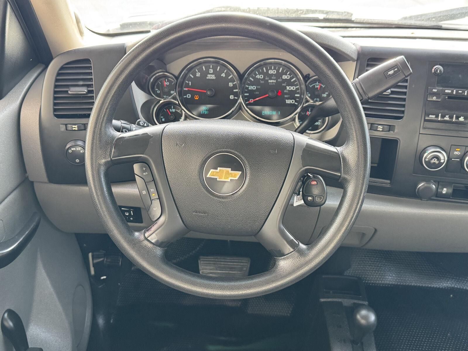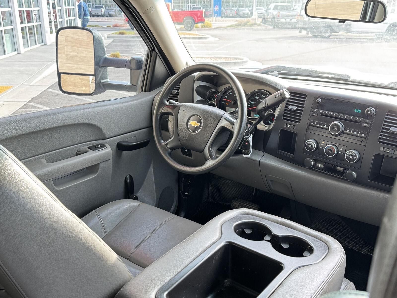PICKUP BOX, FLEETSIDE, SUSPENSION PACKAGE, HANDLING/TRAILERING, HEAVY-DUTY, EMISSIONS, CONNECTICUT, DELAWARE, MAINE, MARYLAND, MASSACHUSETTS, NEW JERSEY, NEW YORK, OREGON, PENNSYLVANIA, RHODE ISLAND, VERMONT AND WASHINGTON STATE REQUIREMENTS, EMISSIONS OVERRIDE, FEDERAL, ENGINE, VORTEC 6.0L VARIABLE VALVE TIMING V8 SFI E85-COMPATIBLE, FLEXFUEL, TRANSMISSION, 6-SPEED AUTOMATIC, HEAVY-DUTY, ELECTRONICALLY CONTROLLED, GVWR, 9900 LBS. (4490 KG), REAR AXLE, 4.10 RATIO, WHEELS, 17" (43.2 CM) STEEL, TIRES, LT245/75R17E ALL-SEASON, BLACKWALL, TIRE, SPARE LT245/75R17E ALL-SEASON, BLACKWALL, PAINT, SOLID, SUMMIT WHITE, SEATS, FRONT 40/20/40 SPLIT-BENCH, 3-PASSENGER, DRIVER AND FRONT PASSENGER MANUAL RECLINING, DARK TITANIUM, VINYL SEAT TRIM, AUDIO SYSTEM, AM/FM STEREO WITH MP3 COMPATIBLE CD PLAYER, ENGINE BLOCK HEATER, DIFFERENTIAL, HEAVY-DUTY AUTOMATIC LOCKING REAR, TRAILERING EQUIPMENT, HEAVY-DUTY, TRAILERING WIRING PROVISIONS, FOR CAMPER, FIFTH WHEEL AND GOOSENECK TRAILER, TRAILER BRAKE CONTROLLER, INTEGRATED, SKID PLATE PACKAGE, FRAME-MOUNTED SHIELDS, LAMPS, SMOKED AMBER ROOF MARKER, MIRRORS, OUTSIDE HIGH-VISIBILITY VERTICAL CAMPER-STYLE, BLACK, LICENSE PLATE FRONT MOUNTING PACKAGE, REMOTE KEYLESS ENTRY, DEFOGGER, REAR-WINDOW ELECTRIC