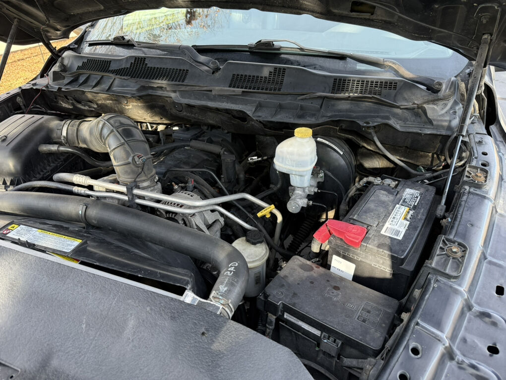 The picture of the ram box with some stuff in it is the rest of the 5 quart bottle of oil in case it needs to be topped off, the new bedliner paint on can of stuff that I bought to redo that one panel, and a spare fuel cap.