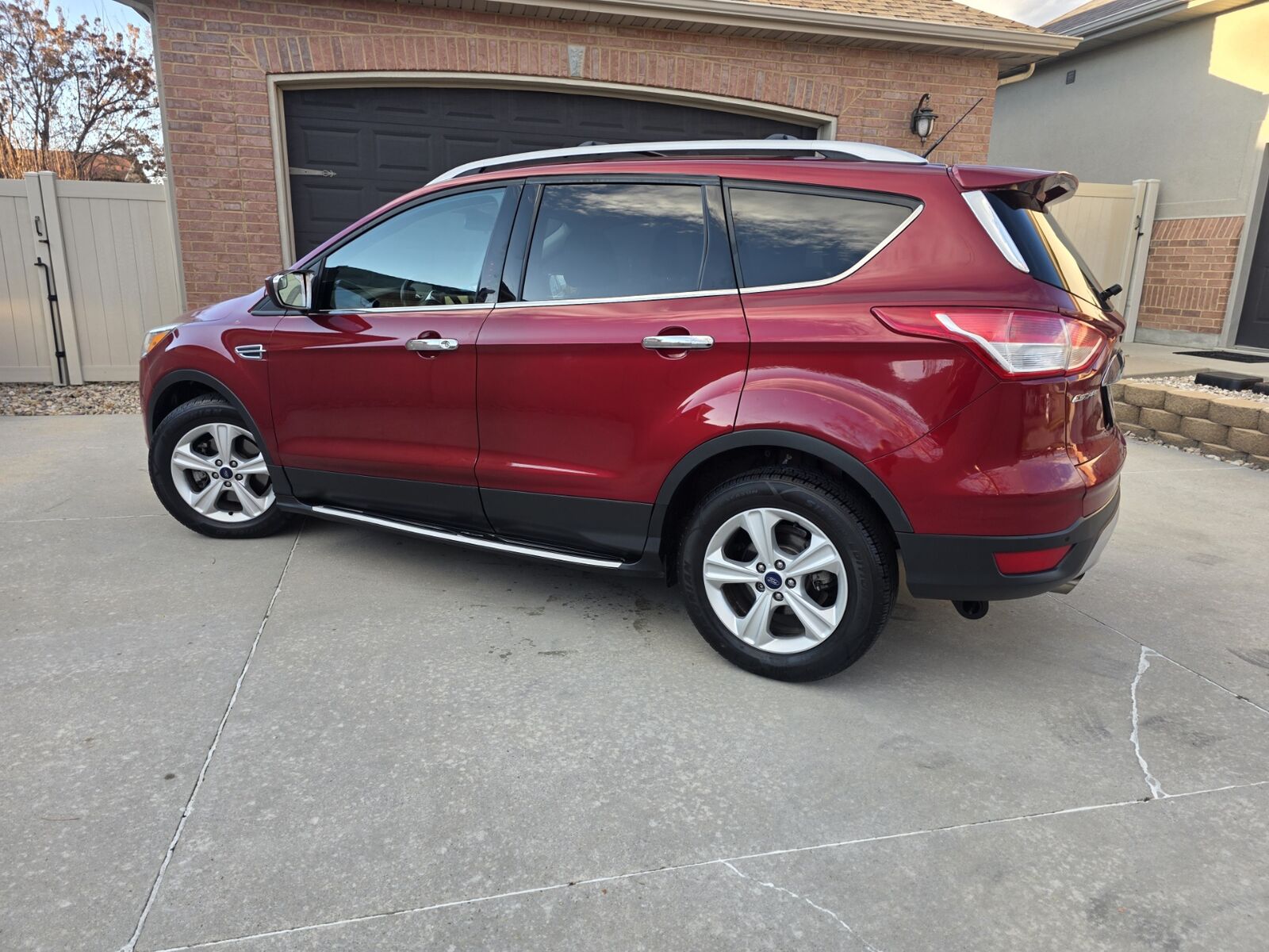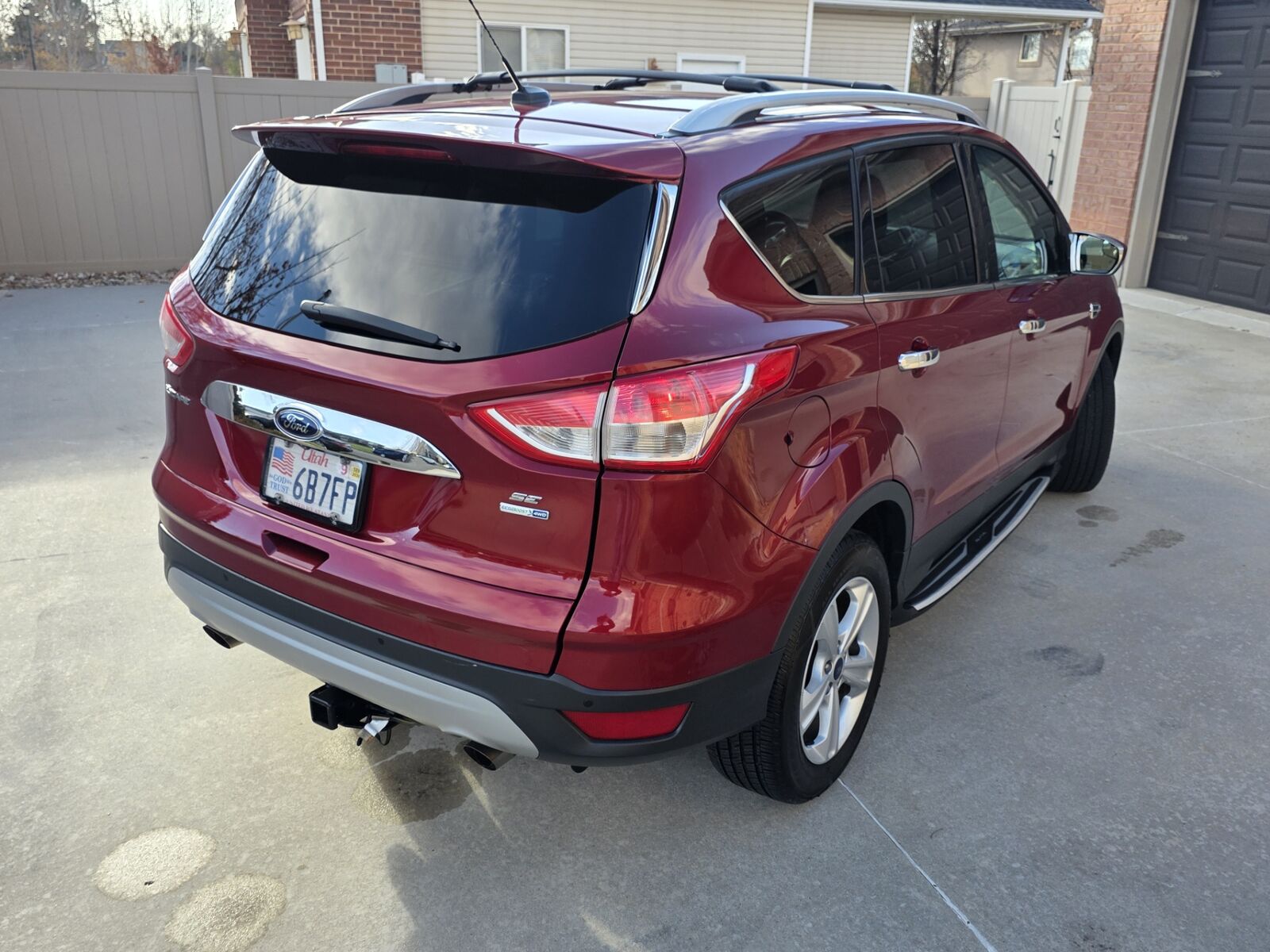 Babied 2014 Ford Escape SE 4WD 1.6 EcoBoost Turbo 4cly. Zippy 178 HP, Timing Chain engine, 58240 Actual low miles, 5,249 Miles per year! Clean Carfax, 2 Owner, Intelligent 4x4, 22/30 MPG, 4 Wheel ABS Disc brakes, Traction control, 6 speed Automatic with touch shifter, loaded with every option available on the SE. Auto lights, Auto Dimming, Programable wipers, Programable lighting, Exterior touch locks, Delayed lighting, Full instrumentation, Assignable program car keys for parental controls, Back up camera with parking guide, Radar sensors for back up, Dual trip meters, PM guage, Low fuel warning, Heated Leather Seats, Automatic dual climate control, Lit mirror visors, Microsoft Sync system, AV controls, Bluetooth, AM/FM/Aux Satellite, USB, CD, Big touch screen, 9 speaker, All 4 power window express up and down. Auto power locks, Tilt and telescope, Leather wrapped wheel, Phone controls, Cruise, Radio controls, Information controls in steering wheel, Chrome accents throughout interior, 8 adjustable vents front, 2 in rear, 12V front and back power points, USB in center console, Arm rest, Map pocket in side and backs of seats, Hidden storage under passenger seat, Center console with 8 cupholders throughout the vehicle. Storage pockets on all doors and sides of seat and console, overhead console with sunglass holder and LED interior dim down lighting, 110V plug for the rear passengers, All reclining seats, full fold down 65/35 split lay down rears seats, adjustable head rests, Privacy rear cargo cover, Full carpeted mats, Weather mats and rear cargo mat, 17" Alloy wheels, New Arizonan Silver Edition All-season 225/65/17 Tires, Bright Roof Rack and Running Boards, Chrome accents; door handles & mirrors, Tinted windows, Fog lights, Dual folding power heated mirrors with angle mirrors, Power lock rear deck lid, Rear wiper, Rear heated mirrors, Rear color coated spoiler, Two remote keys. All records. Always serviced. Never smoked in.