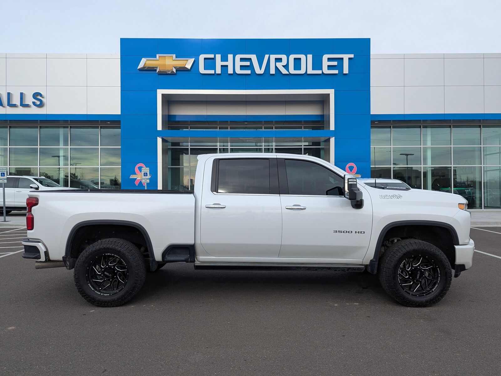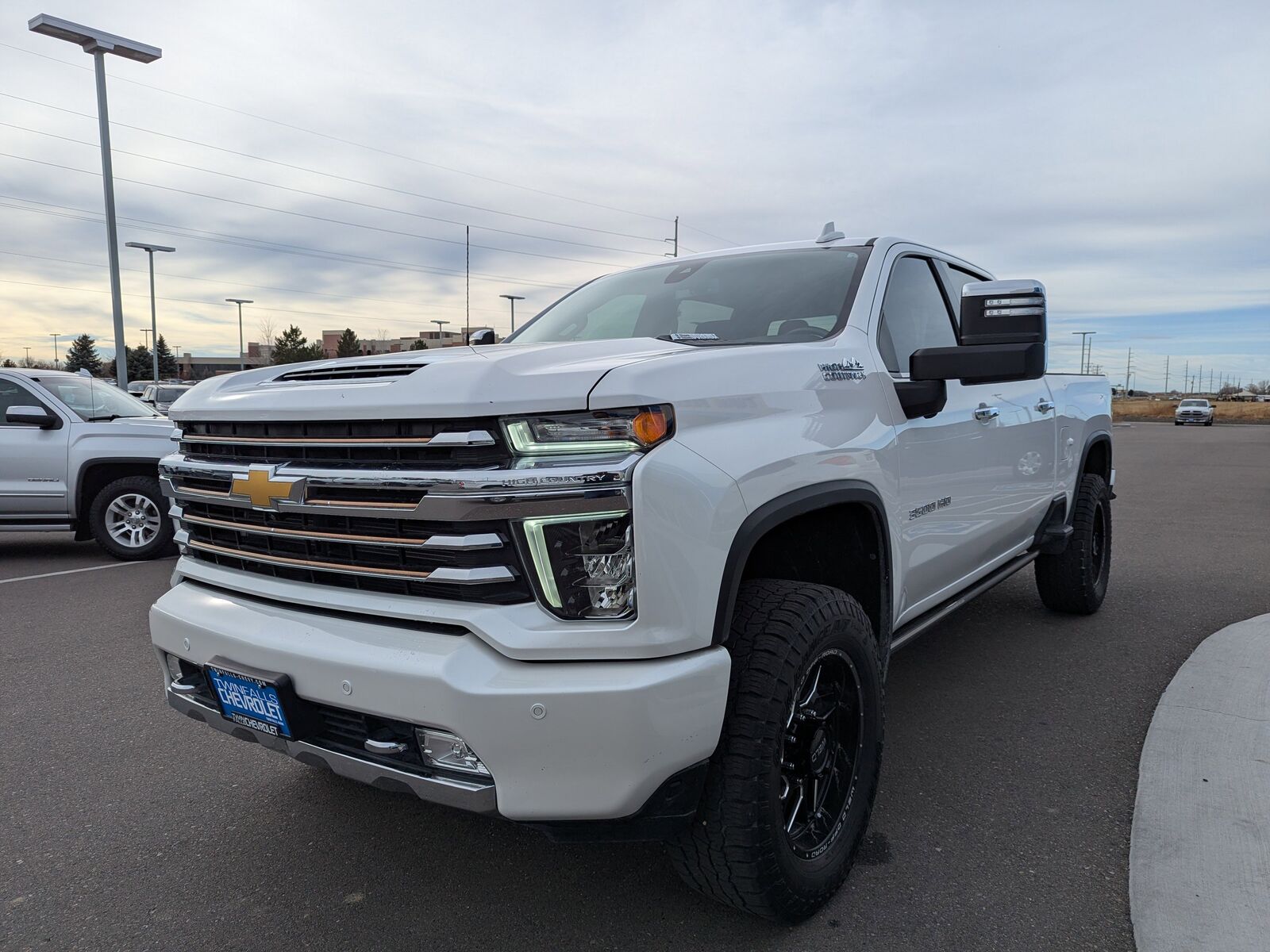 IRIDESCENT PEARL TRICOAT,INTELLIBEAM AUTOMATIC HIGH BEAM ON/OFF,FOLLOWING DISTANCE INDICATOR,GOOSENECK / 5TH WHEEL PREP PACKAGE -- Hitch platform to accept Gooseneck or 5th Wheel hitch. Includes hitch platform with tray to accept ball stamped bed holes with removable caps installed and bed mounted 7-pin trailer harness (similar to UY2 harness).,SKID PLATES protect the oil pan front axle and transfer case,TRANSMISSION ALLISON 10-SPEED AUTOMATIC,SAFETY ALERT SEAT,JET BLACK PERFORATED LEATHER SEATING SURFACES,HILL DESCENT CONTROL,AUDIO SYSTEM CHEVROLET INFOTAINMENT 3 PREMIUM SYSTEM WITH CONNECTED NAVIGATION 8 DIAGONAL HD COLOR TOUCHSCREEN AM/FM STEREO Bluetooth audio streaming for 2 active devices wireless Apple CarPlay and Android Auto capable enhanced voice recognition additional memory for in-vehicle apps cloud connected personalization for select infotainment and vehicle settings. Subscription required for enhanced and connected services after trial period. (STD) (Includes (PZ8) Hitch Guidance with Hitch View.),SAFETY PACKAGE II includes (UEU) Forward Collision Alert (UFL) Lane Departure Warning (UHY) Automatic Emergency Braking (TQ5) IntelliBeam headlamps (UE4) Following Distance Indicator and (HS1) Safety Alert Seat,WINTER GRILLE COVER,ASSIST STEPS POWER-RETRACTABLE WITH BRIGHT TRIM includes LED lighting,ENGINE BLOCK HEATER,HIGH COUNTRY PREFERRED EQUIPMENT GROUP includes standard equipment,NOT EQUIPPED WITH FRONT AND REAR PARK ASSIST see dealer for details (Vehicles built prior to 12-20-2021 include Front and Rear Park Assist. Certain vehicles built on or after 12-20-2021 will be forced to include (00Z) Not Equipped with Front and Rear Park Assist which removes Front and Rear Park Assist. See the window label for the features on a specific vehicle.),REAR AXLE 3.42 RATIO,WHEELS 20 (50.8 CM) POLISHED ALUMINUM 16-SPOKE (STD),ENGINE DURAMAX 6.6L TURBO-DIESEL V8 B20-DIESEL COMPATIBLE (445 hp [332 kW] @ 2800 rpm 910 lb-ft of torque [1220 Nm] @ 1600 rpm),GVWR 12 100 LBS. (5488 KG) WITH SINGLE REAR WHEELS,AUTOMATIC EMERGENCY BRAKING,EXHAUST BRAKE,SEATS FRONT BUCKET WITH CENTER CONSOLE FOR CREW CAB AND DOUBLE CAB MODELS (STD),LICENSE PLATE KIT FRONT (will be shipped to orders with ship-to states that require front license plate),Z71 OFF-ROAD PACKAGE includes (Z71) Off-Road suspension with off-road tuned twin tube Rancho shocks (JHD) Hill Descent Control and (NZZ) skid plates (transfer case and oil pan),ALTERNATOR 220 AMPS,LANE DEPARTURE WARNING,NOT EQUIPPED WITH HEATED SECOND ROW OUTBOARD SEATS see dealer for details (Certain vehicles built on or after 7-26-2021 will include (RGJ) Not Equipped with Heated Second Row Outboard Seats which removes (KA6) Heated Second Row Outboard Seats.),FORWARD COLLISION ALERT,Tow Hitch,Locking/Limited Slip Differential,Four Wheel Drive,Tow Hooks,Power Steering,ABS,4-Wheel Disc Brakes,Aluminum Wheels,Tires - Front All-Terrain,Tires - Rear All-Terrain,Conventional Spare Tire,Running Boards/Side Steps,Daytime Running Lights,Fog Lamps,Heated Mirrors,Power Mirror(s),Integrated Turn Signal Mirrors,Power Folding Mirrors,Privacy Glass,Rear Defrost,Sliding Rear Window,Bed Liner,AM/FM Stereo,Navigation System,MP3 Capability,Bluetooth Connection,Auxiliary Audio Input,Smart Device Integration,Satellite Radio,Requires Subscription,Navigation System,Satellite Radio,Telematics,Requires Subscription,Premium Sound System,Bluetooth Connection,Bluetooth Connection,Smart Device Integration,WiFi Hotspot,Bucket Seats,Leather Seats,Power Driver Seat,Driver Adjustable Lumbar,Power Passenger Seat,Passenger Adjustable Lumbar,Heated Front Seat(s),Heated Front Seat(s),Cooled Front Seat(s),Mirror Memory,Seat Memory,Floor Mats,Floor Mats,Leather Steering Wheel,Heated Steering Wheel,Adjustable Steering Wheel,Steering Wheel Audio Controls,Tire Pressure Monitor,Power Windows,Power Windows,Power Door Locks,Remote Engine Start,Keyless Entry,Power Door Locks,Keyless Start,Cruise Control,Universal Garage Door Opener,Security System,Power Outlet,MP3 Capability,Auxiliary Audio Input,MP3 Capability,Auxiliary Audio Input,Power Outlet,Climate Control,Multi-Zone A/C,A/C,A/C,Rear A/C,Rear Defrost,Auto-Dimming Rearview Mirror,Traction Control,Stability Control,Daytime Running Lights,Driver Air Bag,Passenger Air Bag,Front Side Air Bag,Front Head Air Bag,Rear Head Air Bag,Passenger Air Bag Sensor,Telematics,Requires Subscription,Aerial View Display System,Back-Up Camera,Cross-Traffic Alert,Blind Spot Monitor,Driver Restriction Features,Tire Pressure Monitor