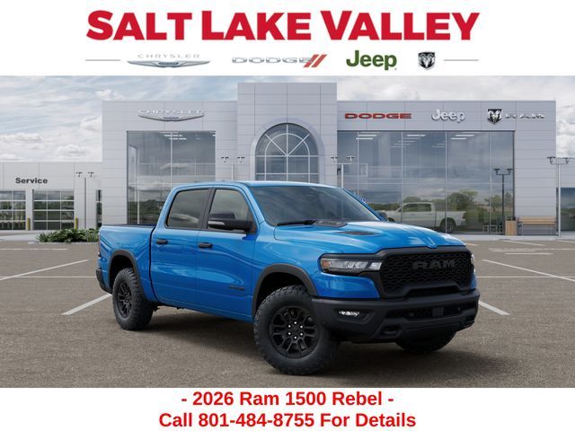 Get the job done and have fun doing it with the new Ram 1500 from Salt Lake Valley CDJR! Power, durability, and innovation come together in every Ram truck. Whether you’re working hard or exploring Utah’s backroads, the 1500 is built to handle it all. Call us today at 801-484-8755 to schedule a time to check it out! 2026 Ram 1500 Rebel Hydro Blue Pearlcoat 3.0L I6