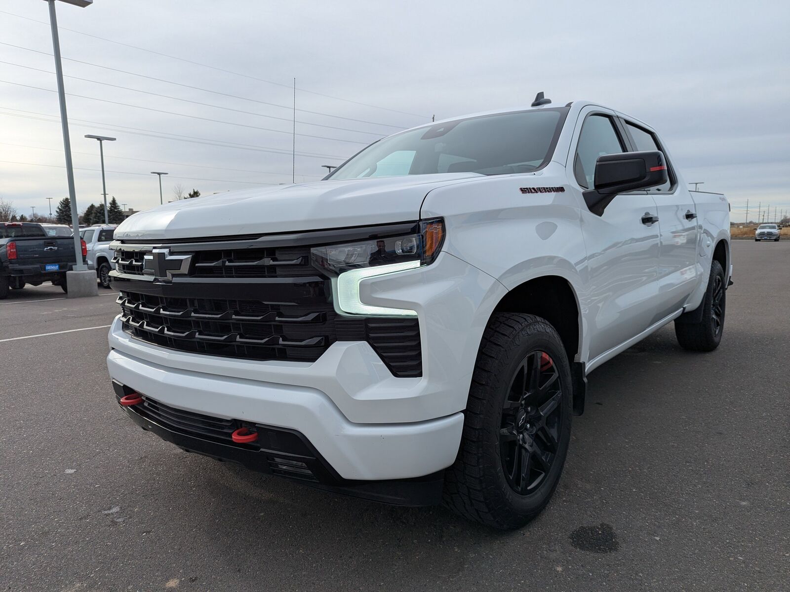 RECOVERY HOOKS PERFORMANCE RED,REAR AXLE 3.23 RATIO,JET BLACK CLOTH SEAT TRIM,CHEVYTEC SPRAY-ON BEDLINER BLACK (does not include spray-on liner on tailgate due to Black composite inner panel),PROTECTION PACKAGE includes (B1J) wheel house liners and (CGN) Chevytec spray-on bedliner,RST PREFERRED EQUIPMENT GROUP includes standard equipment,NOT EQUIPPED WITH FUNCTIONAL CAB AND BED POWER OUTLETS SEE DEALER FOR DETAILS (Certain vehicles built on or after 9-19-22 may be forced to include (08R) Not Equipped with functional Cab or Bed Power Outlets which removes the Cab and Bed power outlet functionality. See dealer for details or the window label for the features on a specific vehicle. Vehicles equipped with (08R) Not Equipped with functional Cab or Bed Power Outlets will be eligible for later dealer retrofit to enable functionality. See dealer for details or the window label for the features on a specific vehicle.),TIRE SPARE 255/80R17SL ALL-SEASON BLACKWALL,TIRES 275/60R20SL ALL-TERRAIN BLACKWALL (Includes (QAQ) spare tire.),AUDIO SYSTEM CHEVROLET INFOTAINMENT 3 PREMIUM SYSTEM with Google built-in 13.4 diagonal HD color touchscreen includes multi-touch display AM/FM stereo Bluetooth streaming audio for music and most phones; featuring wireless Android Auto and Apple CarPlay capability for compatible phones advanced voice recognition in-vehicle apps personalized profiles for infotainment and vehicle settings (STD),NOT EQUIPPED WITH STEERING COLUMN LOCK SEE DEALER FOR DETAILS,GVWR 7100 LBS. (3221 KG),SEATS FRONT 40/20/40 SPLIT-BENCH with covered armrest storage and under-seat storage (lockable) (STD),LPO ALL-WEATHER FLOOR LINERS 1st and 2nd rows on Crew Cab and Double Cab (includes Chevrolet Bowtie logo),ENGINE 5.3L ECOTEC3 V8 (355 hp [265 kW] @ 5600 rpm 383 lb-ft of torque [518 Nm] @ 4100 rpm); featuring available Dynamic Fuel Management that enables the engine to operate in 17 different patterns between 2 and 8 cylinders depending on demand to optimize power delivery and efficiency,WHEELHOUSE LINERS REAR,TRAILER BRAKE CONTROLLER INTEGRATED,SUMMIT WHITE,COOLING EXTERNAL ENGINE OIL COOLER,EXHAUST DUAL WITH POLISHED OUTLETS (STH) Rally Edition and (WGQ) Redline Edition includes Black exhaust tips.),LPO UNDERSEAT STORAGE (dealer-installed),SUSPENSION PACKAGE HIGH CAPACITY,SEAT CLOTH REAR WITH STORAGE PACKAGE 60/40 folding bench for Crew Cab models includes seatback storage on left and right side center fold out armrest with 2 cupholders (includes child seat top tether anchor),TRANSMISSION 10-SPEED AUTOMATIC ELECTRONICALLY CONTROLLED with overdrive and tow/haul mode. Includes Cruise Grade Braking and Powertrain Grade Braking,WHEELS 20 X 9 (50.8 CM X 22.9 CM) HIGH GLOSS BLACK PAINTED ALUMINUM with Red stripes,REDLINE EDITION includes high gloss Black door handles high gloss Black grille Black tailgate lettering headlamp dark bezel Black with Red outline Silverado emblems for fenders and tailgate Black RST badge on tailgate Red stripes on outside rearview mirrors Black rectangular dual exhaust tips (UGA) Red recovery hooks (RPS) 20 High gloss Black painted aluminum wheels with Red stripes (WPQ) Protection Package and (RVS) Black assist steps LPO When ordered with (L87) 6.2L EcoTec3 V8 engine or (LZ0) Duramax 3.0L Turbo-Diesel I6 engine includes Black hood badging.,COOLING AUXILIARY EXTERNAL TRANSMISSION OIL COOLER,LPO ASSIST STEPS - 4 BLACK - ROUND (dealer-installed),ALTERNATOR 170 AMPS,Tow Hitch,Lane Departure Warning,Lane Keeping Assist,Front Collision Mitigation,Front Collision Warning,Automatic Highbeams,Climate Control,Multi-Zone A/C,A/C,Security System,Rear Defrost,Keyless Entry,Power Door Locks,Power Driver Seat,Heated Front Seat(s),Driver Adjustable Lumbar,Remote Engine Start,Keyless Start,Heated Steering Wheel,High Output,Keyless Start,Locking/Limited Slip Differential,Four Wheel Drive,Tow Hooks,Power Steering,ABS,4-Wheel Disc Brakes,Aluminum Wheels,Tires - Front All-Season,Tires - Rear All-Season,Tires - Front All-Season,Tires - Rear All-Season,Daytime Running Lights,LED Headlights,Automatic Highbeams,Fog Lamps,Heated Mirrors,Power Mirror(s),Privacy Glass,AM/FM Stereo,MP3 Capability,Bluetooth Connection,Auxiliary Audio Input,Smart Device Integration,Satellite Radio,Requires Subscription,Navigation System,Satellite Radio,Telematics,Requires Subscription,Bluetooth Connection,Smart Device Integration,Bluetooth Connection,WiFi Hotspot,Split Bench Seat,Cloth Seats,Power Driver Seat,Driver Adjustable Lumbar,Heated Front Seat(s),Pass-Through Rear Seat,Rear Bench Seat,Floor Mats,Floor Mats,Heated Steering Wheel,Steering Wheel Audio Controls,Adjustable Steering Wheel,Power Windows,Power Windows,Power Door Locks,Remote Engine Start,Keyless Entry,Power Door Locks,Keyless Start,Cruise Control,Security System,MP3 Capability,Auxiliary Audio Input,Climate Control,Multi-Zone A/C,A/C,A/C,Rear A/C,Rear Defrost,Front Collision Mitigation,Front Collision Warning,Front Collision Mitigation,Traction Control,Stability Control,Daytime Running Lights,Driver Air Bag,Passenger Air Bag,Front Side Air Bag,Front Head Air Bag,Rear Head Air Bag,Passenger Air Bag Sensor,Telematics,Requires Subscription,Back-Up Camera,Lane Departure Warning,Lane Keeping Assist,Front Collision Warning,Driver Restriction Features,Tire Pressure Monitor