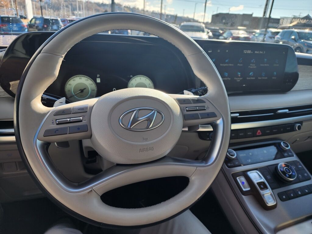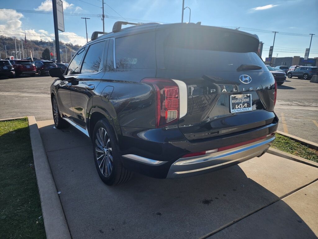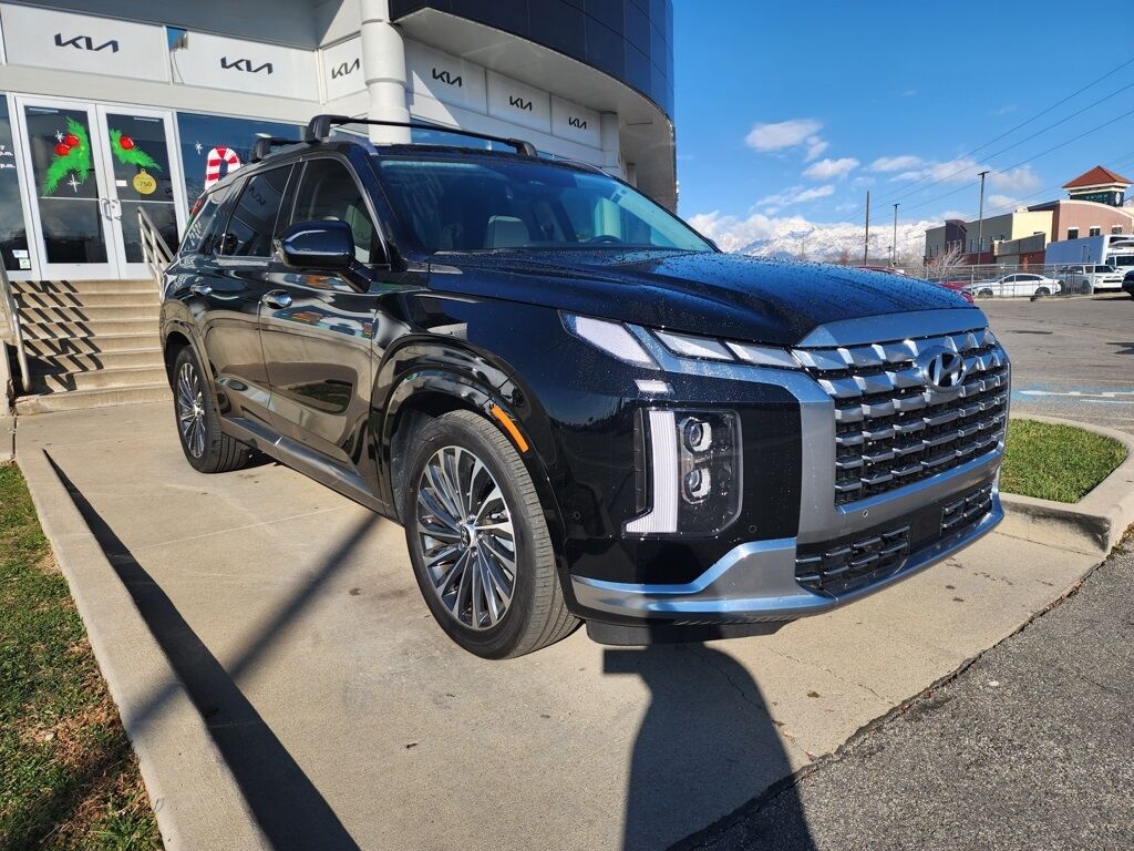 CARFAX One-Owner. Abyss Black Pearl 2024 Hyundai Palisade Calligraphy AWD 8-Speed Automatic with SHIFTRONIC V6 12 Speakers, 3.648 Axle Ratio, 3rd row seats: split-bench, 4-Wheel Disc Brakes, ABS brakes, Air Conditioning, Alloy wheels, AM/FM radio: SiriusXM, Apple CarPlay & Android Auto, Auto High-beam Headlights, Auto-dimming door mirrors, Auto-dimming Rear-View mirror, Auto-leveling suspension, Automatic temperature control, Brake assist, Bumpers: body-color, Carpeted Floor Mats, Compass, Delay-off headlights, Driver door bin, Driver vanity mirror, Dual front impact airbags, Dual front side impact airbags, Electronic Stability Control, Emergency communication system, Exterior Parking Camera Rear, Four wheel independent suspension, Front anti-roll bar, Front Bucket Seats, Front Center Armrest, Front dual zone A/C, Front reading lights, Fully automatic headlights, Garage door transmitter: HomeLink, harman/kardon® Speakers, Heads-Up Display, Heated & Ventilated Front Bucket Seats, Heated door mirrors, Heated front seats, Heated rear seats, Heated steering wheel, Illuminated entry, Knee airbag, Low tire pressure warning, Memory seat, Navigation System, Occupant sensing airbag, Option Group 01, Outside temperature display, Overhead airbag, Overhead console, Panic alarm, Passenger door bin, Passenger vanity mirror, Power door mirrors, Power driver seat, Power Liftgate, Power moonroof, Power passenger seat, Power steering, Power windows, Premium Nappa Leather Seat Trim, Radio data system, Radio: AM/FM/MP3 Premium Audio System, Rain sensing wipers, Rear air conditioning, Rear anti-roll bar, Rear audio controls, Rear reading lights, Rear side impact airbag, Rear window defroster, Rear window wiper, Reclining 3rd row seat, Remote keyless entry, Security system, Speed control, Speed-sensing steering, Split folding rear seat, Spoiler, Steering wheel mounted audio controls, Tachometer, Telescoping steering wheel, Tilt steering wheel, Traction control, Trip computer, Turn signal indicator mirrors, Variably intermittent wipers, Ventilated front seats, Ventilated rear seats, Wheels: 20'' x 7.5J Calligraphy Exclusive Alloy. Priced below KBB Fair Purchase Price!