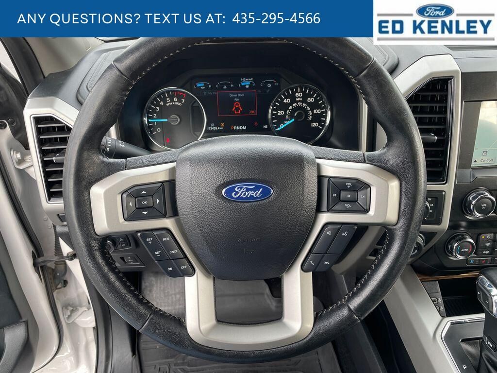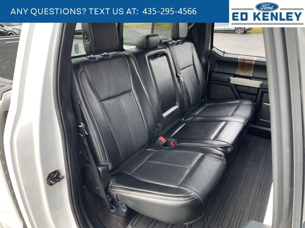 Lariat Chrome Appearance Package: Single-Tip Chrome Exhaust; Chrome Angular Step Bars; Chrome Door and Tailgate Handles with Body-Color Bezel; Chrome 2-Bar Grille with 4 Minor Bars; Chrome Skull Caps on Exterior Mirrors,Max Trailer Tow Package: Pro Trailer Backup Assist; Integrated Trailer Brake Controller; Electronic Locking with 3.55 Axle Ratio; Class IV Trailer Hitch Receiver; Extended Range 36 Gallon Fuel Tank; Engine Oil Cooler; Upgraded Front Stabilizer Bar,Equipment Group 501A Mid: Electronic 10-Speed Automatic Transmission; AM/FM Stereo with 6 Speakers; Remote Start System with Remote Tailgate Release; LED Sideview Mirror Spotlights; Reverse Sensing System; Power Glass Sideview Mirror with Body-Color Skull Caps; Universal Garage Door Opener; Blind Spot Information System (BLIS); 110V/400W Outlet,20" Chrome-Like PVD Wheels,Voice-Activated Touchscreen Navigation,Chrome Angular Step Bars,Leather-Trimmed Bucket Seats,White Platinum Met TC,White Platinum Met TC,Electronic Locking with 3.55 Axle Ratio,Extended Range 36 Gallon Fuel Tank,Tailgate Step with Tailgate Lift Assist,Integrated Trailer Brake Controller,Reverse Sensing System,110V/400W Outlet,LED Sideview Mirror Spotlights,AppLink/Apple CarPlay/Android Auto smart device mirroring,Ford Co-Pilot360 - Pre-Collision Assist with Automatic Emergency Braking (AEB) forward collision mitigation,FordPass Connect 4G LTE WiFi mobile hotspot internet access,Rear mounted camera,Brake assist system,Cruise control with steering wheel mounted controls,Ventilated driver and front passenger seats,Integrated navigation system with voice activation,Keyfob remote start,Heated driver and front passenger seats,Leather front seat upholstery,Primary monitor touchscreen,Cross-Traffic Alert collision warning,Driver seat power reclining, lumbar support, cushion tilt, fore/aft control and height adjustable control,Automatic full-time 4WD,EcoBoost 3.5L V-6 port/direct injection, DOHC, Ti-VCT variable valve control, twin turbo, regular unleaded, engine with 375HP,EcoBoost 3.5L V-6 DOHC,MyKey restricted driving mode/alerts,SecuriCode external keypad door lock control,Intelligent Access with hands-free access and push button start,Smart device remote start,Push-button,Bluetooth wireless audio streaming,Pro Trailer Backup Assist vehicle and trailer reverse assist,Vehicle to trailer hitching assist,Ford Co-Pilot360 - Blind Spot Information System (BLIS),Dual-zone front climate control,Voice-activated climate control,Auto high-beam headlights,SecuriLock immobilizer,SiriusXM Traffic real-time traffic,Bluetooth handsfree wireless device connectivity,Trailer brake controller,Trailer sway control,SYNC 3 external memory control,Digital/analog instrumentation display,Configurable instrumentation gauges,Electronic stability control system with anti-roll,Hill start assist,Automatic climate control,Rear parking sensors,0.400 kW,LED brake lights,3 12V power outlets,Front fog lights,Leather and metal-look steering wheel,Tailgate Assist easy lift tailgate,Tailgate Assist easy lift tailgate,Integrated tailgate step,Active grille shutters