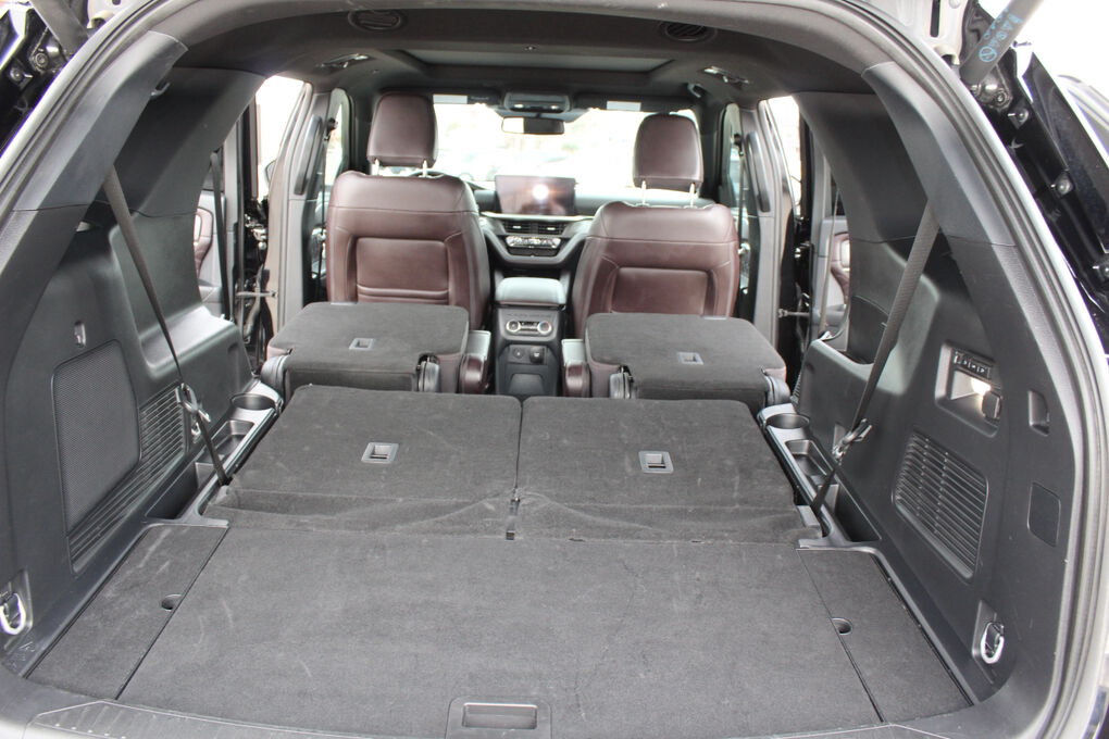 Inside, the cabin is a sanctuary of comfort. The front seats offer 10-way power multi-contour adjustment, heating, and ventilation, complemented by a heated second row and a heated leather-wrapped steering wheel. The PowerFold® third-row seat and tri-zone climate control ensure every passenger enjoys a perfect ride, while USB-C ports in all rows and a universal garage door opener keep everyone connected and in control.