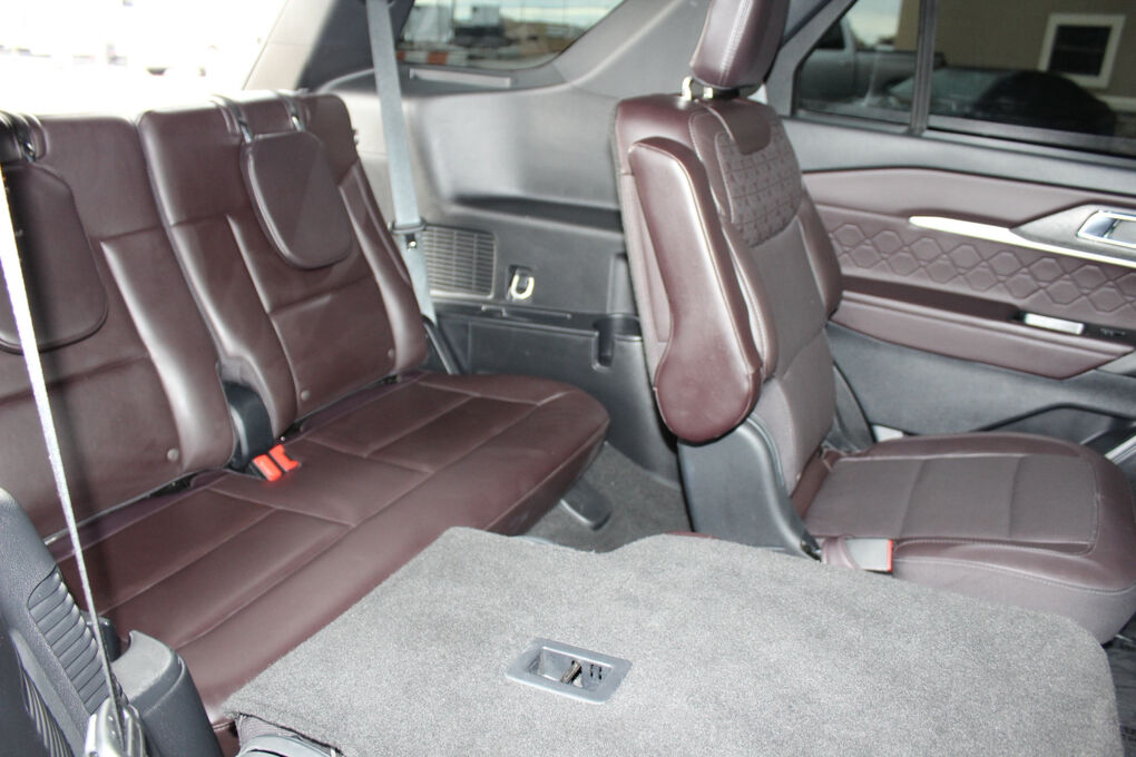 Safety is comprehensive, with AdvanceTrac® with RSC, front and side curtain airbags, SecuriCode™ keyless keypad, Personal Safety System™, and SOS Post-Crash Alert System™. Optional upgrades like 21" bright machined aluminum wheels, the Lux Leather Package, and Equipment Group 600A elevate this Explorer Platinum to a truly premium experience.
