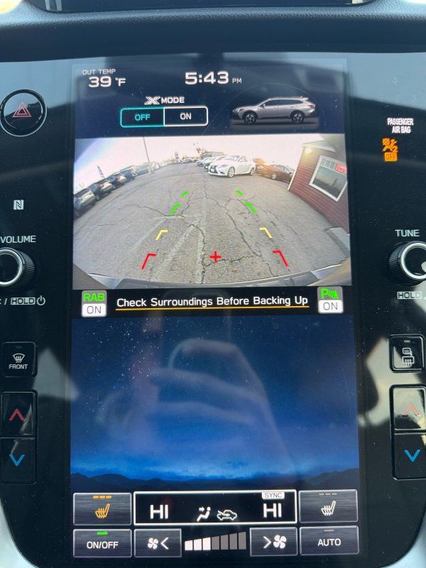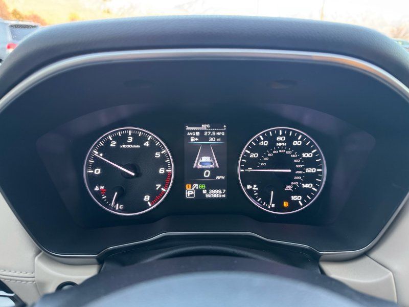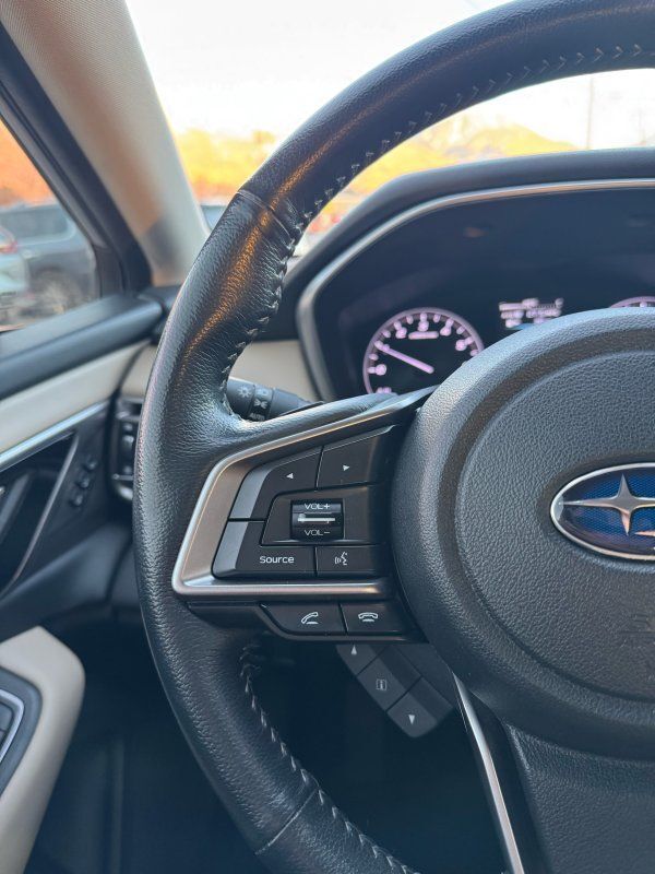 Sunroof/Moonroof,Navigation System,Leather Seats,Heated Seats,Backup Camera,Seating capacity: 5,Front head restraint control: Manual front seat head restraint control,Rear seats fixed or removable: Fixed rear seats,Reclining rear seats: Manual reclining rear seats,Rear seats: Rear bench seat,Heated rear seats: Heated rear seats,Rear seat folding position: Fold forward rear seatback,Folding rear seats: 60-40 folding rear seats,Rear head restraints: Height adjustable rear seat head restraints,Rear head restraint control: Manual rear seat head restraint control,Rear head restraint control: 3 rear seat head restraints,Front seatback upholstery: Leatherette front seatback upholstery,Door trim insert: Leatherette door trim insert,Headliner material: Cloth headliner material,Headliner coverage: Full headliner coverage,Floor covering: Full carpet floor covering,Floor mats: Carpet front and rear floor mats,Panel insert: Leatherette and metal-look instrument panel insert,Gearshifter material: Leather and chrome gear shifter material,Door panel insert: Piano black and metal-look door panel insert,Console insert material: Piano black and metal-look console insert,Interior accents: Piano black and metal-look interior accents,Rear seatback upholstery: Carpet rear seatback upholstery,Number of memory settings: 2 memory settings,Climate control: Automatic climate control,Air conditioning: Yes,Dual-zone front climate control: Dual-zone front climate control,Cabin air filter: Cabin air filter,Rear under seat ducts: Rear under seat climate control ducts,Voice activated climate control: Voice-activated climate control,Rear console climate control ducts: Rear console climate control ducts,Steering wheel material: Leather steering wheel,Steering wheel tilt: Manual tilting steering wheel,Steering wheel telescopic: Manual telescopic steering wheel,Heated steering wheel: Heated steering wheel,Tinted windows: Deep tinted windows,Laminated window: Laminated side window glass,Armrests rear: Rear seat center armrest,Armrests front center: Front seat center armrest,Armrests front storage: Front seat armrest storage,Floor coverage: Full floor coverage,Passenger doors rear left: Conventional left rear passenger door,Rear cargo door: Power liftgate rear cargo door,Heated door mirrors: Heated driver and passenger side door mirrors,Door mirror with tilt-down in reverse: Power passenger door mirror with tilt down in reverse,Passenger doors rear right: Conventional right rear passenger door,Visor driver expandable coverage: Driver visor with expandable coverage,Visor driver mirror: Driver visor mirror,Visor illuminated driver mirror: Illuminated driver visor mirror,Visor passenger expandable coverage: Passenger visor with expandable coverage,Visor passenger mirror: Passenger visor mirror,Visor illuminated passenger mirror: Illuminated passenger visor mirror,Beverage holders: Front beverage holders,Rear seat direction: Front facing rear seat,Shifter boot: Leatherette shifter boot,Floor console: Full floor console,Floor console storage: Covered floor console storage,Overhead console: Mini overhead console,Overhead console storage: Overhead console storage,Glove box: Illuminated locking glove box,Number of beverage holders: 8 beverage holders,Door bins front: Driver and passenger door bins,Door bins rear: Rear door bins,Cargo floor type: Carpet cargo area floor,Trunk lid trim: Plastic trunk lid trim,Cargo mats: Vinyl/rubber cargo mat,Cargo tie downs: Cargo area tie downs,Cargo light: Cargo area light,Concealed cargo storage: Cargo area concealed storage,Steering mounted audio control: Steering wheel mounted audio controls,Cruise control: Cruise control with steering wheel mounted controls,Adaptive cruise control: EyeSight Advanced Adaptive Cruise Control,Cargo access: Proximity cargo area access release,Trunk hatch: Trunk/hatch auto-latching,Driver foot rest: Driver foot rest,Accessory power: Retained accessory power,12V power outlets: 3 12V power outlets,Door locks: Power door locks with 2 stage unlocking,Keyfob keyless entry: Keyfob keyless entry,All-in-one key: All-in-one remote fob and ignition key,Auto door locks: Auto-locking doors,Fob engine controls: Smart key with hands-free access and push button start,Valet key: Valet key,Fuel door lock: Power fuel door lock,Tailgate control: Tailgate/power door lock,Keyfob cargo controls: Keyfob trunk control,Tachometer: Tachometer,Engine/electric motor temperature gauge: Engine/electric motor temperature gauge,Clock: Digital clock,Temperature display: Exterior temperature display,Speedometer: Redundant digital speedometer,Folding door mirrors: Manual folding door mirrors,Engine temperature warning: Engine temperature warning,Battery charge warning: Battery charge warning,Low level warnings: Low level warning for oil fuel, washer fluid and brake fluid,Key in vehicle warning: Key in vehicle warning,Bulb warning: Bulb failure warning,Door ajar warning: Rear cargo area ajar warning,Oil pressure warning: Oil pressure warning,Transmission fluid temperature warning: Transmission fluid temp warning,Rear seat check warning: Rear seat check warning,Trip computer: Trip computer,First-row windows: Power first-row windows,Third-row windows: Fixed third-row windows,Second-row windows: Power second-row windows,One-touch down window: Front and rear one-touch down windows,One-touch up window: Front and rear one-touch up windows,Wipers: Variable intermittent front windshield wipers,Sun visor strip: Sun visor strip,Rear window defroster: Rear window defroster,Rear windshield: Fixed rear windshield,Beverage holders rear: Rear beverage holders,Driver information center: Driver information center,Day/Night rearview mirror: Day/Night rearview mirror,Rear windshield wipers: Rear windshield wipers,Maximum roof rack load: 150 lbs. maximum roof rack load,Front reading lights: Front reading lights,Variable panel light: Variable instrument panel light,Headlights on reminder: Headlights on reminder,Facial memo