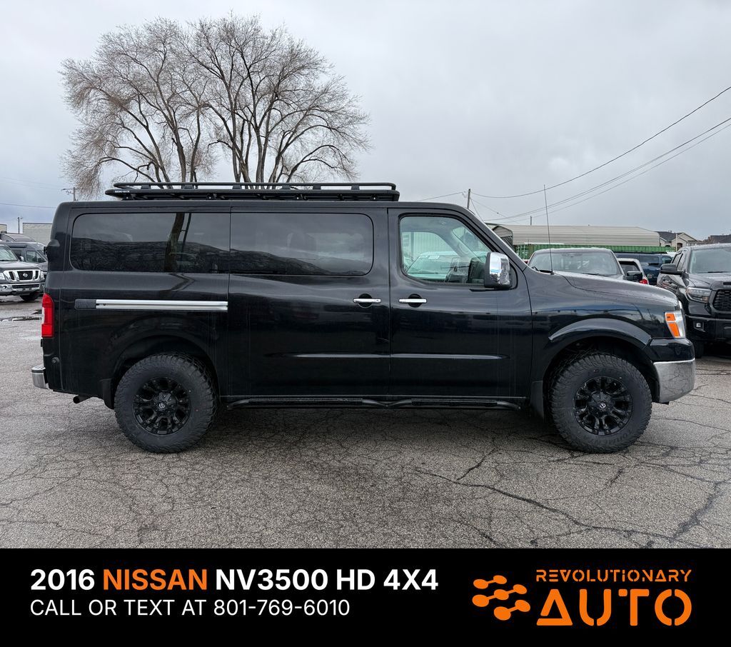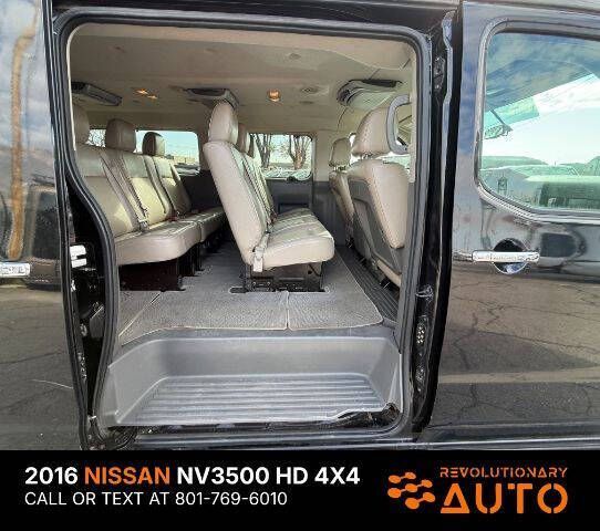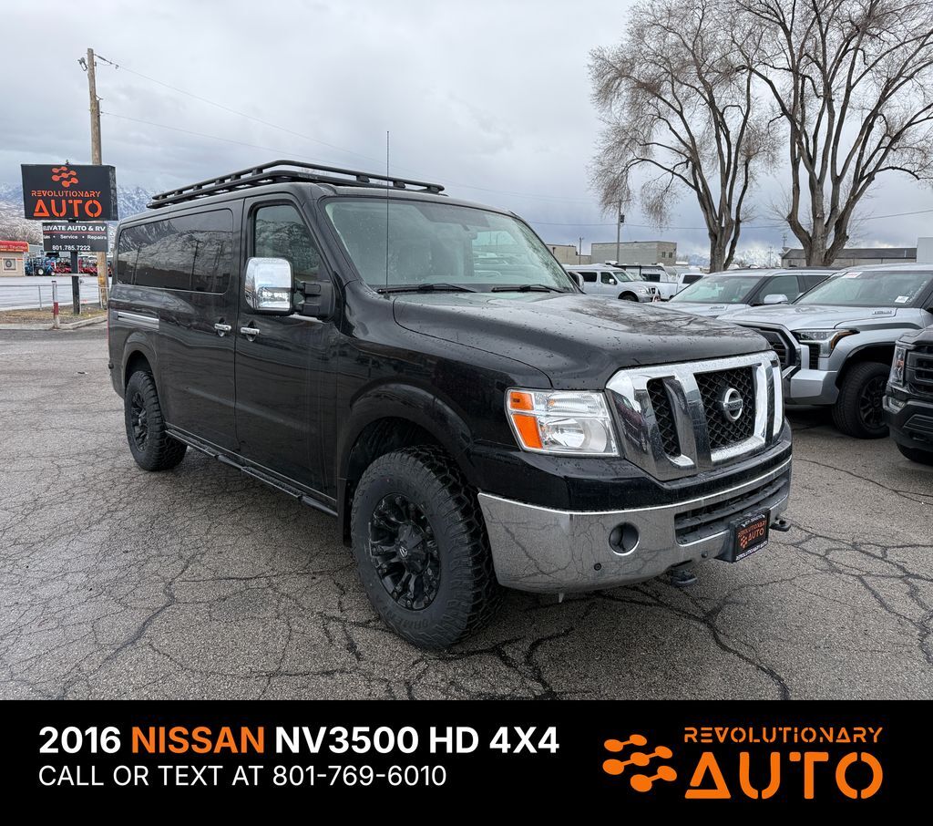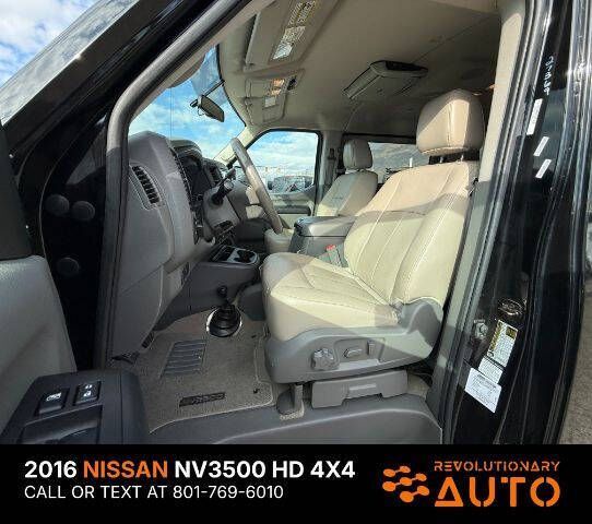 4X4 CONVERTED!! 2016 NISSAN NV 3500 HD SL, 5.6L V8, 12 Passenger, Clean Title, Clean Carfax, 21 Service Records, 1 Owner, No Accidents Reported, SL trim with Leather seats throughout, Power control front seats. Dual zone climate control, front and rear parking sensors, navigation, power windows, locks, cruise control, rear air conditioning. CALL OR TEXT JAMES FOR MORE INFORMATION OR TO SCHEDULE A TEST DRIVE! AT REVOLUTIONARY AUTO WE TAKE PRIDE IN GOING ABOVE AND BEYOND FOR OUR CUSTOMERS AND WE HOPE OUR GOOGLE REVIEWS SPEAK FOR THEMSELVES. WE ARE NOT HERE TO SIMPLY SELL CARS, WE VALUE BUILDING RELATIONSHIPS BY SIMPLY BACKING UP THE VEHICLES WE SELL AND PUTTING OUR CUSTOMERS FIRST! CALL OR TEXT JAMES TO SCHEDULE A TEST DRIVE. WE LOOK FORWARD TO MEETING YOU! 801-769-6010