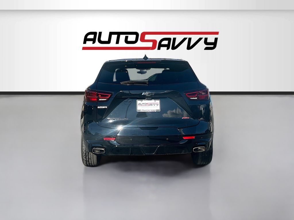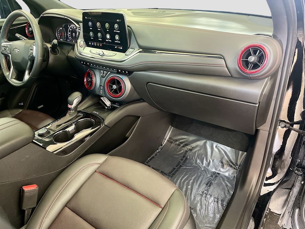 Explore the 2024 Chevrolet Blazer AWD RS at AutoSavvy Draper, a sleek sport utility vehicle designed for those who crave performance and luxury. With only 14,877 miles, this Savvy Certified Blazer is powered by a dynamic 3.6L V-6 engine, delivering a robust 308 horsepower through a smooth 9-speed automatic transmission. The striking black exterior is matched with an elegant Jet Black interior, enhanced by red accents and leather upholstery. Enjoy cutting-edge features such as Apple CarPlay and Android Auto integration, a Bose Premium 8-Speaker Audio System, and a panoramic sunroof that elevates your driving experience. Safety and convenience are paramount, with advanced systems like Adaptive Cruise Control, Blind Spot Monitor, and Automatic Emergency Braking ensuring peace of mind on every journey. This 2024 Chevrolet Blazer comes with a branded title, reflecting AutoSavvy Draper's commitment to offering high-quality vehicles at exceptional value. Despite its branded status, this SUV has undergone a rigorous inspection to meet the highest standards of reliability and performance. As a Savvy Certified vehicle, it includes our 4-month/4,500 Mile Warranty, providing you with additional peace of mind. Visit AutoSavvy Draper today to experience the perfect blend of technology, style, and safety in the Chevrolet Blazer AWD RS. Join a community of savvy buyers who trust AutoSavvy for their automotive needs and enjoy a superior buying experience where quality meets value.