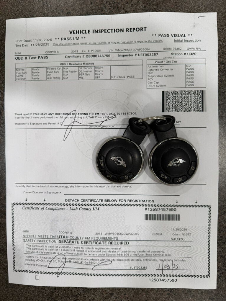 2013 Mini Cooper countrymen clean title. Black leather interior. Keyless entry. Power locks/windows. Sunroof. New aftermarket stereo system with backup camera. Only 96k miles. Runs and drives great. Includes new safety inspections/emissions certificates. Qualifies for extended warranty. I would consider your trade. Call or text Mike to schedule an appointment at 801-318-7776 located at 561 S. Orem Boulevard suite L1 Orem, UT 84058