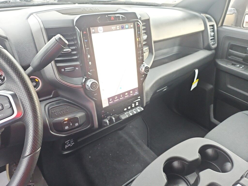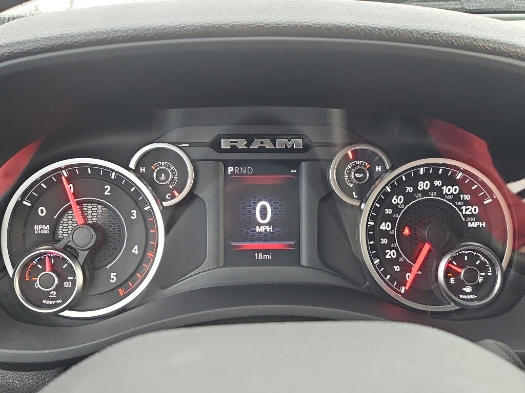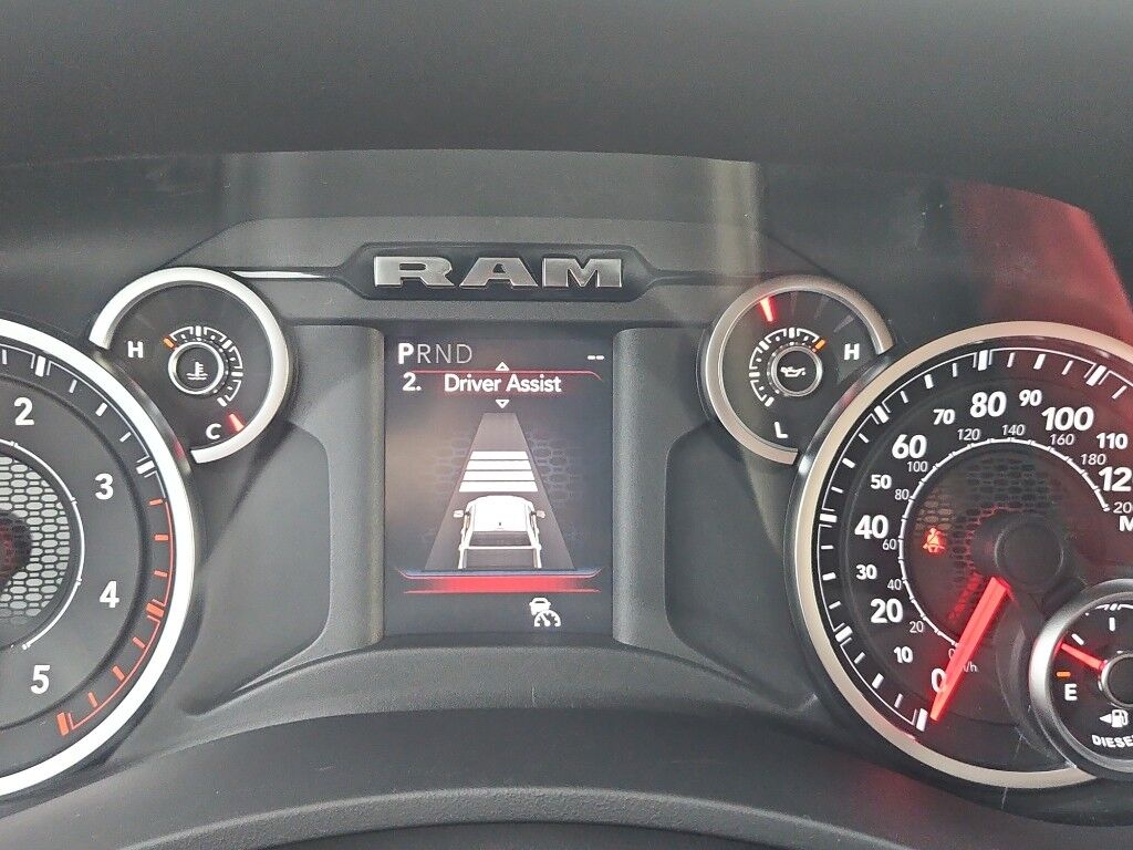 Tradesman Level 1 Equipment Group: Google Android Auto; SiriusXM Radio Service; For Details, Visit DriveUconnect.com; For More Info, Call 800-643-2112; Integrated Voice Command with Bluetooth; Emergency Vehicle Alert System (EVAS); Manual Folding Exterior Mirrors; 12" Touchscreen Display; Auto Power-Folding Mirrors; 4 Way Front Headrests; Front Armrest with Cupholders; Anti-Spin Differential Rear Axle; Remote USB Port - Charge Only; Manual Adjust 4-Way Front Passenger Seat; Mirror Running Lights; Exterior 115V AC Outlet; Alexa Built-In; Apple CarPlay; Power-Adjustable Convex Aux Mirrors; Forward and Reverse Utility Lights; Cloth 40/20/40 Bench Seat; Disassociated Touchscreen Display; Storage Tray; 115-Volt Auxiliary Front Power Outlet; Rear View Auto Dim Mirror; 40/20/40 Split Bench Seat; Rear Power Sliding Window; Connectivity - US/Canada; Rear Folding Seat; Tinted Acoustic Windshield Glass; GPS Navigation; 4G LTE Wi-Fi Hot Spot; GPS Antenna Input; Exterior Mirrors with Heating Element; MOPAR Black Tubular Side Steps; SiriusXM with 360L; Global Telematics Box Module; Connected Travel and Traffic Services; Black Exterior Mirrors; 2 Way Rear Headrest Seat; Carpet Floor Covering; Off-Road Info Pages; Selectable Tire Fill Alert; Trailer Tow Pages; 400W Inverter; HD Radio; Power Heated Folding Telescope Mirrors; Uconnect 5 Navigation with 12.0" Display Radio; Exterior Mirrors with Supplemental Signals; Exterior Mirrors Courtesy Lamps; Air Conditioning ATC with Dual Zone Control; Manual Adjust 4-Way Driver Seat; Manuarl Telescoping Mirrors; Power Adjust Mirrors; Power Telescoping Mirrors; Front and Rear Floor Mats; ParkSense Front/rear Park Assist System,Convenience Group,Quick Order Package 24A Tradesman,Bed Utility Group: MOPAR Spray in Bedliner; MOPAR Deployable Bed Step; LED Bed Lighting,Quick Order Package 2UA Tradesman,5th Wheel/gooseneck Towing Prep Group,MOPAR Black Tubular Side Steps,Anti-Spin Differential Rear Axle,Cloth 40/20/40 Bench Seat,MyFlexCare Service Diesel,50 Gallon Fuel Tank,Granite Crystal Met CC,Forward collision mitigation with pedestrian impact prevention,Integrated navigation system with voice activation,Uconnect w/Bluetooth handsfree wireless device connectivity,Apple CarPlay/Android Auto smart device wireless mirroring,MOPAR retractable rear step,Cloth front seat upholstery,Driver seat with 4-way directional controls,Front passenger seat with 4-way directional controls,12 inch primary display,Pedestrian impact prevention,4G LTE Wi-Fi Hot Spot mobile hotspot internet access,ParkView rear mounted camera,Adaptive cruise control with stop and go,Brake assist system,Cruise control with steering wheel mounted controls,Primary monitor touchscreen,Part-time 4WD,Cummins High Output 6.7L I-6 diesel direct injection, VVT intercooled turbo, diesel, engine with 430HP,Cummins High Output 6.7L I-6,Alexa Built-In built-in virtual assistant,Push-button,Wireless audio streaming,Following distance alert,Smart key with push button start,Trailer light test,Dual-zone front climate control,Sentry Key immobilizer,RAM Connect vehicle tracker,Active noise cancellation,Connected Travel & Traffic Services real-time traffic,RAM Connect vehicle integrated emergency SOS system,Trailer brake controller,Trailer sway control,Uconnect external memory control,Internet radio capability,5 USB ports,Electronic stability control system with anti-roll,Hill start assist,Automatic climate control,Rear Seat Reminder Alert rear seat check warning,ParkSense front and rear parking sensors,1 exterior 120V AC power outlet,LED front fog lights,Active grille shutters,Connected Travel & Traffic Services real-time weather,Trailer hitch light,Manual rear child safety door locks,Mobile app access,Illuminated front beverage holders,Heated driver and passenger side door mirrors