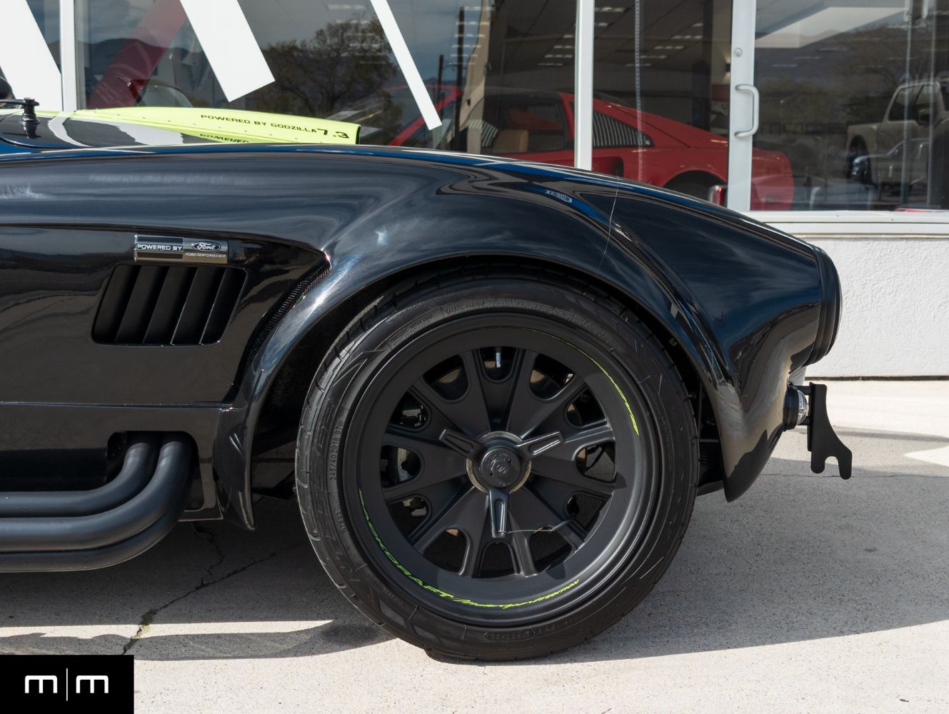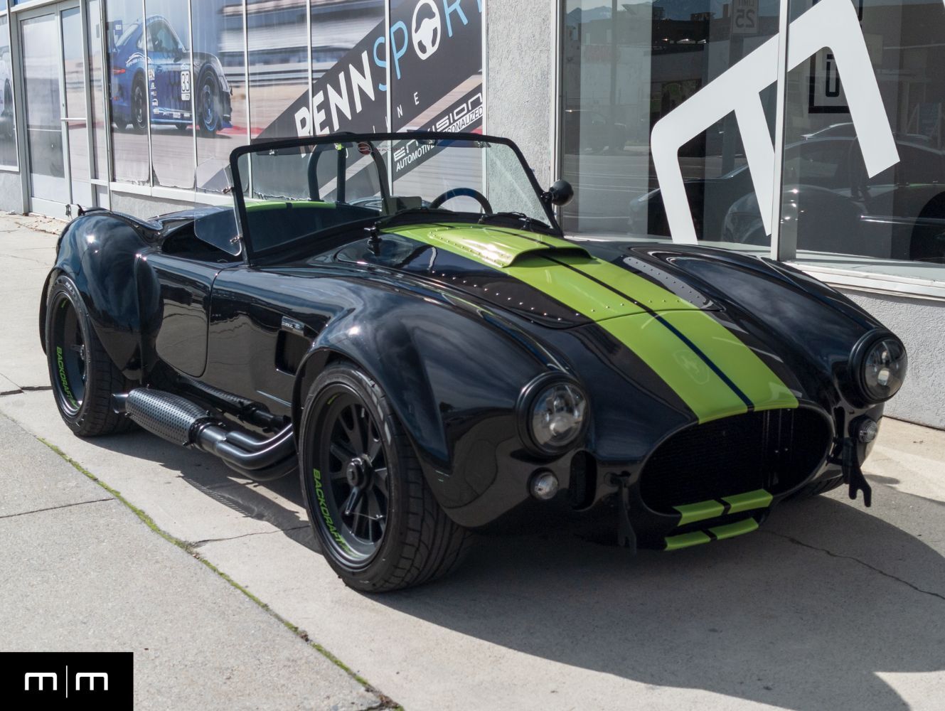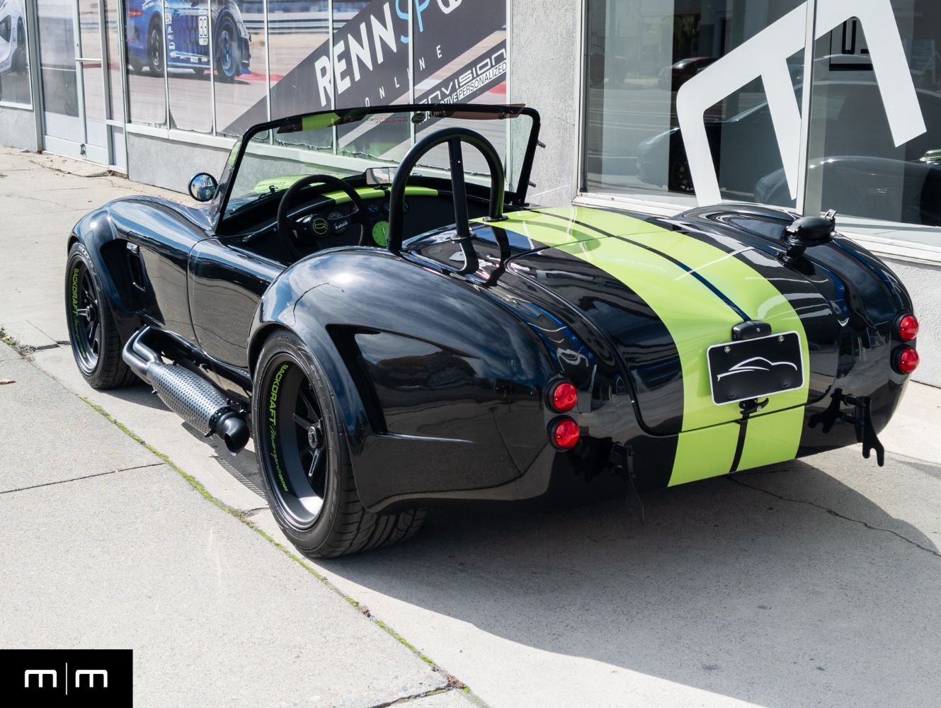 This 2023 Backdraft Racing 1965 Shelby Cobra Replica is a one owner example showing just 3006 miles and finished in black with green stripes, accents, and wheel decals. Purchased new from Naples Motorsports, this example represents one of the most aggressive and well sorted turnkey builds available from Backdraft Racing. Power comes from Ford's 7.3 liter Godzilla V8 producing near 660 horsepower paired with a Tremec manual transmission that delivers an authentic high torque driving experience. The GT4 body distinguishes this example with widened arches, modern aero cues, and a more muscular stance over the traditional Cobra profile. The 7.3L Godzilla V8 is a rare option in Backdraft builds providing immense power and reliability without the complexity of a custom LS or Coyote swap. This example also features a real carbon fiber dashboard, power steering, and push start stop functionality, combining classic design with modern convenience. Originally commissioned and built by Backdraft and delivered through Naples Motorsports, the car was ordered complete rather than owner assembled resulting in professional fitment and factory grade finish quality. This vehicle has been meticulously maintained, garage stored, and driven sparingly. It delivers the classic Cobra experience with modern engineering, head turning design, and turnkey reliability. For more information or to schedule an appointment visit makesmodels.com or call/text us at 801-546-2277.