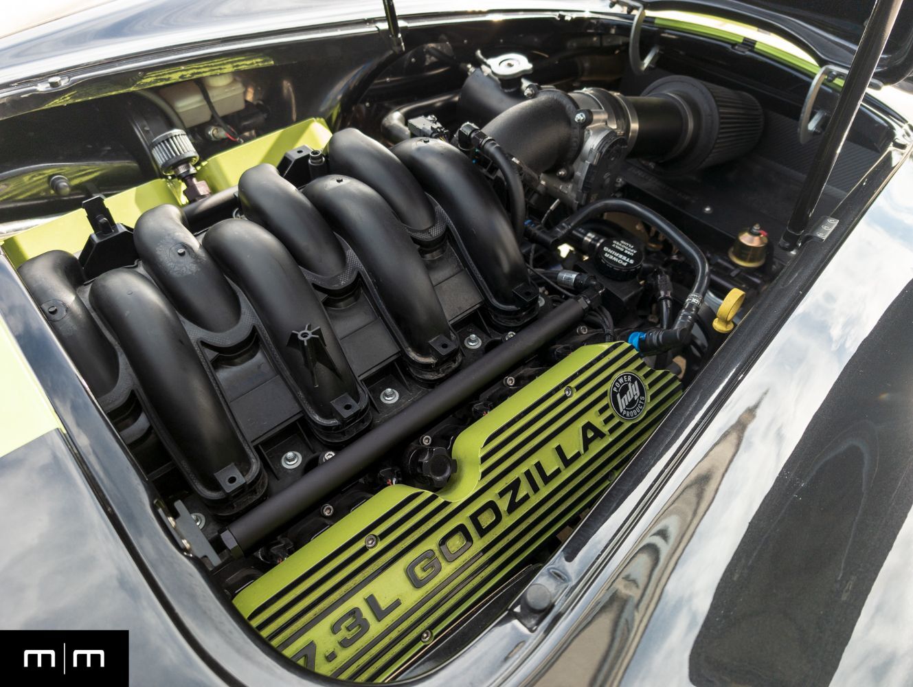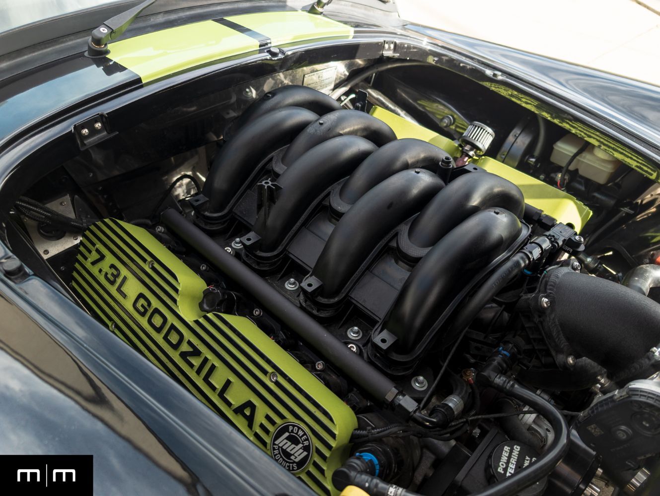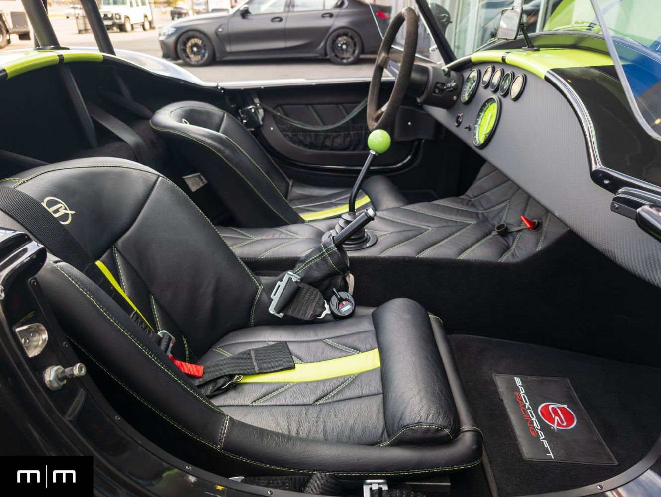 This 2023 Backdraft Racing 1965 Shelby Cobra Replica is a one owner example showing just 3006 miles and finished in black with green stripes, accents, and wheel decals. Purchased new from Naples Motorsports, this example represents one of the most aggressive and well sorted turnkey builds available from Backdraft Racing. Power comes from Ford's 7.3 liter Godzilla V8 producing near 660 horsepower paired with a Tremec manual transmission that delivers an authentic high torque driving experience. The GT4 body distinguishes this example with widened arches, modern aero cues, and a more muscular stance over the traditional Cobra profile. The 7.3L Godzilla V8 is a rare option in Backdraft builds providing immense power and reliability without the complexity of a custom LS or Coyote swap. This example also features a real carbon fiber dashboard, power steering, and push start stop functionality, combining classic design with modern convenience. Originally commissioned and built by Backdraft and delivered through Naples Motorsports, the car was ordered complete rather than owner assembled resulting in professional fitment and factory grade finish quality. This vehicle has been meticulously maintained, garage stored, and driven sparingly. It delivers the classic Cobra experience with modern engineering, head turning design, and turnkey reliability. For more information or to schedule an appointment visit makesmodels.com or call/text us at 801-546-2277.