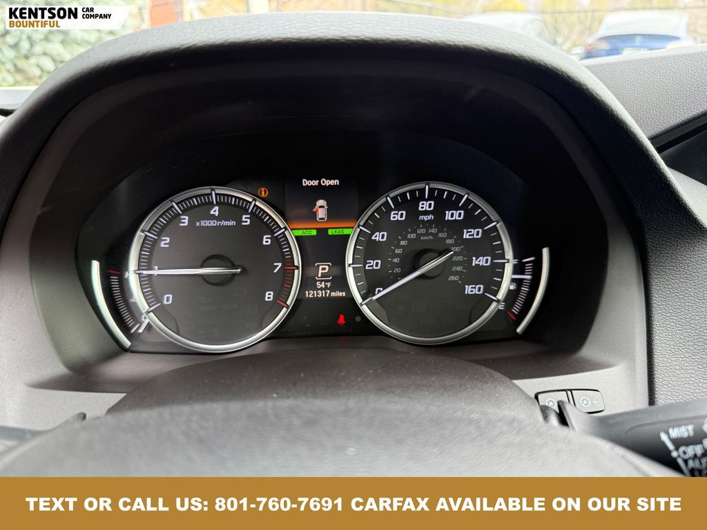 Ebony Leather, Power Liftgate, Power moonroof, 10 Speakers, 3rd row seats: bench, 4-Wheel Disc Brakes, 4.33 Axle Ratio, ABS brakes, Adaptive suspension, Air Conditioning, Alloy wheels, AM/FM radio: SiriusXM, Anti-whiplash front head restraints, Apple CarPlay/Android Auto, Audio memory, Auto High-beam Headlights, Auto tilt-away steering wheel, Auto-dimming Rear-View mirror, Automatic temperature control, Brake assist, Bumpers: body-color, CD player, Compass, Delay-off headlights, Driver door bin, Driver vanity mirror, Dual front impact airbags, Dual front side impact airbags, Electronic Stability Control, Emergency communication system: AcuraLink, Exterior Parking Camera Rear, Four wheel independent suspension, Front anti-roll bar, Front Bucket Seats, Front Center Armrest, Front dual zone A/C, Front reading lights, Garage door transmitter: HomeLink, Heated door mirrors, Heated front seats, Heated Front Sport Seats, HVAC memory, Illuminated entry, Knee airbag, Lane Departure Warning System, Leather steering wheel, Leather-Trimmed Interior, Low tire pressure warning, Memory seat, Navigation System, Occupant sensing airbag, Outside temperature display, Overhead airbag, Overhead console, Panic alarm, Passenger door bin, Passenger vanity mirror, Power door mirrors, Power driver seat, Power passenger seat, Power steering, Power windows, Premium audio system: Acura/ELS Surround, Radio data system, Radio: Acura/ELS Studio Premium Audio System, Rain sensing wipers, Rear air conditioning, Rear anti-roll bar, Rear reading lights, Rear seat center armrest, Rear window defroster, Rear window wiper, Remote keyless entry, Security system, Speed control, Speed-sensing steering, Speed-Sensitive Wipers, Split folding rear seat, Spoiler, Steering wheel memory, Steering wheel mounted audio controls, Tachometer, Telescoping steering wheel, Tilt steering wheel, Traction control, Trip computer, Turn signal indicator mirrors, Variably intermittent wipers, and Wheels: 20'' x 8'' Pewter Gray Metallic 10-Spoke.