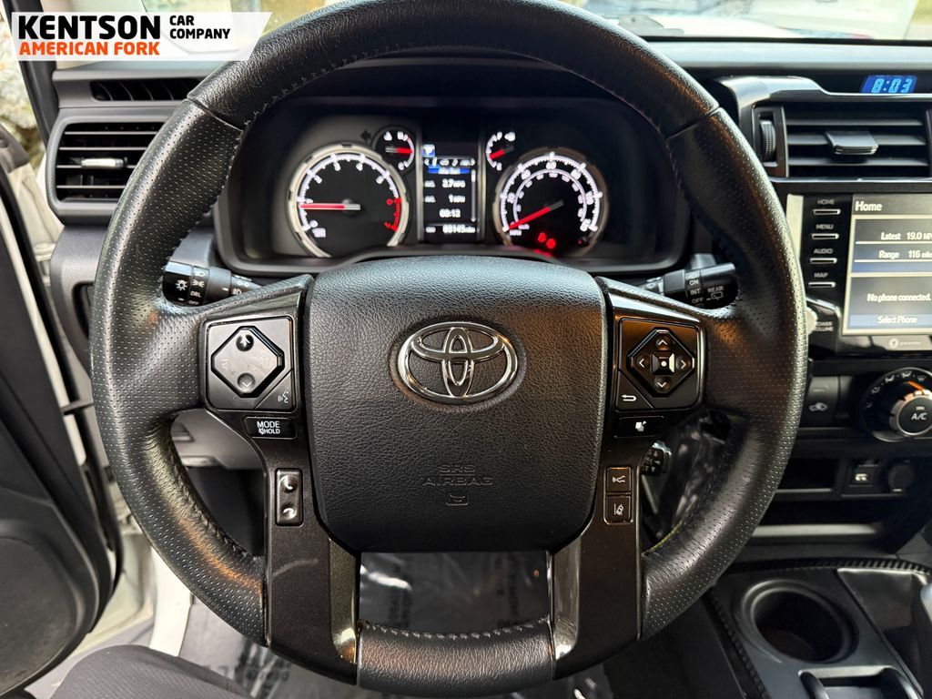 ABS brakes, Active Cruise Control, Alloy wheels, Body Color Heated Mirrors, Compass, Electronic Stability Control, Heated door mirrors, Heated Front Bucket Seats, Heated front seats, Illuminated entry, Low tire pressure warning, Navigation System, Remote keyless entry, Traction control, 3.727 Axle Ratio, 4-Wheel Disc Brakes, 8 Speakers, Air Conditioning, AM/FM radio: SiriusXM, Anti-whiplash front head restraints, Apple CarPlay/Android Auto, Auto High-beam Headlights, Auto-dimming Rear-View mirror, Black Roof Rails, Brake assist, Bumpers: body-color, Driver door bin, Driver vanity mirror, Dual front impact airbags, Dual front side impact airbags, Emergency communication system: Safety Connect with 1-year trial, Exterior Parking Camera Rear, Front anti-roll bar, Front Bucket Seats, Front Center Armrest, Front fog lights, Front reading lights, Front wheel independent suspension, Garage Door Opener, Garage door transmitter: HomeLink, Knee airbag, Leather Shift Knob, Occupant sensing airbag, Outside temperature display, Overhead airbag, Overhead console, Panic alarm, Passenger door bin, Passenger vanity mirror, Power door mirrors, Power driver seat, Power passenger seat, Power steering, Power windows, Radio: Premium Audio w/Dynamic Navigation, Rear anti-roll bar, Rear seat center armrest, Rear window defroster, Rear window wiper, Roof rack: rails only, Security system, Softex Synthetic Leather Seat Trim, Speed control, Speed-sensing steering, Split folding rear seat, Spoiler, Steering wheel mounted audio controls, Tachometer, Telescoping steering wheel, Tilt steering wheel, Trip computer, Turn signal indicator mirrors, Variably intermittent wipers, and Wheels: 17'' x 7.5'' 7-Spoke Unique Off-Road Alloy.