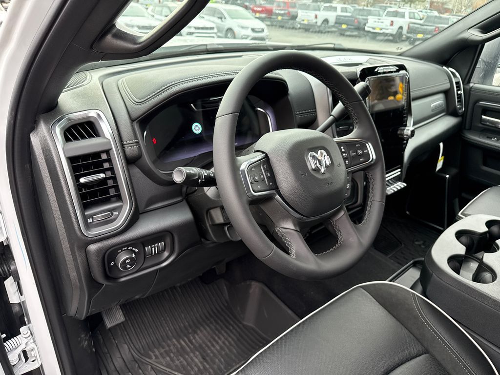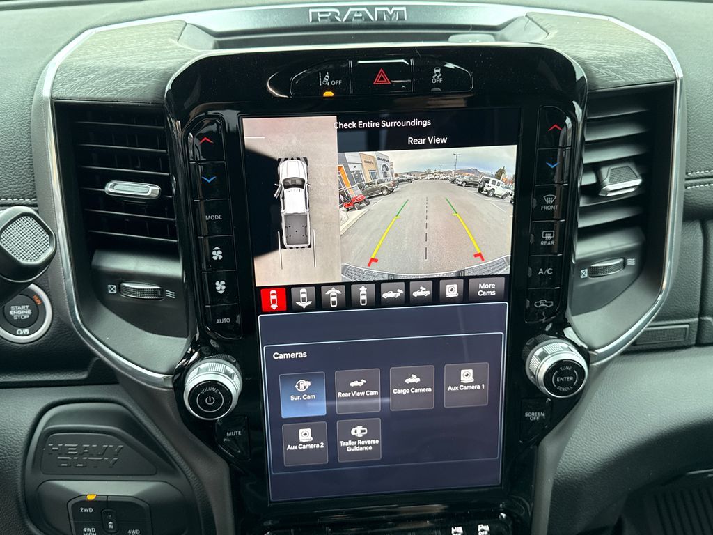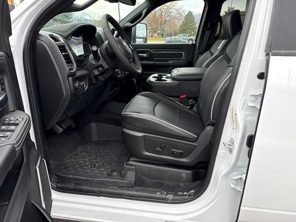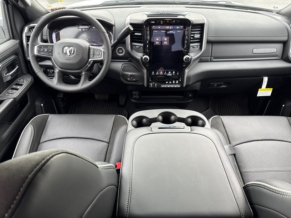 #1 Seat Foam Cushion, 10 Speakers, 115V Auxiliary Rear Power Outlet, 2 Way Rear Headrest Seat, 2nd Row in Floor Storage Bins, 4 Way Front Headrests, 4-Wheel Disc Brakes, 4G LTE Wi-Fi Hot Spot, 50 Gallon Fuel Tank, 5th Wheel/Gooseneck Towing Prep Group, ABS brakes, Active Lane Management System, Adaptive Steering System, Air Conditioning, Alexa Built-in, Alloy wheels, AM/FM radio: SiriusXM with 360L, Apple CarPlay, Apple CarPlay/Android Auto, Auto Adjust in Reverse Exterior Mirrors, Auto Dimming Exterior Passenger Mirror, Auto High Beam Headlamp Control, Auto Power-Folding Mirrors, Auto-Dimming Exterior Mirrors, Auto-dimming Rear-View mirror, Automatic temperature control, Bed Convenience Group, Black Wheel Center Hub, Brake assist, Bright Front Bumper, Bright Rear Bumper, Bumpers: body-color, Center Stop Lamp with Cargo View Camera, Chrome Bumper Package, Chrome Exterior Mirrors, Cold Weather Group, Compass, Connected Travel and Traffic Services, Connectivity - US/Canada, Delay-off headlights, Disassociated Touchscreen Display, Driver door bin, Driver vanity mirror, Drowsy Driver Detection, Dual front impact airbags, Dual front side impact airbags, Electronic Stability Control, Emergency Vehicle Alert System (EVAS), Engine Block Heater, Exterior Mirrors Courtesy Lamps, Exterior Mirrors with Heating Element, Exterior Mirrors with Memory, Exterior Mirrors with Supplemental Signals, Foam Bottle Insert (door Trim Panel), Folding Flat Load Floor Storage, Forward and Reverse Utility Lights, Front anti-roll bar, Front Center Armrest w/Storage, Front dual zone A/C, Front fog lights, Front License Plate Bracket, Front reading lights, Front Seat Back Map Pockets, Fully automatic headlights, Garage door transmitter, Global Telematics Box Module, Google Android Auto, GPS Antenna Input, GPS Navigation, HD Radio, Heated door mirrors, Heated Front Seats, Heated front seats, Heated Steering Wheel, Heated steering wheel, High Back Seats, Illuminated entry, Integrated Voice Command with Bluetooth, Laramie Level 1 Equipment Group, Leather Trim 40/20/40 Bench Seat, LED Bed Lighting, Low tire pressure warning, Manufacturer's Statement of Origin, Mirror Running Lights, MOPAR Front and Rear Rubber Floor Mats, MOPAR Spray in Bedliner, MOPAR Trailer Camera Wiring with No Camera, MOPAR Winter Front Grille Cover, Navigation System, Occupant sensing airbag, Off-Road Information Pages, Outside temperature display, Overhead airbag, Overhead console, Panic alarm, ParkView Rear Back-Up Camera, Passenger door bin, Passenger vanity mirror, Power 2-Way Driver Lumbar Adjust, Power 2-Way Passenger Lumbar Adjust, Power Adjust 8-Way Driver Seat, Power Adjust 8-Way Front Passenger Seat, Power Adjust Mirrors, Power Adjustable Pedals with Memory, Power door mirrors, Power driver seat, Power Heat Fold Memory Telescopic Mirrors, Power passenger seat, Power steering, Power Telescoping Mirrors, Power windows, Power-Adjustable Convex Aux Mirrors, Quick Order Package 24H Laramie, Radio data system, Radio: Uconnect 5 Navigation with 12.0'' Display, Rain Sensitive Windshield Wipers, Rear 60/40 Folding Seat, Rear reading lights, Rear seat center armrest, Rear step bumper, Rear window defroster, Remote keyless entry, Remote Tailgate Release, Safety Group, Security system, Selectable Tire Fill Alert, SiriusXM Radio Service, SiriusXM with 360L, Speed control, Split folding rear seat, Steering wheel mounted audio controls, Surround View Camera System, Tachometer, Tilt steering wheel, Towing Technology Group, Traction control, Traffic Sign Recognition, Trailer Reverse Guidance, Trailer Tire Pressure Monitoring System, Trailer Tow Pages, Trip computer, Turn signal indicator mirrors, Variably intermittent wipers, Voltmeter, Wheels: 18'' x 8.0'' Diamond Cut Aluminum with Black Pt Pockets. Price includes: $1000 - 2026 National Bonus Cash . Exp. 04/30/2026