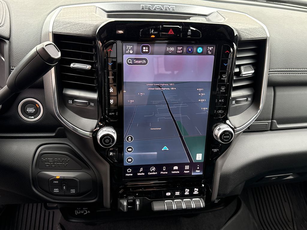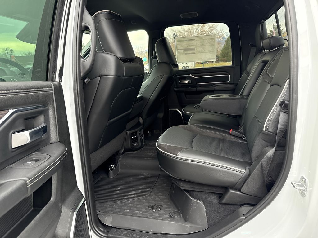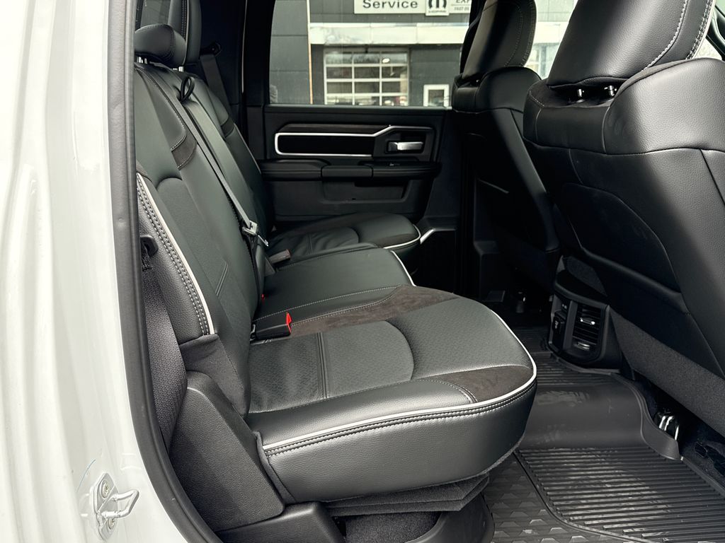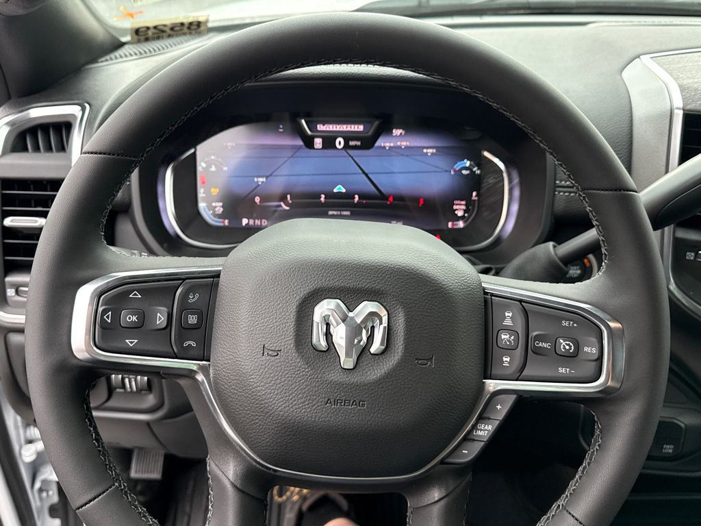 #1 Seat Foam Cushion, 10 Speakers, 115V Auxiliary Rear Power Outlet, 2 Way Rear Headrest Seat, 2nd Row in Floor Storage Bins, 4 Way Front Headrests, 4-Wheel Disc Brakes, 4G LTE Wi-Fi Hot Spot, 50 Gallon Fuel Tank, 5th Wheel/Gooseneck Towing Prep Group, ABS brakes, Active Lane Management System, Adaptive Steering System, Air Conditioning, Alexa Built-in, Alloy wheels, AM/FM radio: SiriusXM with 360L, Apple CarPlay, Apple CarPlay/Android Auto, Auto Adjust in Reverse Exterior Mirrors, Auto Dimming Exterior Passenger Mirror, Auto High Beam Headlamp Control, Auto Power-Folding Mirrors, Auto-Dimming Exterior Mirrors, Auto-dimming Rear-View mirror, Automatic temperature control, Bed Convenience Group, Black Wheel Center Hub, Brake assist, Bright Front Bumper, Bright Rear Bumper, Bumpers: body-color, Center Stop Lamp with Cargo View Camera, Chrome Bumper Package, Chrome Exterior Mirrors, Cold Weather Group, Compass, Connected Travel and Traffic Services, Connectivity - US/Canada, Delay-off headlights, Disassociated Touchscreen Display, Driver door bin, Driver vanity mirror, Drowsy Driver Detection, Dual front impact airbags, Dual front side impact airbags, Electronic Stability Control, Emergency Vehicle Alert System (EVAS), Engine Block Heater, Exterior Mirrors Courtesy Lamps, Exterior Mirrors with Heating Element, Exterior Mirrors with Memory, Exterior Mirrors with Supplemental Signals, Foam Bottle Insert (door Trim Panel), Folding Flat Load Floor Storage, Forward and Reverse Utility Lights, Front anti-roll bar, Front Center Armrest w/Storage, Front dual zone A/C, Front fog lights, Front License Plate Bracket, Front reading lights, Front Seat Back Map Pockets, Fully automatic headlights, Garage door transmitter, Global Telematics Box Module, Google Android Auto, GPS Antenna Input, GPS Navigation, HD Radio, Heated door mirrors, Heated Front Seats, Heated front seats, Heated Steering Wheel, Heated steering wheel, High Back Seats, Illuminated entry, Integrated Voice Command with Bluetooth, Laramie Level 1 Equipment Group, Leather Trim 40/20/40 Bench Seat, LED Bed Lighting, Low tire pressure warning, Manufacturer's Statement of Origin, Mirror Running Lights, MOPAR Front and Rear Rubber Floor Mats, MOPAR Spray in Bedliner, MOPAR Trailer Camera Wiring with No Camera, MOPAR Winter Front Grille Cover, Navigation System, Occupant sensing airbag, Off-Road Information Pages, Outside temperature display, Overhead airbag, Overhead console, Panic alarm, ParkView Rear Back-Up Camera, Passenger door bin, Passenger vanity mirror, Power 2-Way Driver Lumbar Adjust, Power 2-Way Passenger Lumbar Adjust, Power Adjust 8-Way Driver Seat, Power Adjust 8-Way Front Passenger Seat, Power Adjust Mirrors, Power Adjustable Pedals with Memory, Power door mirrors, Power driver seat, Power Heat Fold Memory Telescopic Mirrors, Power passenger seat, Power steering, Power Telescoping Mirrors, Power windows, Power-Adjustable Convex Aux Mirrors, Quick Order Package 24H Laramie, Radio data system, Radio: Uconnect 5 Navigation with 12.0'' Display, Rain Sensitive Windshield Wipers, Rear 60/40 Folding Seat, Rear reading lights, Rear seat center armrest, Rear step bumper, Rear window defroster, Remote keyless entry, Remote Tailgate Release, Safety Group, Security system, Selectable Tire Fill Alert, SiriusXM Radio Service, SiriusXM with 360L, Speed control, Split folding rear seat, Steering wheel mounted audio controls, Surround View Camera System, Tachometer, Tilt steering wheel, Towing Technology Group, Traction control, Traffic Sign Recognition, Trailer Reverse Guidance, Trailer Tire Pressure Monitoring System, Trailer Tow Pages, Trip computer, Turn signal indicator mirrors, Variably intermittent wipers, Voltmeter, Wheels: 18'' x 8.0'' Diamond Cut Aluminum with Black Pt Pockets. Price includes: $1000 - 2026 National Bonus Cash . Exp. 04/30/2026