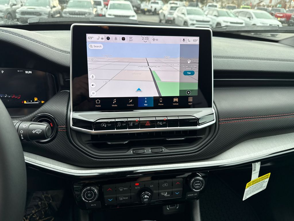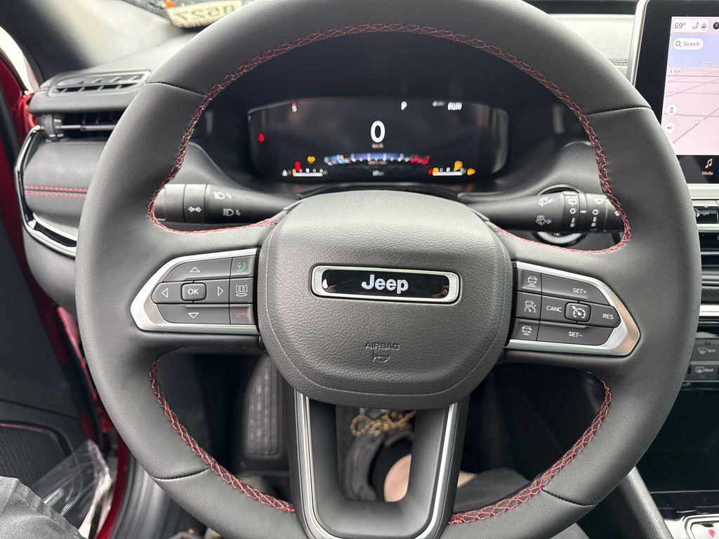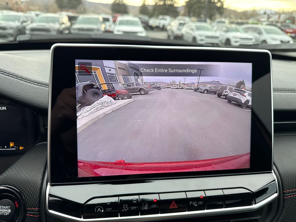 4WD, 10.1'' Touchscreen Display, 4-Wheel Disc Brakes, 4.398 Final Drive Ratio, 4G LTE Wi-Fi Hot Spot, 6 Speakers, ABS brakes, Air Conditioning, Alexa Built-In, Alloy wheels, AM/FM radio: SiriusXM, Auto High-beam Headlights, Auto-dimming Rear-View mirror, Automatic temperature control, Brake assist, Bumpers: body-color, Cluster 10.25'' TFT Color Display, Compass, Connected Travel and Traffic Services, Delay-off headlights, Driver door bin, Driver vanity mirror, Dual front impact airbags, Dual front side impact airbags, Electronic Stability Control, Emergency communication system: SiriusXM Guardian, Four wheel independent suspension, Front anti-roll bar, Front Bucket Seats, Front Center Armrest w/Storage, Front dual zone A/C, Front fog lights, Front License Plate Bracket, Front reading lights, Fully automatic headlights, Global Telematics Box Module, GPS Navigation, HD Radio, Heated door mirrors, Heated front seats, Heated steering wheel, Illuminated entry, Integrated Voice Command with Bluetooth, Knee airbag, Leather Shift Knob, Leather steering wheel, Low tire pressure warning, Occupant sensing airbag, Outside temperature display, Overhead airbag, Overhead console, Panic alarm, ParkView Rear Back-Up Camera, Passenger door bin, Passenger vanity mirror, Power door mirrors, Power driver seat, Power Front/Fixed Rear Full Sunroof, Power Liftgate, Power steering, Power windows, Premium Alpine Speaker System, Premium audio system: UConnect 5, Premium Cloth/Leather Trim Bucket Seats, Quick Order Package 29E, Radio: Uconnect 5 with 10.1'' Display, Rain sensing wipers, Rear anti-roll bar, Rear seat center armrest, Rear window defroster, Rear window wiper, Remote keyless entry, Security system, SiriusXM Guardian - Included Trail (B), SiriusXM Radio Service, SiriusXM with 360L, Speed control, Split folding rear seat, Spoiler, Steering wheel mounted audio controls, Sun, Sound and Navigation Group, Tachometer, Telescoping steering wheel, Tilt steering wheel, Traction control, Trip computer, Turn signal indicator mirrors, Variably intermittent wipers, Wheels: 17'' x 6.5'' Painted Black Aluminum, 4WD.