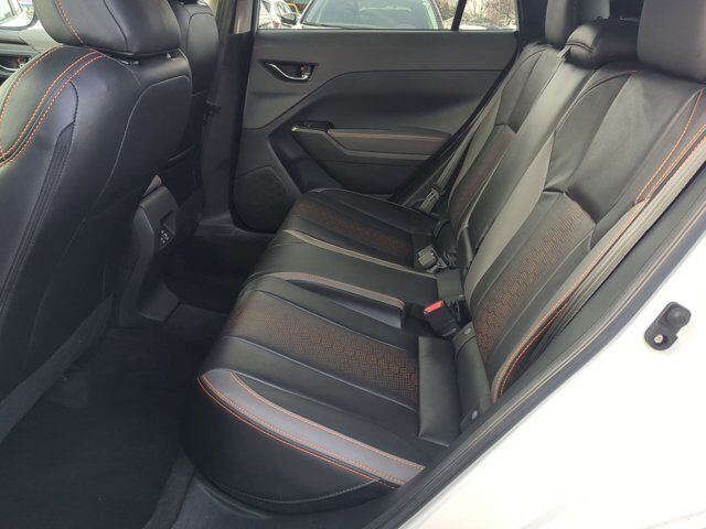 H/K SPEAKER SYSTEM & POWER MOONROOF & NAVIGATION -inc: Power Moonroof tilt up and internal retracting w/auto-open/close and laminated UV and dark tint moonroof glass Radio: Subaru 11.6 Multimedia Nav System AM/FM stereo HD Radio multi-touch gesture high resolution display screen voice activated controls and navigation Bluetooth audio streaming and hands-free phone connectivity Bluetooth hands-free SMS text messaging connectivity TomTom navigation software w/what3words iPod control capability SiriusXM w/360L required after) SiriusXM Travel Link (subscription required) required after) SiriusXM Traffic (subscription required) required after) smartphone integration: Android Auto and Apple CarPlay w/full screen view and wireless connection USB and Over The Air (OTA) audio system update USB/Map Over The Air (MOTA) s) TomTom navigation system update steering wheel audio,ALL-WEATHER FLOOR LINERS -inc: Part number J501SFN000,CRYSTAL WHITE PEARL,BLACK LEATHER-TRIMMED UPHOLSTERY -inc: orange stitching,CROSSTREK MIRROR PACKAGE -inc: Auto-Dimming Mirror w/Compass & HomeLink Part number H501SFN000 Auto-Dimming Exterior Mirror w/Approach Light Part number J201SFN001,REAR BUMPER COVER -inc: Part number E771SFN000,All Wheel Drive,Power Steering,ABS,4-Wheel Disc Brakes,Brake Assist,Brake Actuated Limited Slip Differential,Aluminum Wheels,Tires - Front Performance,Tires - Rear Performance,Temporary Spare Tire,Heated Mirrors,Power Mirror(s),Integrated Turn Signal Mirrors,Rear Defrost,Privacy Glass,Intermittent Wipers,Variable Speed Intermittent Wipers,Rear Spoiler,Power Door Locks,Daytime Running Lights,Automatic Headlights,Headlights-Auto-Leveling,LED Headlights,Automatic Highbeams,Fog Lamps,AM/FM Stereo,Satellite Radio,MP3 Capability,Bluetooth Connection,Auxiliary Audio Input,HD Radio,Smart Device Integration,Requires Subscription,MP3 Capability,Steering Wheel Audio Controls,Bluetooth Connection,Power Driver Seat,Bucket Seats,Heated Front Seat(s),Driver Adjustable Lumbar,Pass-Through Rear Seat,Rear Bench Seat,Adjustable Steering Wheel,Trip Computer,Power Windows,WiFi Hotspot,Leather Steering Wheel,Remote Trunk Release,Keyless Entry,Power Door Locks,Keyless Start,Keyless Entry,Power Door Locks,Cruise Control,Adaptive Cruise Control,Climate Control,Multi-Zone A/C,A/C,Leather Seats,Driver Vanity Mirror,Passenger Vanity Mirror,Driver Illuminated Vanity Mirror,Passenger Illuminated Visor Mirror,Floor Mats,Cargo Shade,Keyless Start,Smart Device Integration,Smart Device Integration,Requires Subscription,Power Windows,Power Door Locks,Trip Computer,Security System,Immobilizer,Cruise Control Steering Assist,Traction Control,Stability Control,Traction Control,Front Side Air Bag,Lane Departure Warning,Lane Keeping Assist,Lane Departure Warning,Front Collision Mitigation,Driver Monitoring,Telematics,Requires Subscription,Blind Spot Monitor,Cross-Traffic Alert,Rear Collision Mitigation,Evasion Assist,Tire Pressure Monitor,Driver Air Bag,Passenger Air Bag,Front Head Air Bag,Rear Head Air Bag,Passenger Air Bag Sensor,Knee Air Bag,Child Safety Locks,Back-Up Camera