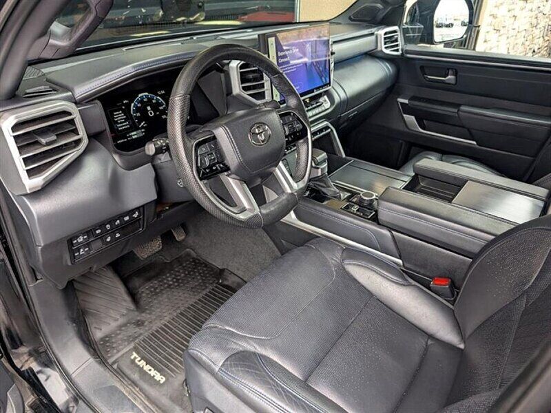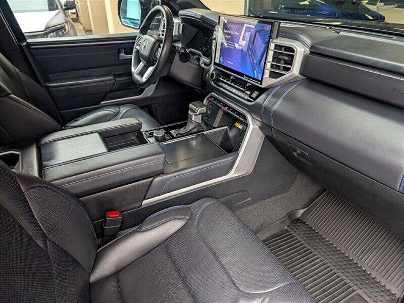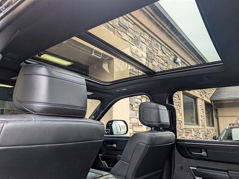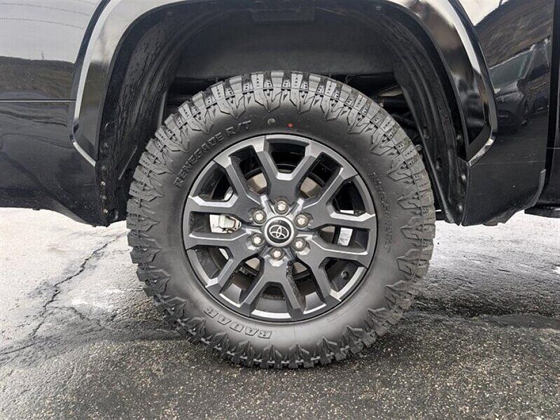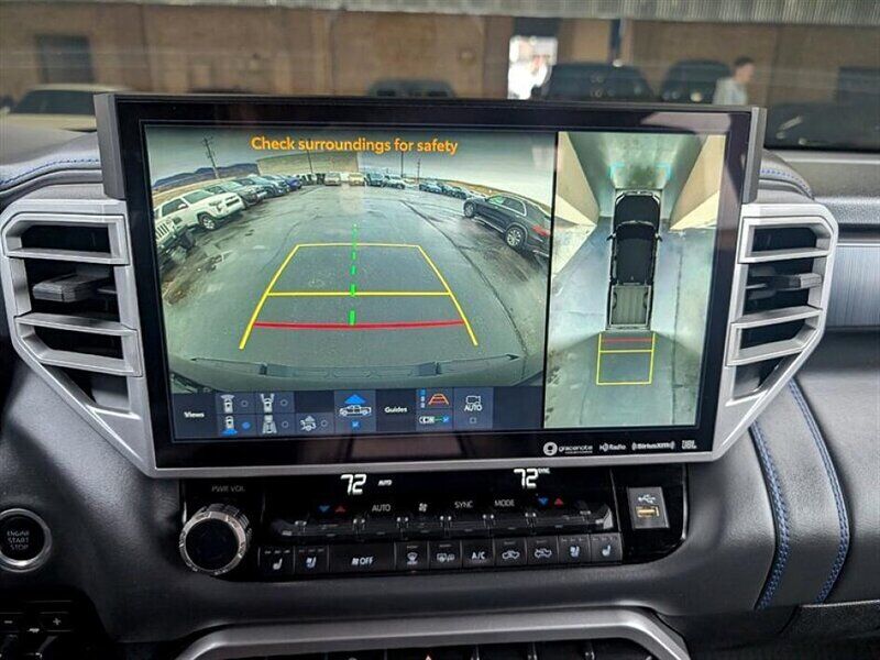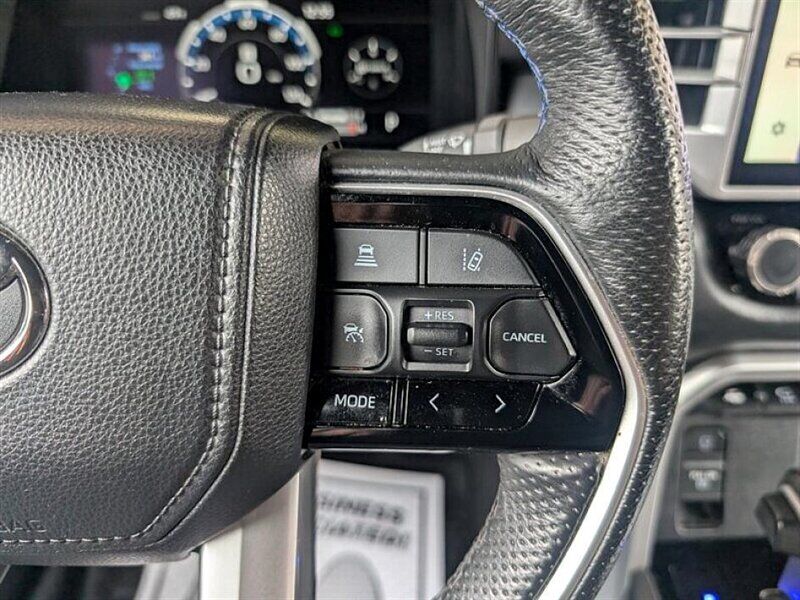INSTALLED FEATURES: Air filtration, Front air conditioning: automatic climate control, Front air conditioning zones: dual, Rear vents: second row, Airbag deactivation: occupant sensing passenger, Front airbags: dual, Knee airbags: dual front, Side airbags: front, Side curtain airbags: front / rear, Antenna type: diversity / mast, Auxiliary audio input: Bluetooth / iPod/iPhone / USB, Premium brand: JBL, Radio: AM/FM / HD radio / touch screen display / voice operated, Radio data system, Satellite radio: SiriusXM, Speed sensitive volume control, Subwoofer: 1, Total speakers: 11, ABS: 4-wheel, Braking assist, Electronic brakeforce distribution, Electronic parking brake: auto off, Emergency braking preparation, Front brake type: ventilated disc, Power brakes, Rear brake type: ventilated disc, Armrests: rear center with cupholders / rear folding, Center console trim: simulated alloy, Dash trim: simulated alloy, Door trim: simulated alloy, Floor material: carpet, Heated steering wheel, Interior accents: metallic-tone, Shift knob trim: leather / simulated alloy, Steering wheel trim: leather, Adaptive cruise control, Adaptive stop and go cruise control: semi-automatic, Ambient lighting, Assist handle: front / rear, Autonomous lane guidance: lane centering, Center console: front console with armrest and storage / illuminated, Courtesy lights: door, Cupholders: front / rear, Easy entry: power driver seat / power steering wheel, Footwell lights, Memorized settings: 2 driver / driver seat / side mirrors / steering wheel, Multi-function remote: panic alarm / proximity entry system / vehicle and key memory, One-touch windows: 4, Overhead console: front, Power outlet(s): 115V cargo area / 115V rear / 12V front / USB front / USB rear / USB-C front / USB-C rear, Power steering: variable/speed-proportional, Power windows: lockout button, Push-button start, Reading lights: front / rear, Rearview mirror: camera-based, Steering wheel: power tilt and telescopic, Steering wheel mounted controls: audio / cruise control / multi-function / phone / voice control, Storage: accessory hook / door pockets / front seatback / sunglasses holder / under rear seats, Sun visors, Sunshade: side window, Universal remote transmitter: Homelink - garage door opener, Vanity mirrors: dual illuminating, Wireless charging station: front, Active grille shutters, Body side moldings: black, Bumper detail: rear step, Door handle color: body-color, Fender lip moldings: black, Front bumper color: black, Grille color: smoked chrome, Mirror color: body-color, Pickup bed light: LED, Rear bumper color: body-color, Rocker panel color: body-color, Tailgate: bedside/taillight release button / lift assist / power locking / removable, Window trim: black, Connected in-car apps: Google POIs / Google search, Infotainment: Toyota Audio Multimedia, Infotainment screen size: 14 in., Smartphone integration: wireless Android Auto / wireless Apple CarPlay, Clock, Compass, Customizable instrument cluster, Digital odometer, External temperature display, Fuel economy display: MPG / range, Gauge: oil pressure / tachometer, Instrument cluster screen size: 12.3 in., Multi-function display, Trip odometer, Warnings and reminders: coolant temperature warning / low battery / low fuel level / low oil pressure / maintenance due, Daytime running lights: LED, Exterior entry lights: approach lamps, Front fog lights: LED, Headlights: auto delay off / auto high beam dimmer / auto on/off / LED / self-leveling / wiper activated, Taillights: LED, Side mirror adjustments: manual folding / power / reverse gear tilt, Side mirrors: auto-dimming / heated / integrated turn signals, 4WD selector: electronic hi-lo, 4WD type: part time, Auto start/stop, Battery: maintenance-free, Battery saver, Drive mode selector, Moonroof / Sunroof: anti-trapping / one-touch open/close / power panoramic / power sunshade / tilt/slide, Active head restraints: dual front, Automatic emergency braking: front / front pedestrian / intersection/junction turn / rear / rear pedestrian, Blind spot safety: sensor/alert, Camera system: surround view, Check rear seat reminder, Child safety door locks, Child seat anchors: LATCH system, Cross traffic alert: rear, Impact sensor: door unlock / fuel cut-off / post-collision safety system, Lane deviation sensors, Lane keeping assist, Parking sensors: front / rear, Pre-collision warning system: audible warning / intersection/junction turn / pedestrian detection / visual warning, Rearview monitor: in dash, Safety brake pedal system, Traffic sign recognition, Emergency locking retractors: front / rear, Front seatbelts: 3-point, Rear seatbelts: 3-point, Seatbelt force limiters: front / rear, Seatbelt pretensioners: front / rear, Seatbelt warning sensor: front, Driver seat: heated / ventilated, Driver seat power adjustments: 10 / 4-way power lumbar / height / reclining, Front headrests: 2 / adjustable, Front seat type: bucket, Passenger seat: heated / ventilated, Passenger seat power adjustments: 10 / 4-way power lumbar / height / reclining, Rear headrests: 3 / adjustable / foldable, Rear seat: heated / ventilated, Rear seat folding, Rear seat type: 60-40 split bench, Upholstery: leather-trimmed, Anti-theft system: alarm / vehicle immobilizer, Power door locks: anti-lockout / auto-locking, Hill holder control, Stability control, Traction control, Trailer stability control, Front shock type: twin-tube gas, Front spring type: coil, Front stabilizer bar, Front struts, Front suspension classification: independent, Front suspension type: double wishbone, Rear shock type: twin-tube gas, Rear spring type: coil, Rear suspension classification: solid live axle, Rear suspension type: multi-link, Driver assistance app: roadside assistance, Electronic messaging assistance: voice operated / with read function, Hands-free phone call integration: voice operated, Navigation data: real time traffic / send destination to vehicle, Navigation system: over-the-air map updates (OTA) / touch scree