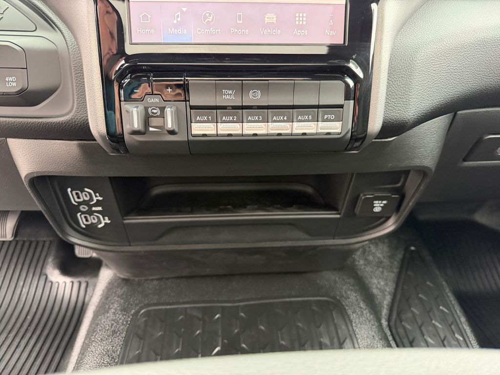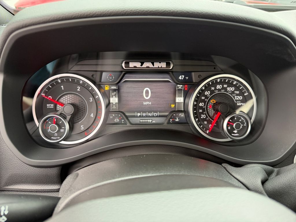 Forward Collision Warning-Plus,Uconnect w/Bluetooth handsfree wireless device connectivity,Apple CarPlay/Android Auto smart device wireless mirroring,Cloth front seat upholstery,Driver seat with 4-way directional controls,Front passenger seat with 4-way directional controls,8.4 inch primary display,Pedestrian/Cyclist Emergency Braking,4G LTE Wi-Fi Hot Spot mobile hotspot internet access,Adaptive cruise control with stop and go,Cruise control with steering wheel mounted controls,Primary monitor touchscreen,Part-time 4WD,Cummins 6.7L I-6 diesel direct injection, VVT intercooled turbo, diesel, engine with 360HP,Cummins 6.7L I-6,Push-button,Bluetooth wireless audio streaming,Following distance alert,Keyless Go with push button start,Sentry Key immobilizer,RAM Connect vehicle tracker,RAM Connect vehicle integrated emergency SOS system,Trailer sway control,External memory control,Internet radio capability,5 USB ports,Electronic stability control system,LED front fog lights,Active grille shutters,RAM Connect App mobile app access,Illuminated front beverage holders,Gauge cluster display size: 3.50,Manual tilting steering wheel,Chrome hub wheel covers,Manual extendable trailer mirrors,Upfitter switches,18 x 8-inch front and rear polished aluminum wheels,Over the air updates,LT275/70SR18 AT BSW 614 RPM front and rear tires,2 airbags,Driver front impact airbag,Passenger front impact airbag,Airbag occupancy sensor,Intercooled turbo,TorqueFlite 8-speed automatic,Selectable mode transmission,Manual climate control,N95 Bio cabin air filter,Supplemental cabin heater,Exterior temperature display