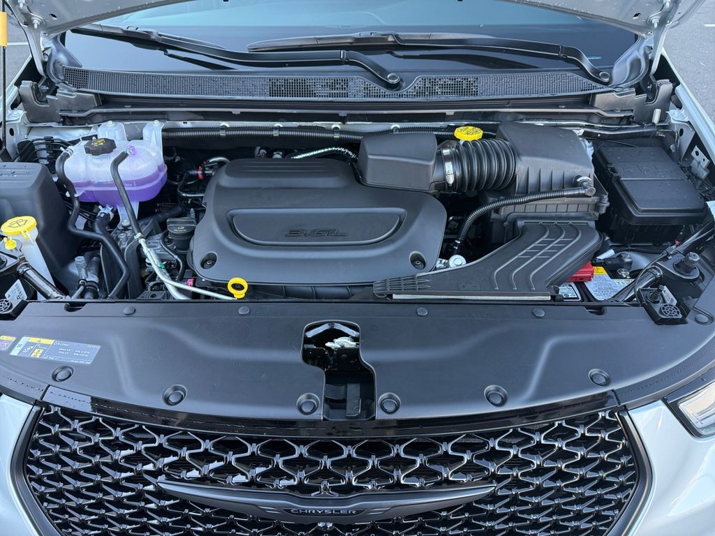 S Appearance Package: Black Day Light Opening Moldings; Caprice Leatherette with S Logo; Piano Black Interior Accents; Premium Fascia Upper/lower Grille with Black Surround; 245/50R20 BSW AS Self-Sealing Tires; Black Stow 'N Place Roof Rack; Premium Rear Fascia Black; 20" X 7.5" S-Model Aluminum Wheels Design 1; Anodized Ink Badging; S Badge,Quick Order Package 27L,Silver Mist Clearcoat,Power liftgate rear cargo door,Blind Spot Detection,Keyfob remote start,Heated steering wheel,Bluetooth handsfree wireless device connectivity,Apple CarPlay/Android Auto smart device wireless mirroring,Heated driver and front passenger seats,10 USB ports,Leatherette front seat upholstery,Driver seat with 8-way directional controls,Front passenger seat with 4-way directional controls,Keyfob trunk control,Forward Collision Warning-Plus,Pedestrian impact prevention,4G LTE Wi-Fi Hot Spot mobile hotspot internet access,ParkView rear camera with washer,Lane Departure Warning-Plus,Adaptive cruise control with stop and go,Brake assist system,Cruise control with steering wheel mounted controls,Primary monitor touchscreen,Fixed third-row seats,Rear Cross Path Detection collision warning,Driver seat power reclining, lumbar support, cushion tilt, fore/aft control and height adjustable control,Automatic full-time AWD,Pentastar 3.6L V-6 DOHC, VVT variable valve control, regular unleaded, engine with cylinder deactivation and 287HP,Pentastar 3.6L V-6 DOHC,Keyless Enter 'n Go with hands-free access and push button start,Smart device remote start,Push-button,Automatic brake hold,Bluetooth wireless audio streaming,Manual fold-into-floor folding second-row seats,Dual-zone front climate control,Rear climate control system with separate controls,Voice-activated climate control,Stow 'n Go manual fold into floor third-row seat,Sentry Key immobilizer,Vehicle tracker,Active noise cancellation,Chrysler Connect vehicle integrated emergency SOS system,Uconnect 5 external memory control,Digital/analog instrumentation display,Electronic stability control system,Hill Start Assist,Automatic climate control,Rear Seat Reminder Alert rear seat check warning,Manual rear side window sunblinds,ParkSense with Stop rear parking sensors,LED daytime running lights