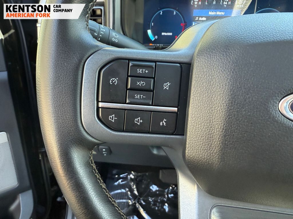 Black Appearance Package (6'' Ebony Black Angular Running Boards, Black Painted Front Grille Surround, and Ebony Black Painted Mirror Caps), ABS brakes, Alloy wheels, Compass, Electronic Stability Control, Front dual zone A/C, Heated door mirrors, Heated front seats, Heated rear seats, Illuminated entry, Low tire pressure warning, Navigation System, Remote keyless entry, Traction control, 190 Amp Alternator, 3.73 Axle Ratio, 4-Wheel Disc Brakes, 8 Speakers, Adjustable pedals, Air Conditioning, AM/FM radio: SiriusXM with 360L, Auto High-beam Headlights, Auto-dimming Rear-View mirror, Automatic temperature control, Brake assist, Bumpers: chrome, Delay-off headlights, Driver door bin, Driver vanity mirror, Dual front impact airbags, Dual front side impact airbags, Emergency communication system: SYNC 4 911 Assist, Flow-Through Console, Front ActiveX Trimmed 40/Console/40 Seats, Front anti-roll bar, Front Bucket Seats, Front Center Armrest, Front fog lights, Front reading lights, Fully automatic headlights, Garage door transmitter, Heated steering wheel, Memory seat, Outside temperature display, Overhead airbag, Overhead console, Panic alarm, Passenger door bin, Passenger vanity mirror, Pedal memory, Power door mirrors, Power driver seat, Power passenger seat, Power steering, Power windows, Privacy Glass, Rain sensing wipers, Rear Parking Sensors, Rear reading lights, Rear seat center armrest, Rear step bumper, Rear window defroster, Security system, Speed control, Split folding rear seat, Steering wheel mounted audio controls, Tachometer, Telescoping steering wheel, Tilt steering wheel, Trip computer, Turn signal indicator mirrors, Variably intermittent wipers, and Ventilated front seats.