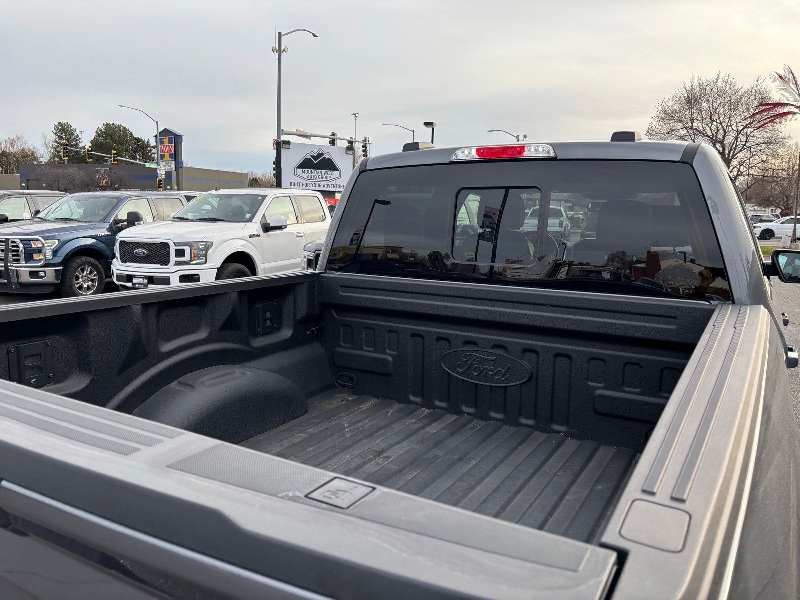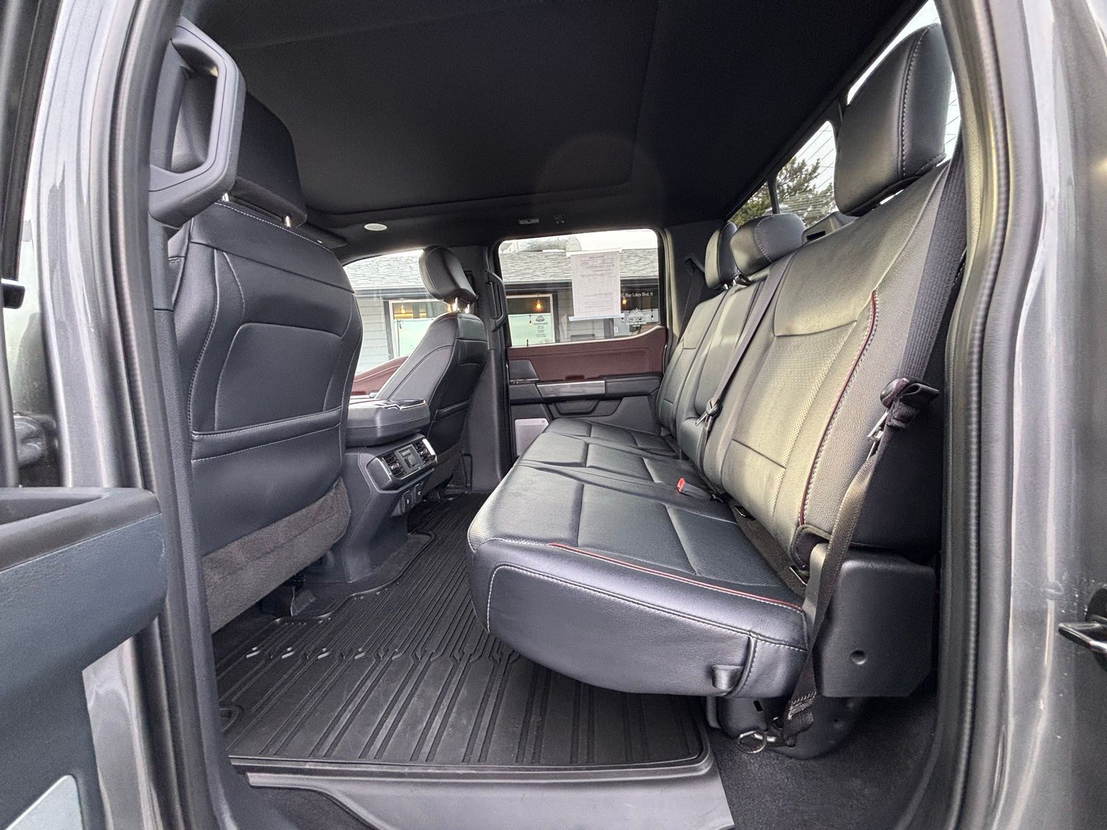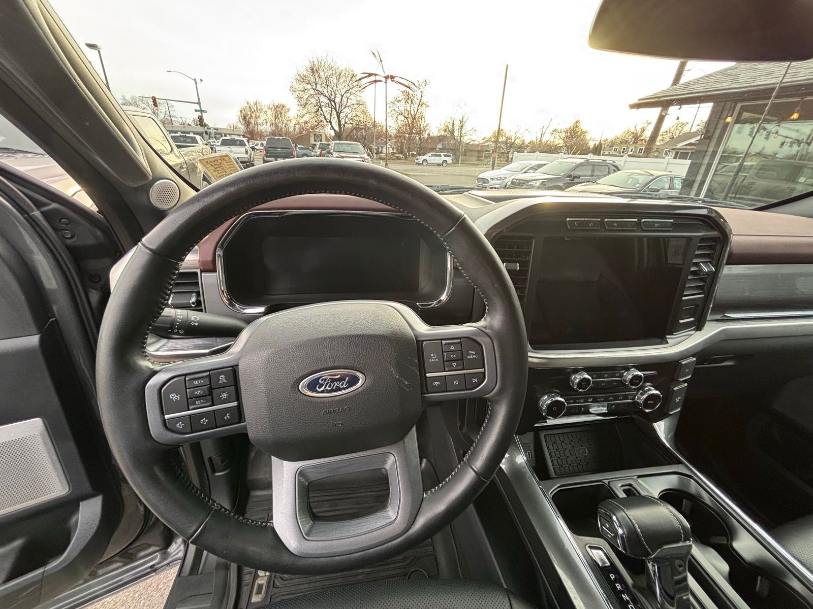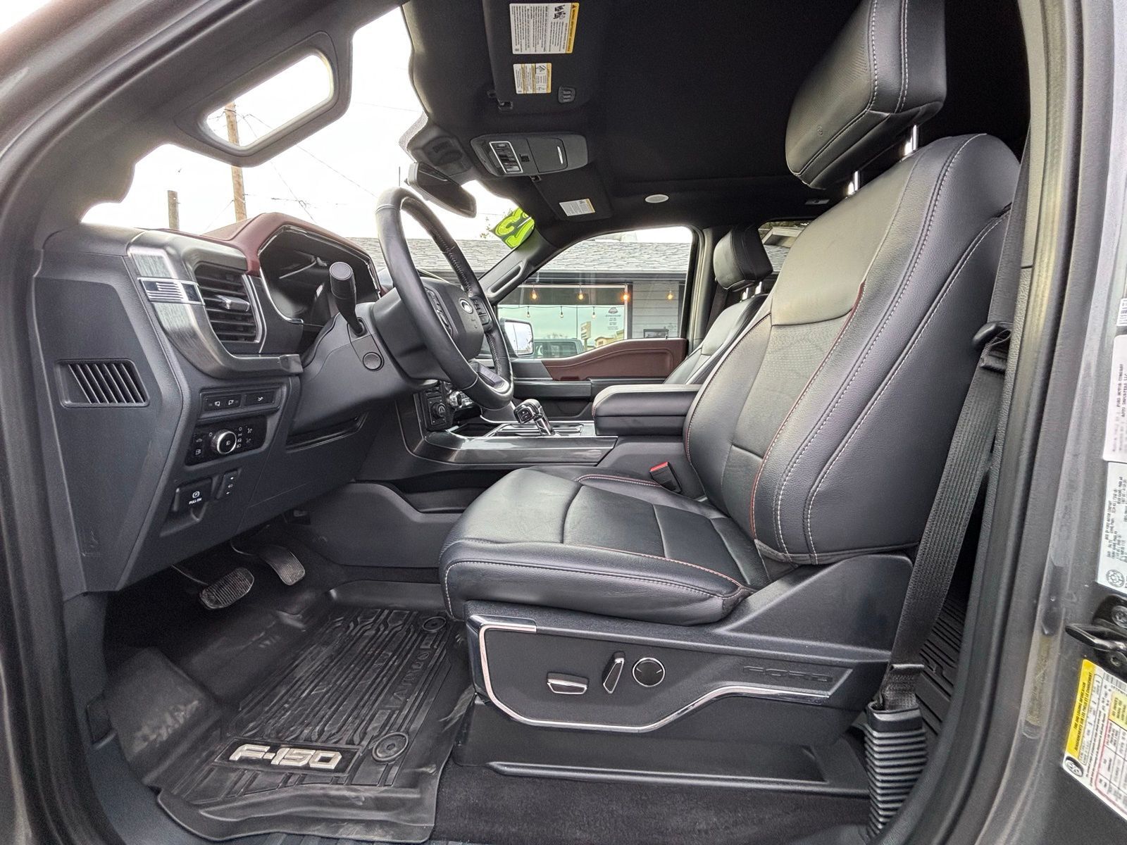 4WD 23/23 City/Highway MPG 10-Speed Automatic 4D SuperCrew Clean CARFAX. 3.5L PowerBoost Full-Hybrid V6 3.5L PowerBoost Full-Hybrid V6, 4WD, 2nd Row Heated Seats, ABS brakes, Alloy wheels, Compass, Connected Built-In Navigation, Electronic Stability Control, Equipment Group 502A High, Evasive Steering Assist, Ford Co-Pilot360 Assist 2.0, Front dual zone A/C, Heated door mirrors, Heated front seats, Illuminated entry, Intelligent Adaptive Cruise Control w/Stop & Go, Intersection Assist, LED Projector w/Dynamic Bending Headlamps, Low tire pressure warning, Power Tilt/Telescoping Steering Column w/Memory, Rain-Sensing Wipers, Remote keyless entry, Speed Sign Recognition, Traction control, Twin Panel Moonroof, Wheels: 20'' Chrome-Like PVD, Wireless Charging Pad. F-150 Gray 2023 2023 Ford F-150 Lariat Lariat Ford