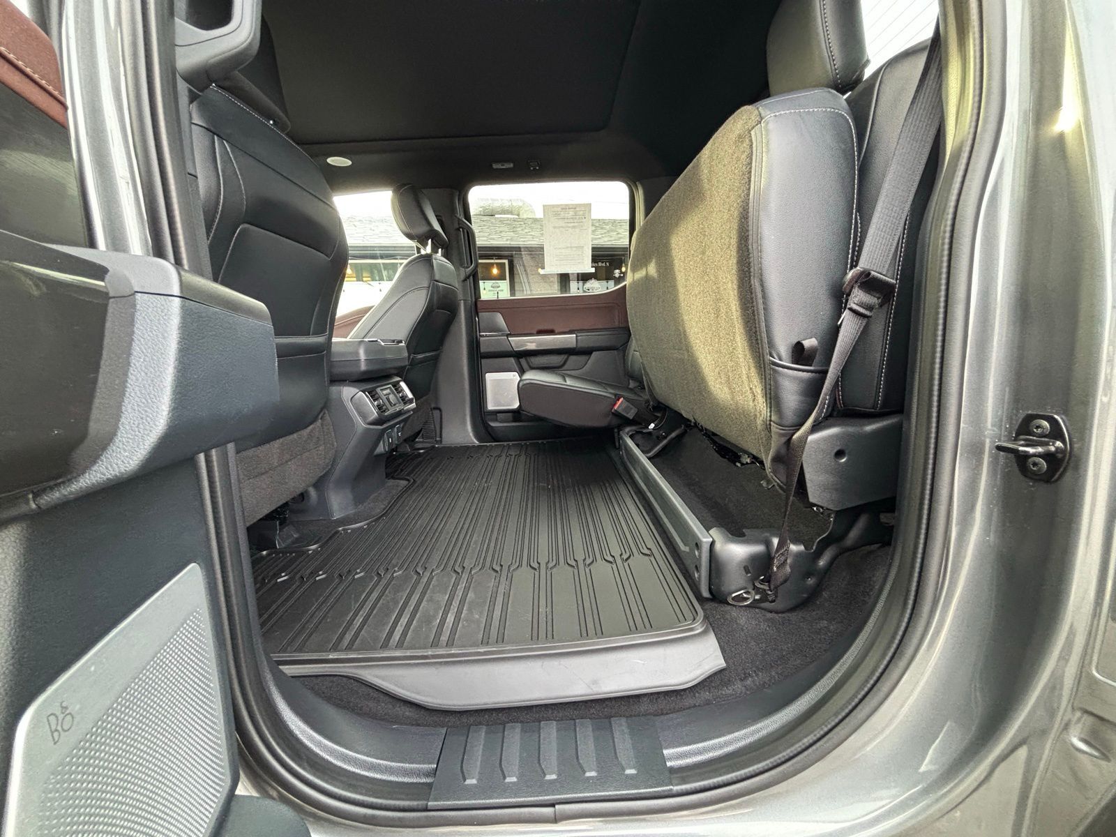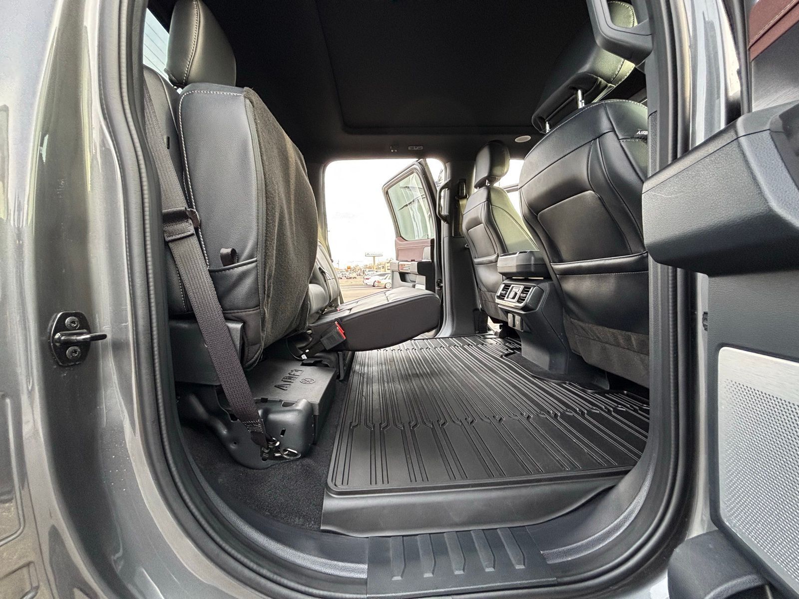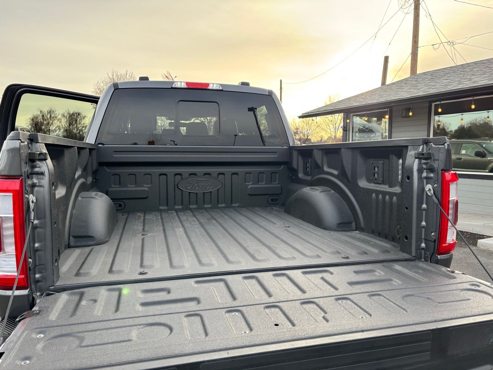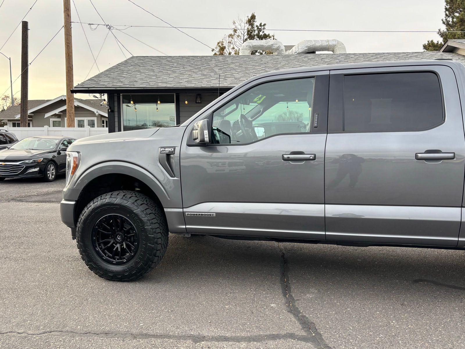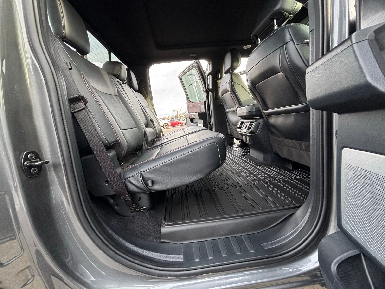 4WD 23/23 City/Highway MPG 10-Speed Automatic 4D SuperCrew Clean CARFAX. 3.5L PowerBoost Full-Hybrid V6 3.5L PowerBoost Full-Hybrid V6, 4WD, 2nd Row Heated Seats, ABS brakes, Alloy wheels, Compass, Connected Built-In Navigation, Electronic Stability Control, Equipment Group 502A High, Evasive Steering Assist, Ford Co-Pilot360 Assist 2.0, Front dual zone A/C, Heated door mirrors, Heated front seats, Illuminated entry, Intelligent Adaptive Cruise Control w/Stop & Go, Intersection Assist, LED Projector w/Dynamic Bending Headlamps, Low tire pressure warning, Power Tilt/Telescoping Steering Column w/Memory, Rain-Sensing Wipers, Remote keyless entry, Speed Sign Recognition, Traction control, Twin Panel Moonroof, Wheels: 20'' Chrome-Like PVD, Wireless Charging Pad. F-150 Gray 2023 2023 Ford F-150 Lariat Lariat Ford