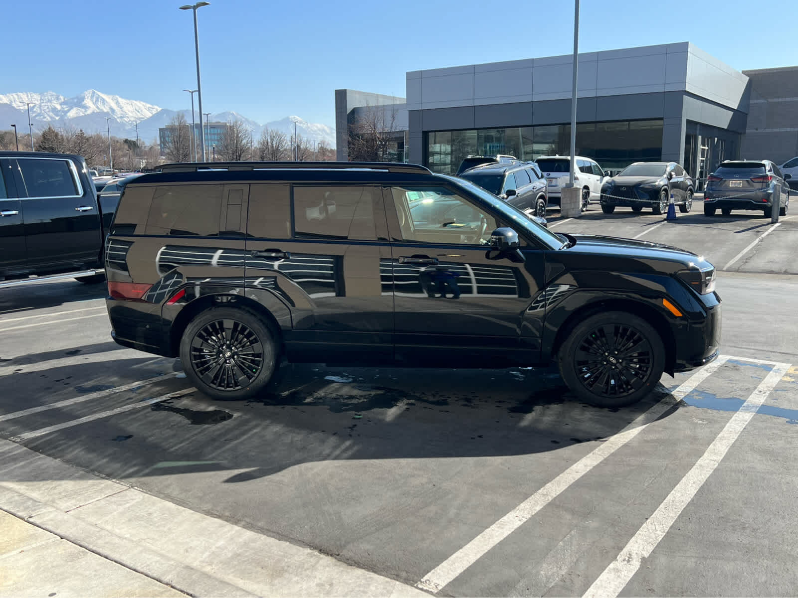 Leather Seats, Third Row Seat, Navigation, All Wheel Drive, Quad Bucket Seats, Power Liftgate, Heated Driver Seat, Heated Rear Seat. Rear Spoiler, MP3 Player, Keyless Entry, Remote Trunk Release. Hyundai Calligraphy with Phantom Black exterior and Pecan Brown interior features a 4 Cylinder Engine with 231 HP at 5500 RPM*.