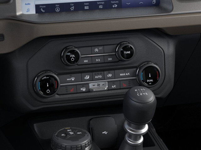 153 222A 43L 44Q 60B 99H Q V VA,CARBONIZED GRAY MOLDED-IN-COLOR HARD TOP -inc: Rear-Window Defroster & Washer,FRONT LICENSE PLATE BRACKET -inc: Standard in states requiring 2 license plates and optional to all others,HARD TOP SOUND DEADENING HEADLINER,EQUIPMENT GROUP 222A MID PACKAGE -inc: Rear Parking Sensors Power Outlet - Back Side of Center Floor Console Dual Smart Charging USB Ports Front Row Heated Seats Dr & Pass Illuminated Sliding Visor Vanity Mirrors Dual-Zone Electronic Automatic Temperature Control air conditioning Ford Co-Pilot360 Enables compatibility w/FordPass performance app w/off-road navigation Auto High-Beam Headlamps Pre-Collision Assist w/Automatic Emergency Braking pedestrian detection forward collision warning and dynamic brake support Blind Spot Information System (BLIS) Cross-Traffic Alert Rear View Camera backup assist grid lines Lane-Keeping System Lane-Keeping Alert Lane-Keeping Aid and Driver Alert Connected Navigation 1-year subscription pinch-to-zoom capability live traffic predictive destinations and route guidance and One Box search Navigation services require SYNC4 and FordPass Connect complimentary connect service and the FordPass app (see FordPass terms for details) Cu,TRANSMISSION: 7-SPEED MANUAL -inc: granny gear and crank in gear function and Hill Descent Control (STD),ENGINE: 2.3L ECOBOOST I-4 (STD),DESERT SAND,Turbocharged,Four Wheel Drive,Power Steering,ABS,4-Wheel Disc Brakes,Brake Assist,Aluminum Wheels,Tires - Front All-Terrain,Tires - Rear All-Terrain,Conventional Spare Tire,Tire Pressure Monitor,Conventional Spare Tire,Tow Hooks,Tow Hooks,Heated Mirrors,Power Mirror(s),Intermittent Wipers,Variable Speed Intermittent Wipers,Privacy Glass,Rollover Protection Bars,Convertible Soft Top,Power Door Locks,Daytime Running Lights,Automatic Headlights,LED Headlights,Automatic Highbeams,AM/FM Stereo,MP3 Capability,Steering Wheel Audio Controls,Satellite Radio,Requires Subscription,MP3 Capability,Bluetooth Connection,Telematics,Auxiliary Audio Input,WiFi Hotspot,Smart Device Integration,Requires Subscription,Bluetooth Connection,Pass-Through Rear Seat,Rear Bench Seat,Adjustable Steering Wheel,Trip Computer,Power Windows,WiFi Hotspot,Leather Steering Wheel,Keyless Start,Keyless Entry,Power Door Locks,Cruise Control,A/C,Cloth Seats,Bucket Seats,Driver Vanity Mirror,Passenger Vanity Mirror,Smart Device Integration,Requires Subscription,Smart Device Integration,Power Windows,Power Door Locks,Trip Computer,Security System,Immobilizer,Traction Control,Stability Control,Traction Control,Front Side Air Bag,Telematics,Requires Subscription,Front Collision Mitigation,Tire Pressure Monitor,Driver Air Bag,Passenger Air Bag,Front Head Air Bag,Rear Head Air Bag,Passenger Air Bag Sensor,Driver Restriction Features,Child Safety Locks,Back-Up Camera