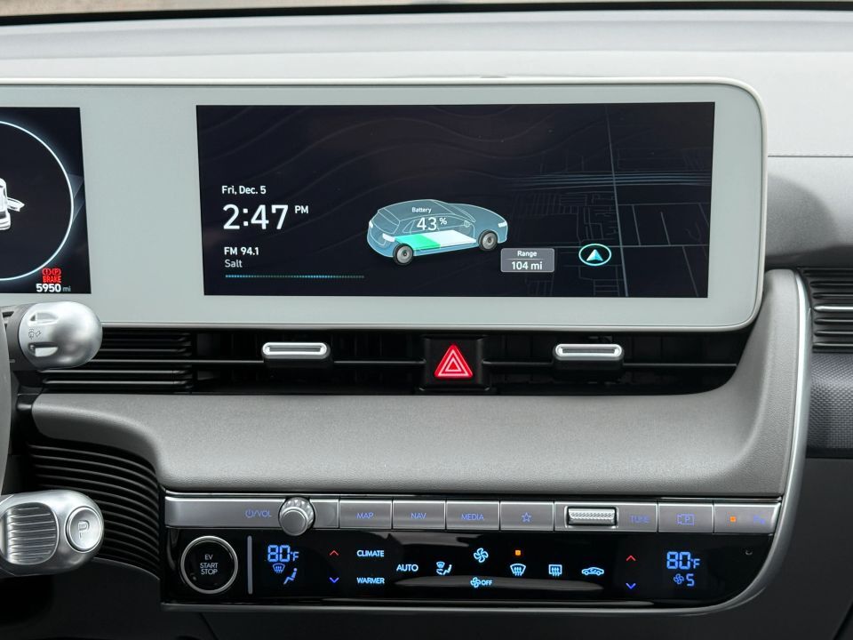 Air Conditioning,Blue Link Connected Car,Premium Wheels 19 ,Power Steering,Power Door Locks,Blind-Spot Collision Avoidance Assist,AM/FM/HD Radio,Push Button Start,Lane Keeping Assist,Rear Spoiler,Navigation System,LED Headlamps,F&R Head Curtain Air Bags,Tilt Wheel,Backup Camera,Alarm System,Electronic Stability Control,Single-Speed Reduction Gear,Side Air Bags,Daytime Running Lights,Blue Link Remote Charge Access,Parking Distance Warning,Hill Start Assist Control,Heated Seats,Dual Electric Motors,Traction Control,AWD,Dual Air Bags,ABS (4-Wheel),SiriusXM Satellite,Keyless Entry,Smart Cruise Control