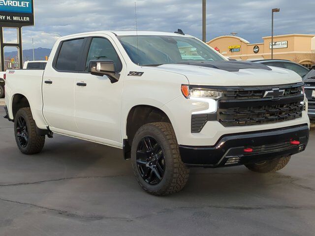 Preferred Equipment Group 2LT,Auto-Locking Rear Differential,Wheels: 20 x 9 High Gloss Black Painted Alum,40/20/40 Front Split-Bench Seat,Front Bucket Seats,Cloth Seat Trim,Leather-Appointed Front Seat Trim,10-Way Power Driver Seat w/Lumbar,Convenience Package II,LT Trail Boss Premium Package,Safety Package,Radio: Chevrolet Infotainment 3 Premium System,Adaptive Cruise Control,Electric Rear-Window Defogger,Color-Keyed Carpeting Floor Covering,All-Weather Floor Liner (LPO) (AAK),120-Volt Interior Power Outlet,Leather Package,Power Sunroof,Protection Package,Chevytec Spray-On Black Bedliner,Deep-Tinted Glass,LED Cargo Area Lighting,Standard Tailgate,EZ Lift Power Lock & Release Tailgate,Power Tailgate,Rear Wheelhouse Liners,Dark Essentials Package (LPO),Black Tailgate CHEVROLET Lettering (LPO),Black Exhaust Tip Bezels (LPO),Suspension Package,Trailering Package,Integrated Trailer Brake Controller,2-Speed Electronic Autotrac Transfer Case,Heavy-Duty Air Filter,SiriusXM w/360L Trial Subscription,Power Sliding Rear Window w/Rear Defogger,Rear 60/40 Folding Bench Seat (Folds Up),Power Front Windows w/Passenger Express Down,Power Rear Windows w/Express Down,Keyless Open & Start,Power Front Windows w/Driver Express Up/Down,Bluetooth® For Phone,Remote Vehicle Starter System,Dual-Zone Automatic Climate Control,Hitch Guidance,Floor Mounted Center Console,Inside Rear-View Mirror w/Tilt,Heated Power-Adjustable Outside Mirrors,High Gloss Black Mirror Caps,Electronic Transmission Range Selector Shifter,Hill Descent Control,Electronic Cruise Control,Wireless Charging,Heated Driver & Front Outboard Passenger Seats,External Engine Oil Cooler,120-Volt Bed Mounted Power Outlet,Heated Steering Wheel,Auxiliary External Transmission Oil Cooler,220 Amp Alternator,170 Amp Alternator,Dual Exhaust w/Polished Outlets,Manual Tilt/Telescoping Steering Column,Wrapped Steering Wheel,Single Outlet Exhaust,Convenience Package,Chevy Safety Assist,Hitch Guidance w/Hitch View,Black Name Plates (LPO),Up-Level Rear Seat w/Storage Package,Front LED Fog Lamps,Teen Driver,IntelliBeam Automatic High Beam On/Off,Trailer Camera Provisions,Perimeter Lighting,2 USB Data Ports,Dual Rear USB Ports (Charge Only),Ultrasonic Front & Rear Park Assist,12.3 Multicolor Reconfigurable Digital Display,OnStar Services Capable,Following Distance Indicator,In-Vehicle Trailering System App,Forward Collision Alert,Rear Cross Traffic Braking,Universal Home Remote,Performance Red Recovery Hooks,Lane Keep Assist w/Lane Departure Warning,Automatic Emergency Braking,Tire Pressure Monitoring System,Steering Wheel Audio Controls,Front Pedestrian Braking,Rear Pedestrian Alert,Trailer Side Blind Zone Alert,Premium Bose 7-Speaker Sound System,6-Speaker Audio System,Theft Deterrent System (Unauthorized Entry),HD Surround Vision,HD Rear Vision Camera,Wi-Fi Hot Spot Capable,4-Wheel Disc Brakes,Apple CarPlay/Android Auto,Premium audio system: Chevrolet Infotainment 3 Premium,Emergency communication system: OnStar,AM/FM radio: SiriusXM with 360L,Auto High-beam Headlights,Front Center Armrest w/Storage,Compass,Variably intermittent wipers,Trip computer,Traction control,Tilt steering wheel,Telescoping steering wheel,Steering wheel mounted audio controls,Split folding rear seat,Speed-sensing steering,Speed control,Security system,Remote keyless entry,Rear window defroster,Rear step bumper,Rear reading lights,Radio data system,Power windows,Power steering,Power driver seat,Power door mirrors,Passenger vanity mirror,Passenger door bin,Panic alarm,Overhead console,Overhead airbag,Outside temperature display,Occupant sensing airbag,Low tire pressure warning,Illuminated entry,Heated steering wheel,Heated front seats,Heated door mirrors,Fully automatic headlights,Front wheel independent suspension,Front reading lights,Front fog lights,Front dual zone A/C,Front anti-roll bar,Dual front side impact airbags,Dual front impact airbags,Driver vanity mirror,Driver door bin,Delay-off headlights,Brake assist,Automatic temperature control,Alloy wheels,ABS brakes,Voltmeter,Tachometer,Electronic Stability Control,Air Conditioning,6 Speakers,ADAPTIVE CRUISE CONTROL,IN-VEHICLE TRAILERING APP SYSTEM includes checklist trailer maintenance reminders trailer security alerts trailer mileage tow/haul reminder trailer electrical diagnostics and Trailer Tire Pressure Monitor System module,BOSE SOUND SYSTEM PREMIUM 7-SPEAKER SYSTEM with Richbass woofer,WIRELESS CHARGING,REAR AXLE 3.23 RATIO,SHIFTER ELECTRONIC TRANSMISSION RANGE SELECTOR includes steering column paddle shifters,TRAILER CAMERA PROVISIONS,CHEVYTEC SPRAY-ON BEDLINER BLACK (does not include spray-on liner on tailgate due to Black composite inner panel),TIRE SPARE 265/70R17SL ALL-SEASON BLACKWALL,PROTECTION PACKAGE includes (B1J) wheel house liners and (CGN) Chevytec spray-on bedliner,WHEELS 20 X 9 (50.8 CM X 22.9 CM) HIGH GLOSS BLACK PAINTED ALUMINUM (STD),JET BLACK LEATHER-APPOINTED FRONT OUTBOARD SEATING POSITIONS,TRAILER SIDE BLIND ZONE ALERT,FRONT AND REAR PARK ASSIST ULTRASONIC,LT TRAIL BOSS PREMIUM PACKAGE includes (PCM) Convenience Package II (PQB) Safety Package (CXH) Leather Package (WPQ) Protection Package and (QT6) Power up/down tailgate,LIGHTING PERIMETER,LPO BLACK TAILGATE LETTERING (dealer-installed),GVWR 7100 LBS. (3221 KG),WINDOW POWER REAR SLIDING with rear defogger,EXHAUST DUAL WITH POLISHED OUTLETS,UNIVERSAL HOME REMOTE,WHEELHOUSE LINERS REAR,CENTER CONSOLE FLOOR-MOUNTED with cup holders Wireless Charging power cord management hanging file folder capability; includes removable storage tray Includes (EPH) Electronic Transmission Range Selector (console mounted).),LEATHER PACKAGE Includes (SNR) Up-level Rear Seat with Storage Package.,LPO DARK ESSENTIALS PACKAGE includes (RIK) Black Silverado nameplates along with where applicable Black Custom/LT/RST/LTZ/High Country/Z71/6.2L/Duramax badges LPO and (SB7) Black tailgate CHEVROLET lettering LPO (dealer-installed),SUMMIT WHITE,TAILGATE GATE FUNCTION POWER UP/DOWN with 