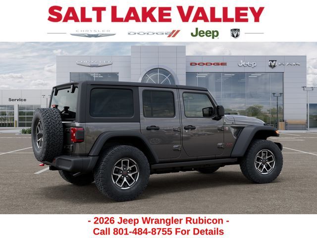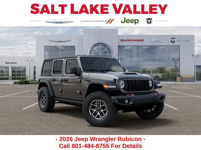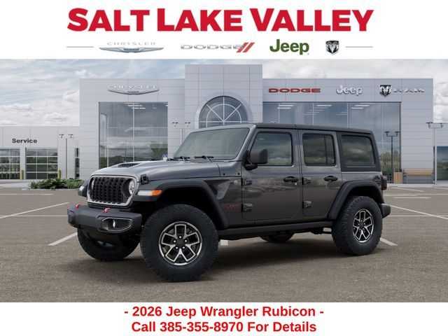 Adventure starts with the new Jeep Wrangler available now at Salt Lake Valley CDJR in Salt Lake City! Built for Utah’s canyons, trails, and highways alike, Jeep delivers freedom and capability in every mile. Discover why Wrangler drivers love to explore with confidence. Contact us at 801-484-8755 to schedule a time to see it today! 2026 Jeep Wrangler Rubicon Granite Crystal Metallic Clearcoat 3.6L V6 24V VVT