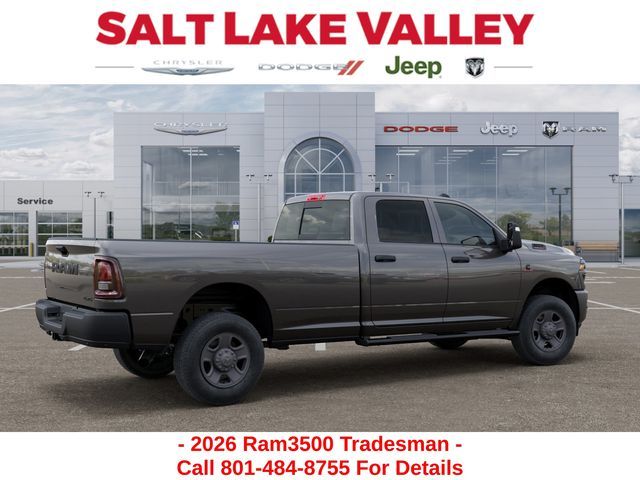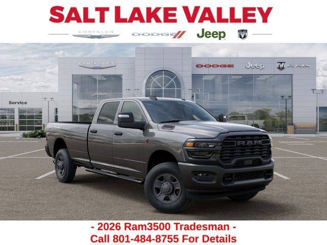 Get the job done and have fun doing it with the new Ram 3500 from Salt Lake Valley CDJR! Power, durability, and innovation come together in every Ram truck. Whether you’re working hard or exploring Utah’s backroads, the 3500 is built to handle it all. Call us today at 801-484-8755 to schedule a time to check it out! 2026 Ram 3500 Tradesman Granite Crystal Metallic Clearcoat 6.7L I6
