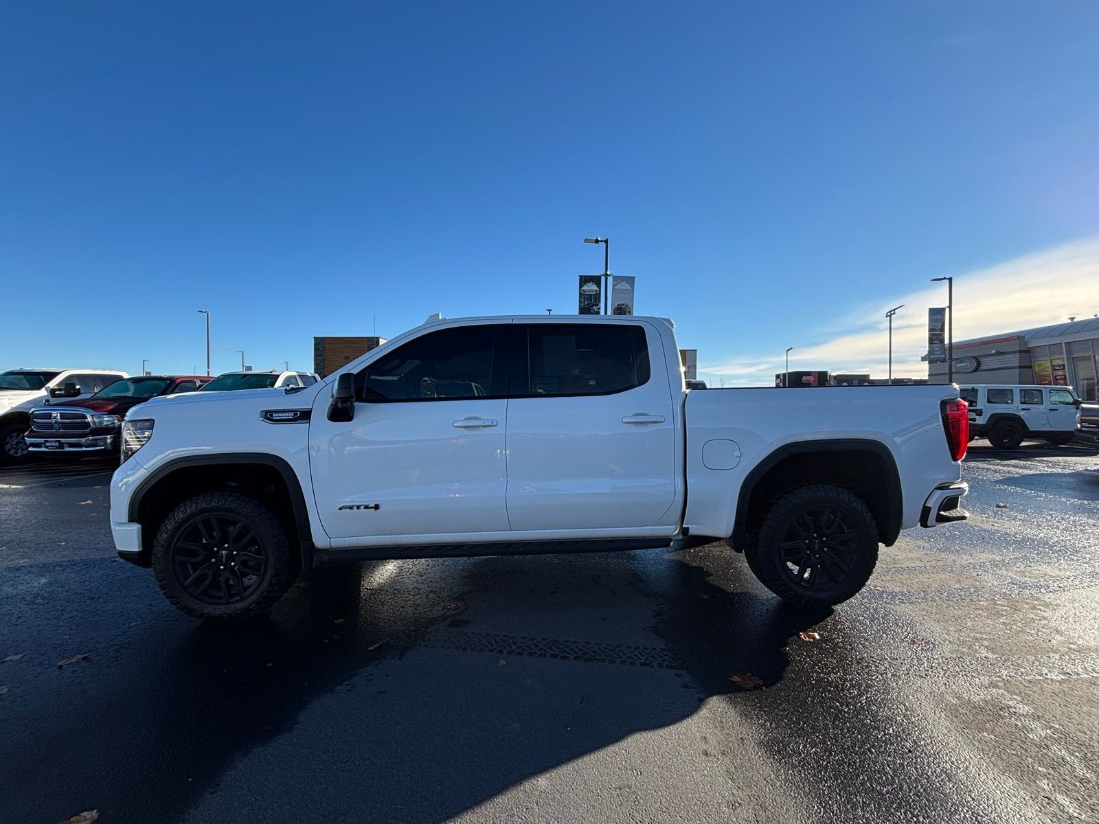 4WD 22/26 City/Highway MPG 22/26 City/Highway MPG 10-Speed Automatic 4D Crew Cab Clean CARFAX. 3.0L I6 CARFAX One-Owner. 10-Speed Automatic, 4WD, Jet Black With Kalahari Accents Leather, 120-Volt Bed Mounted Power Outlet, 120-Volt Instrument Panel Power Outlet, 2 Charge/Data USB Ports Inside Center Console, 2 Type-C Charge-Only Rear USB Ports, 2 USB Ports, 220 Amp Alternator, Adaptive Cruise Control, AT4 Preferred Package, AT4 Premium Package, Auto-Locking Rear Differential, Black Chrome Header & Grille Insert Bars, Color-Keyed Carpeting Floor Covering, Compass, Deep-Tinted Glass, Electric Rear-Window Defogger, Electrical Steering Column Lock, Floor-Mounted Center Console, Front Prem Floor Liners w/Removable Carpet Insert, Front Rainsensing Wipers, GMC Connected Access Capable, HD Rear Vision Camera, HD Surround Vision, Heated 2nd Row Outboard Seats, Heated Driver & Front Outboard Passenger Seating, Heated Steering Wheel, Heavy-Duty Air Filter, Hill Descent Control, Hitch Guidance, Hitch Guidance w/Hitch View, In-Vehicle Trailering App, Integrated Trailer Brake Controller, Keyless Open & Start, LED Cargo Area Lighting, Off-Road High Clearance Step (LPO), OnStar & GMC Connected Services Capable, Perimeter Lighting, Power Door Locks, Power Front Passenger Windows w/Express Up/Down, Power Front Windows w/Driver Express Up/Down, Power Rake & Telescoping Steering Column, Power Rear Windows w/Express Down, Power Sliding Rear Window w/Rear Defogger, Preferred Equipment Group 4SB, Premium Bose 7-Speaker Sound System, Push Button Start, Rear Cross Traffic Braking, Rear Pedestrian Detection, Rear Prem Floor Liners w/Removable Carpet Insert, Rear Wheelhouse Liners, Red Recovery Hooks, Remote Vehi