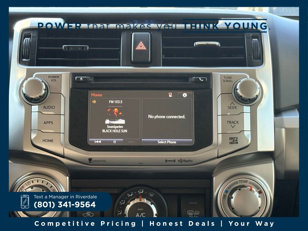 The spacious and well-appointed interior of this 4Runner offers comfort and convenience at every turn. Sink into the supportive front bucket seats, enjoy the leather-wrapped steering wheel, and take advantage of the intuitive Entune infotainment system. With seating for up to five and generous cargo space, this SUV is ready to accommodate your family, friends, and all their gear.
